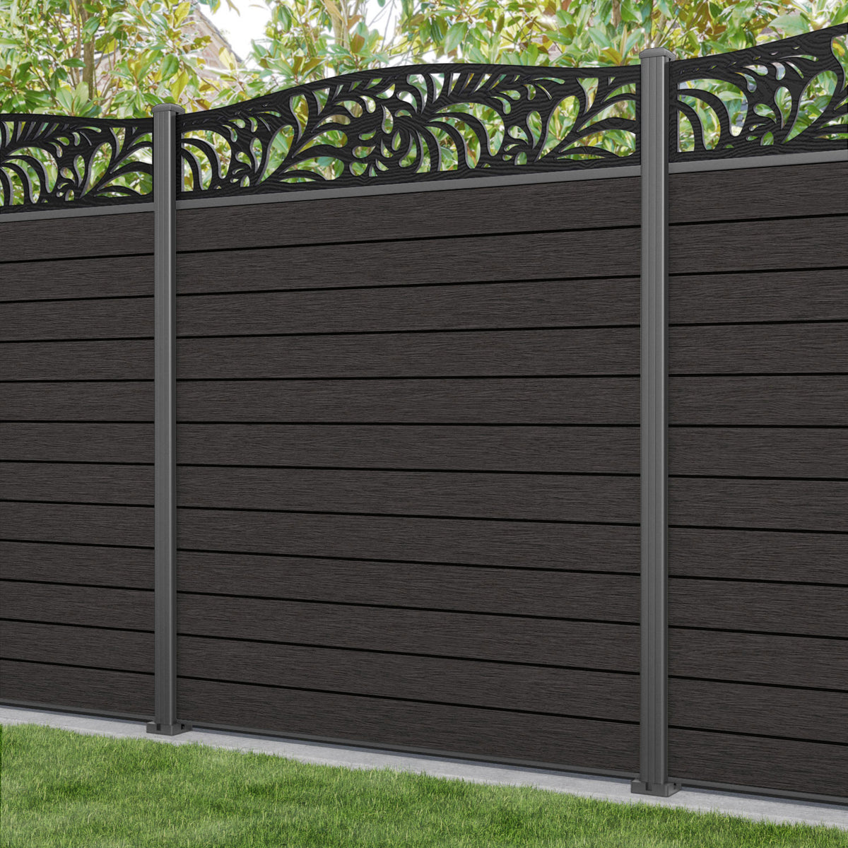 Fusion Pebble Curved Top Fence Panel Dark Oak - with our aluminium posts
