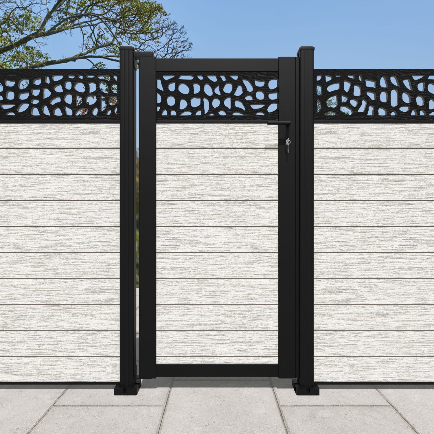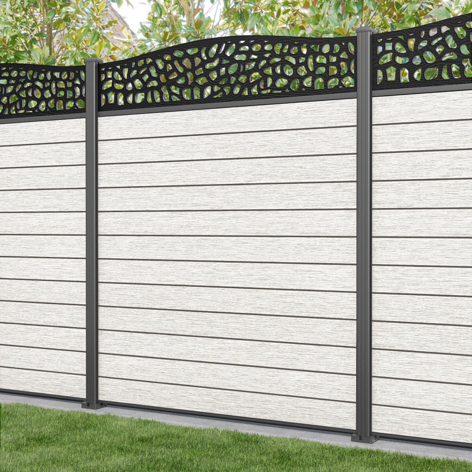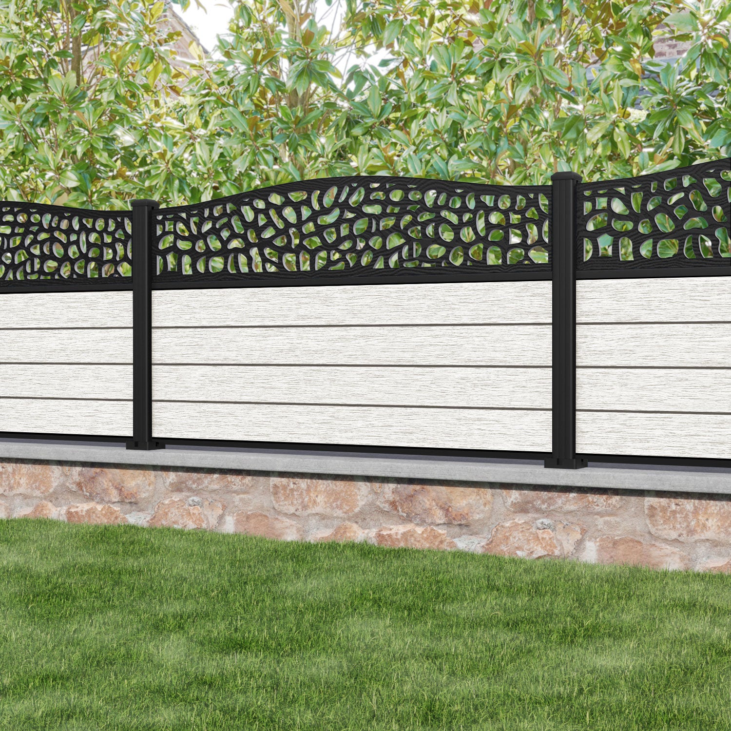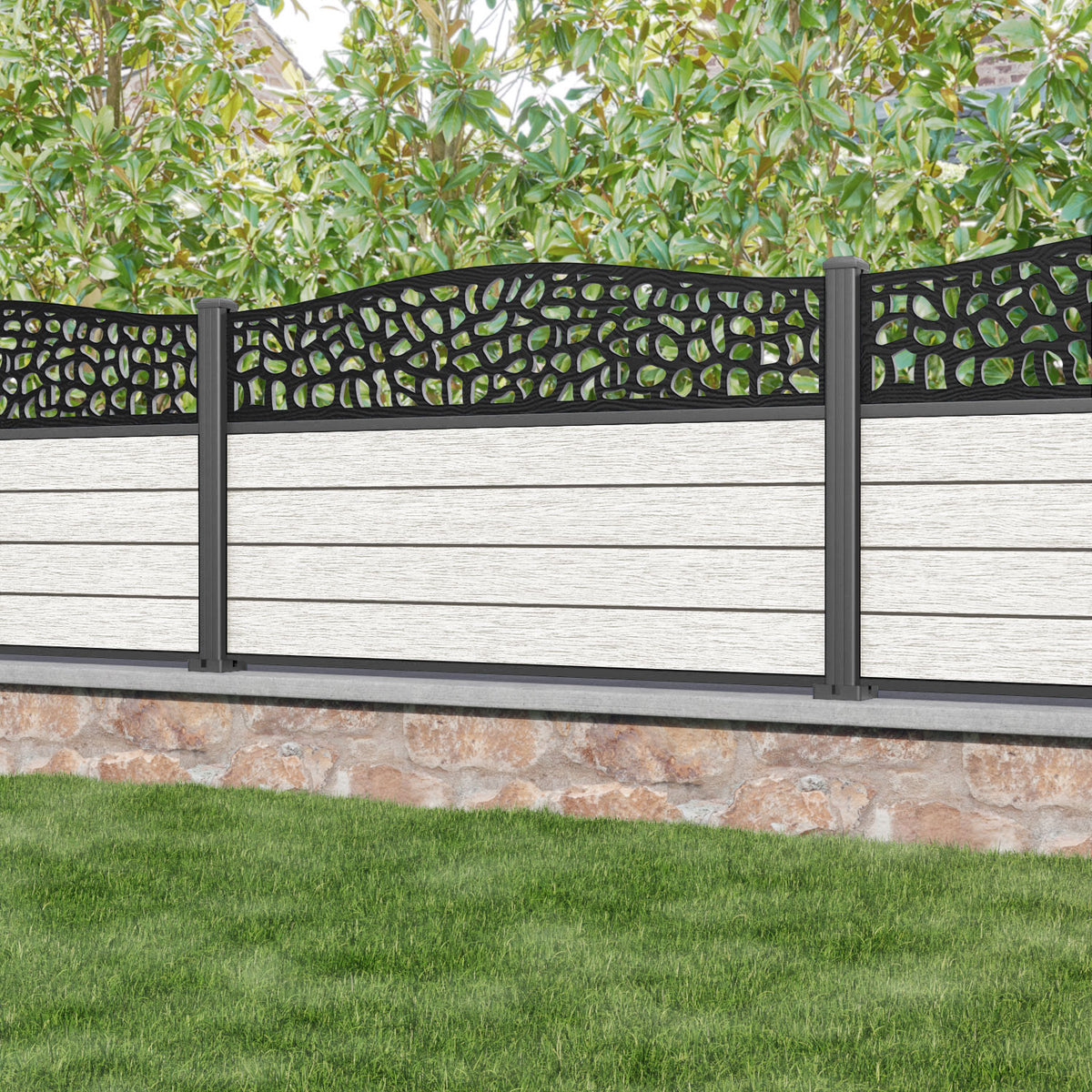 Fusion Pebble Curved Top Fence Panel Light Stone - with our aluminium posts