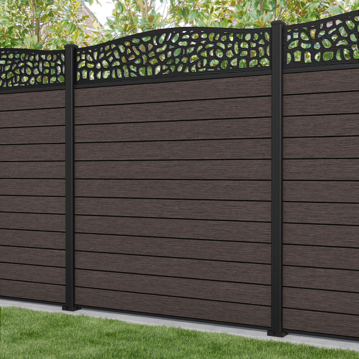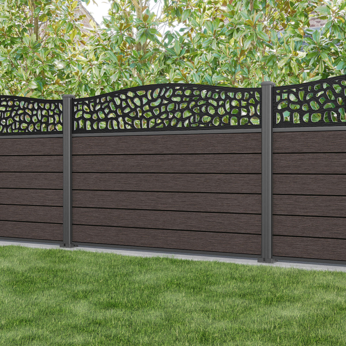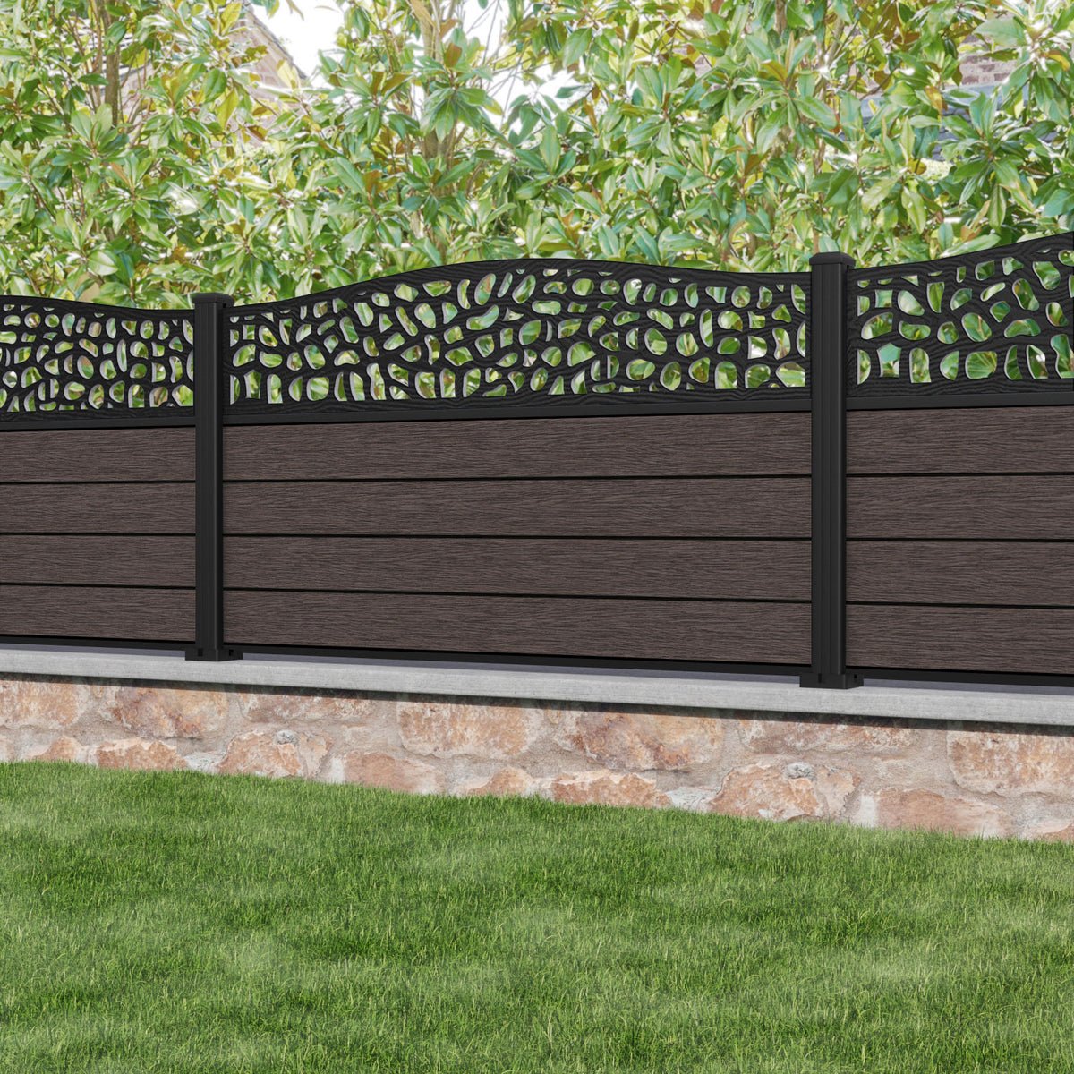 Fusion Pebble Curved Top Fence Panel Mid Brown - with our aluminium posts