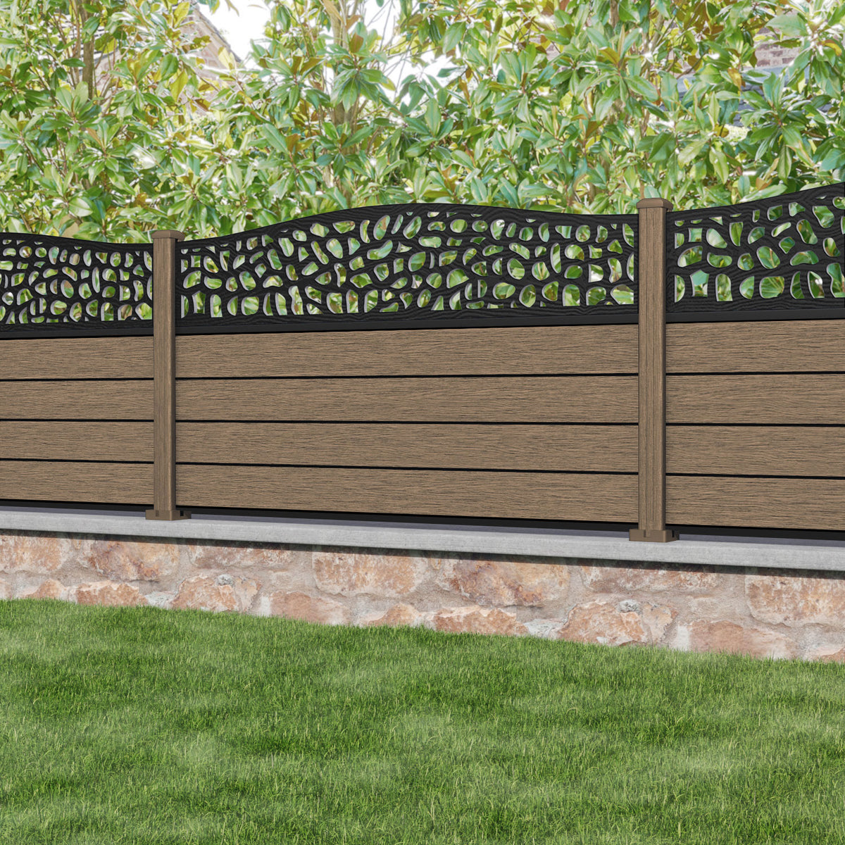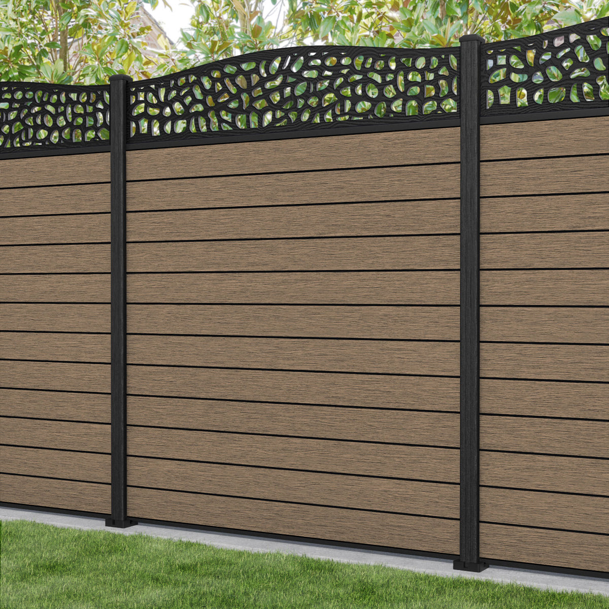 Fusion Pebble Curved Top Fence Panel Teak - with our composite posts
