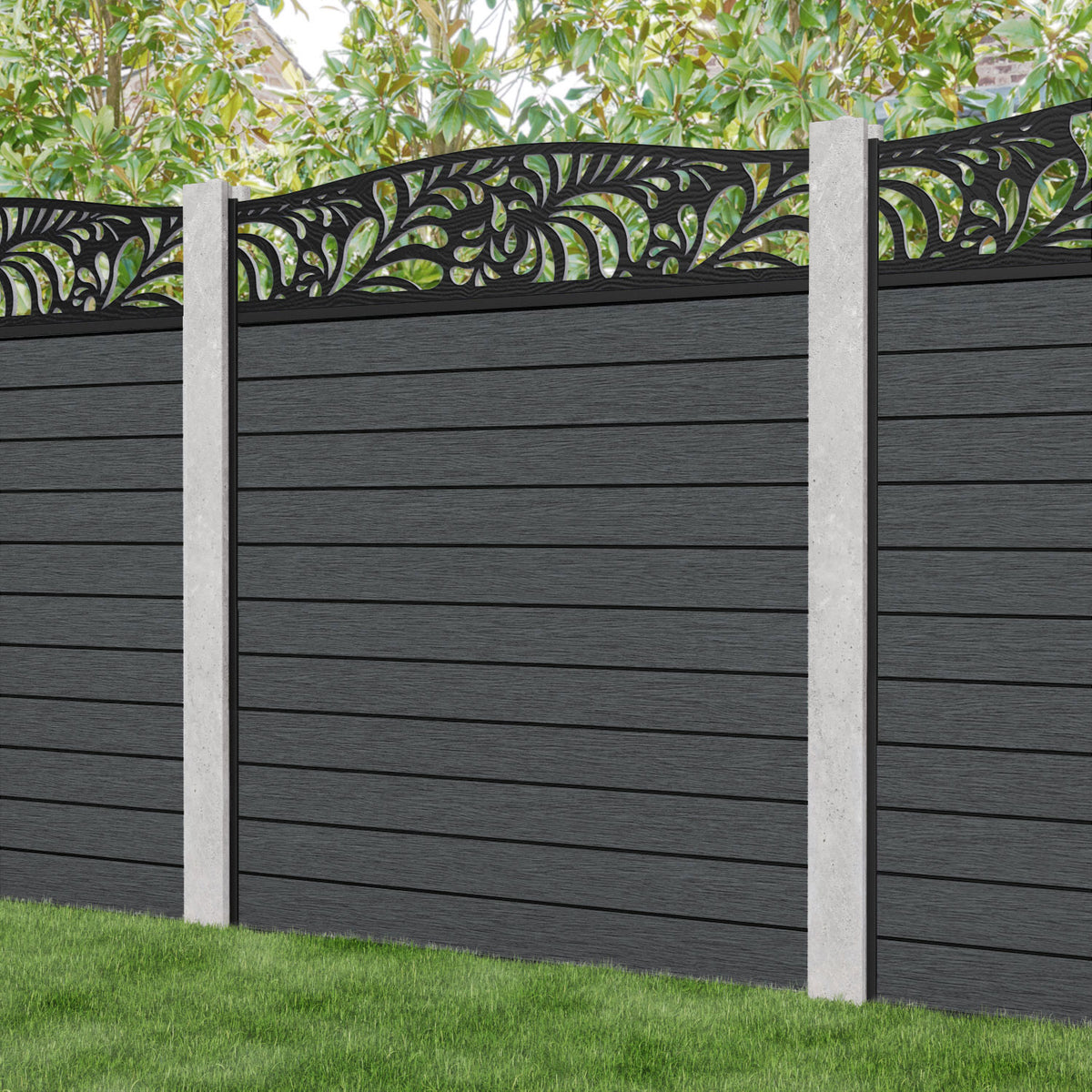 Fusion Petal Curved Top Fence Panel Dark Grey - for existing concrete posts
