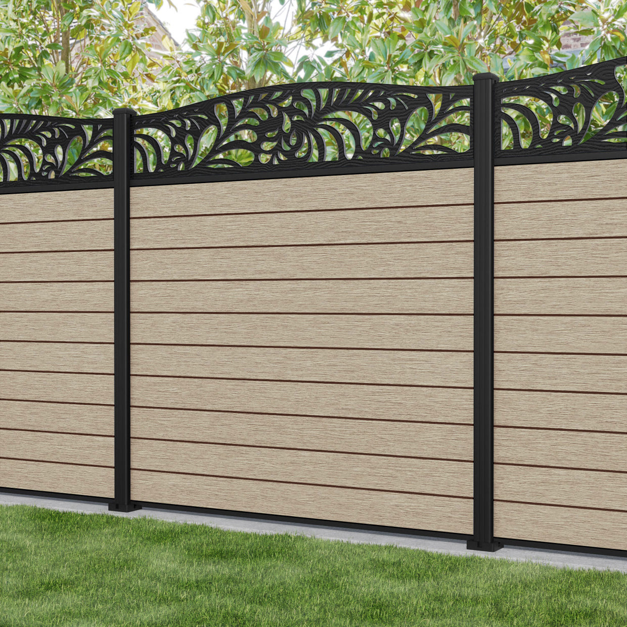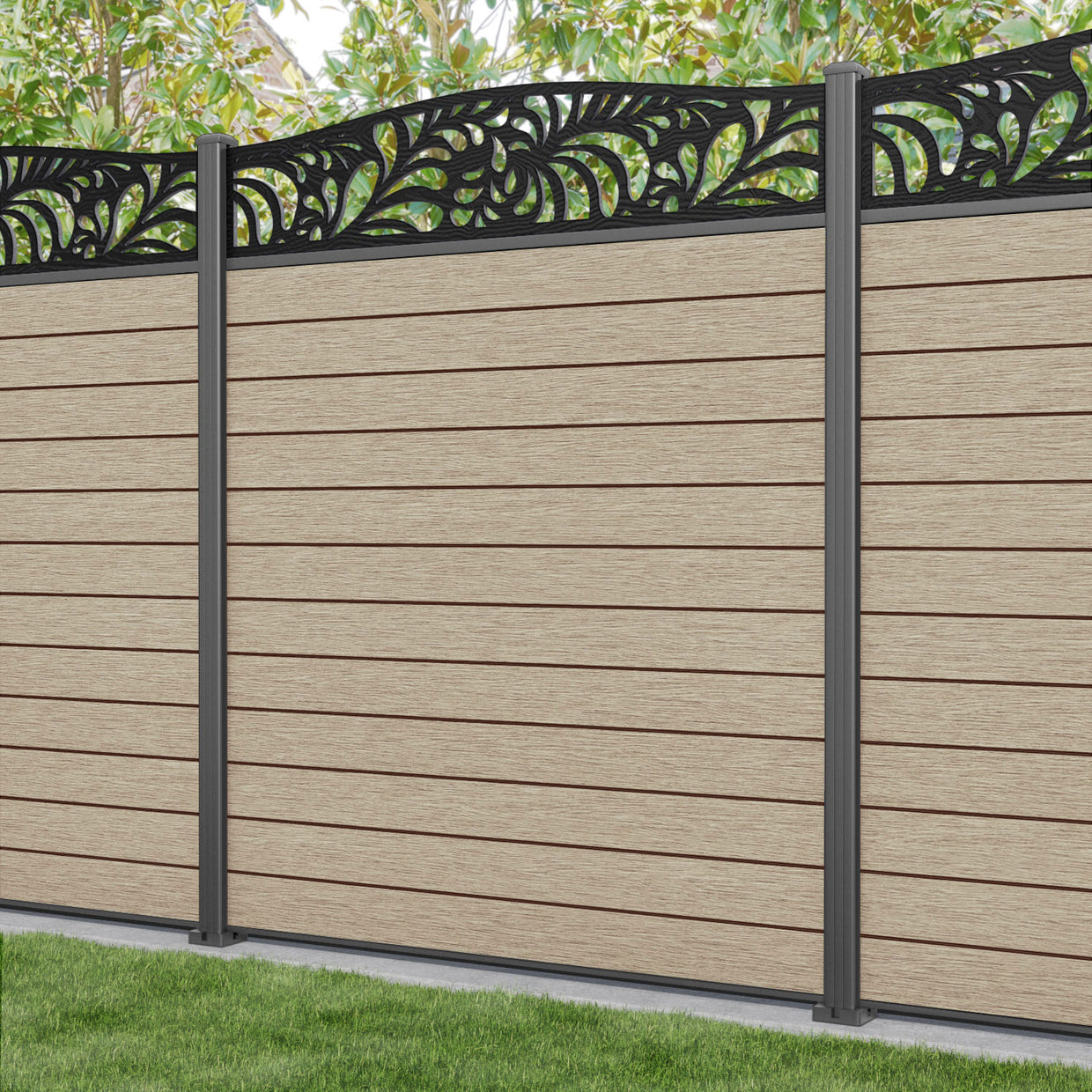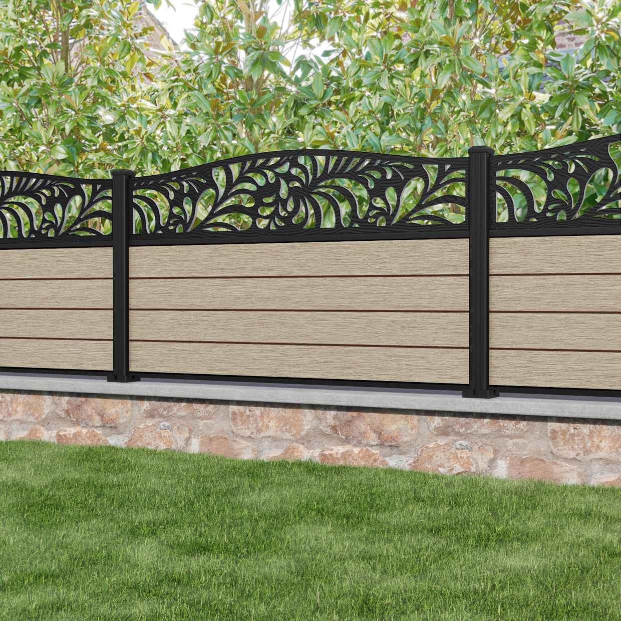 Fusion Petal Curved Top Fence Panel Light Oak - with our aluminium posts