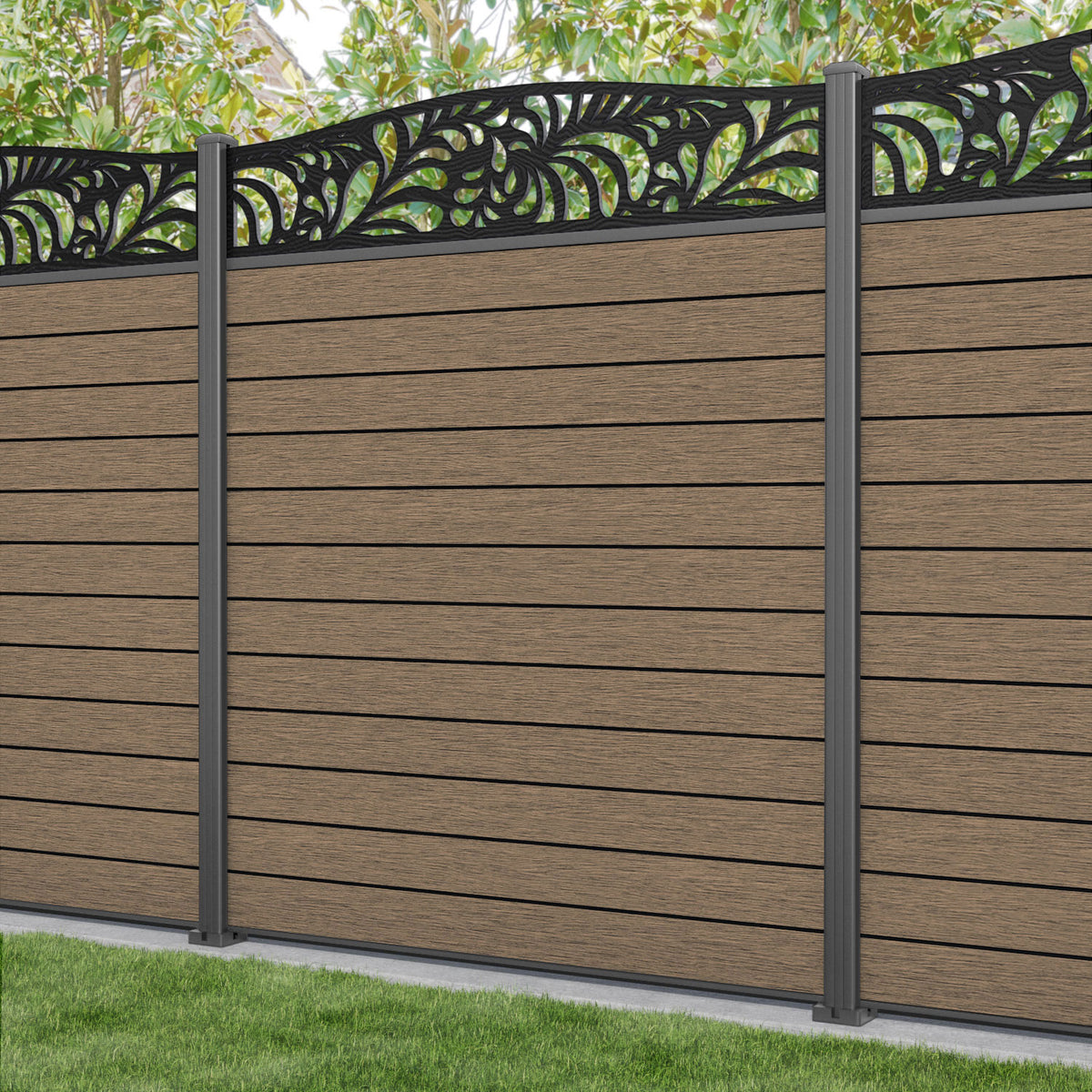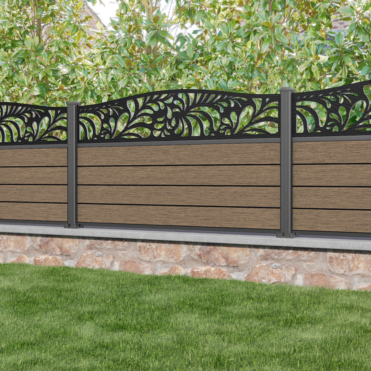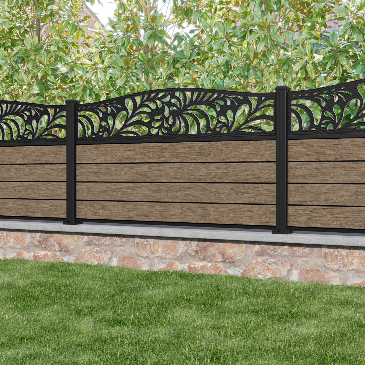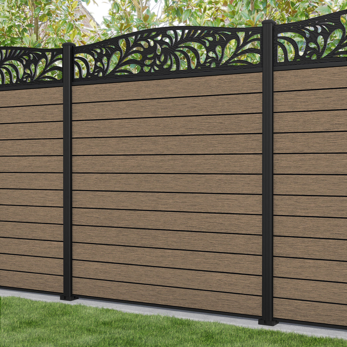 Fusion Petal Curved Top Fence Panel Teak - with our aluminium posts