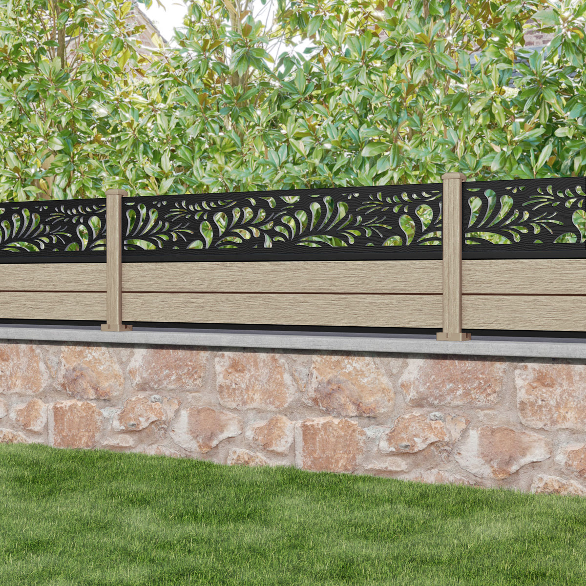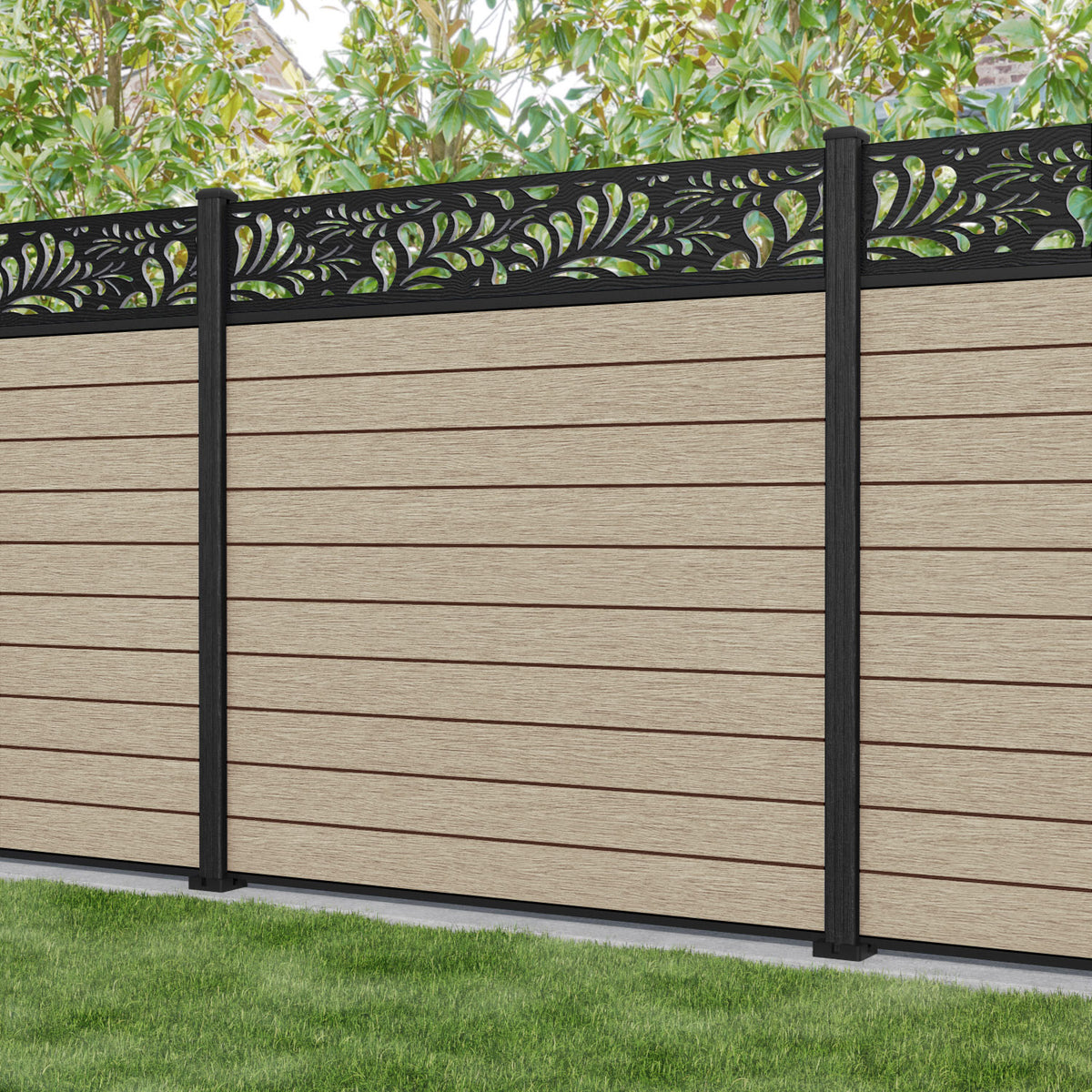 Fusion Petal Fence Panel Light Oak - with our composite posts