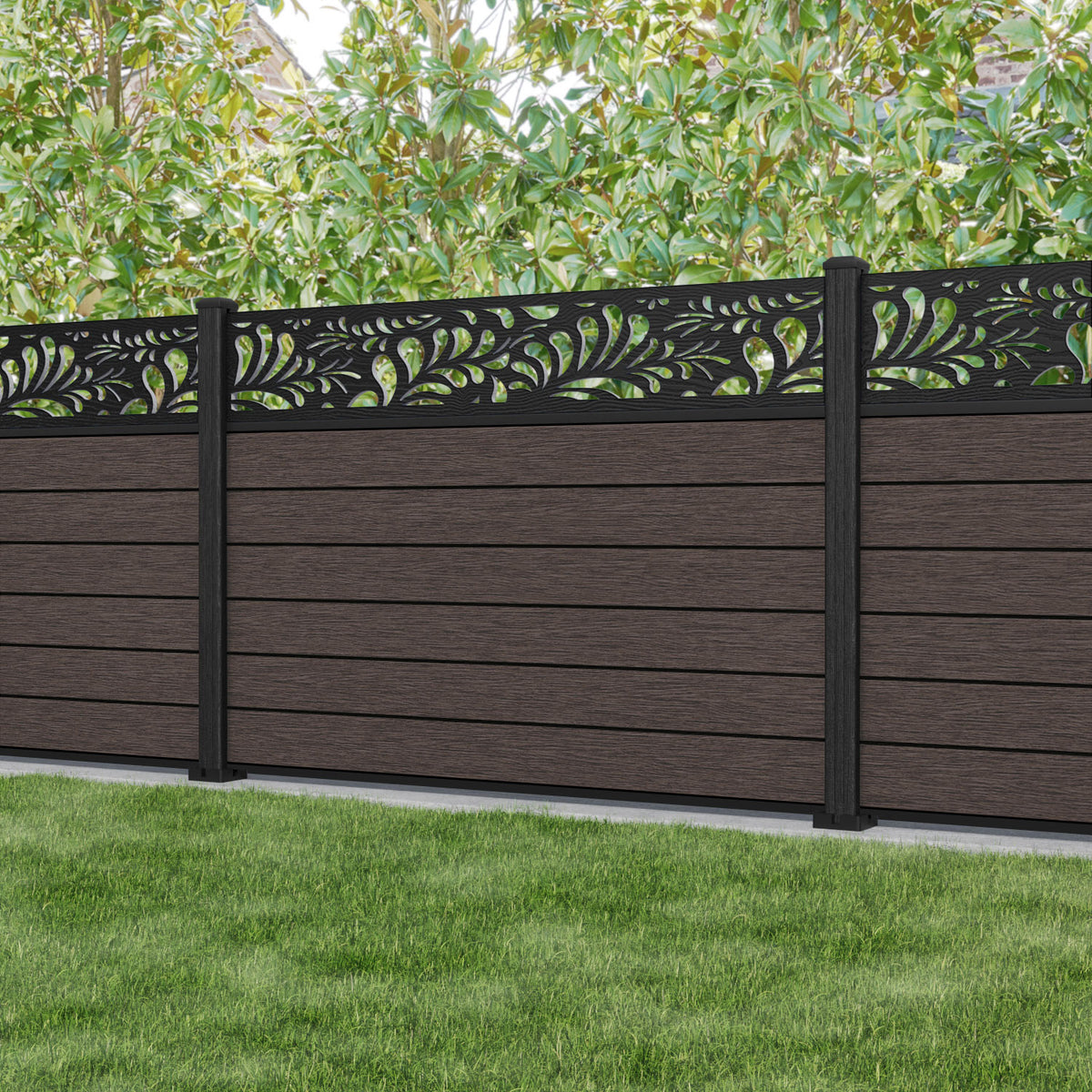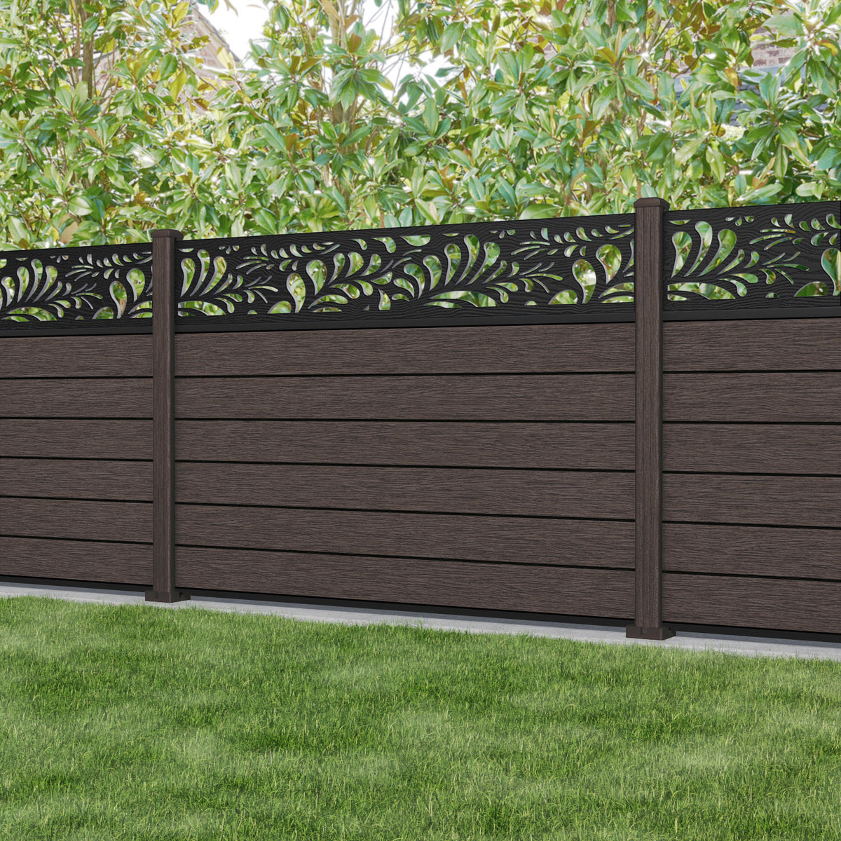 Fusion Petal Fence Panel Mid Brown - with our composite posts