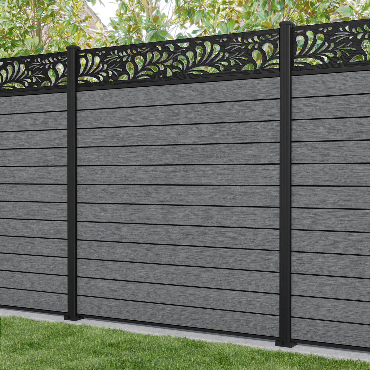 Fusion Petal Fence Panel Mid Grey - with our aluminium posts