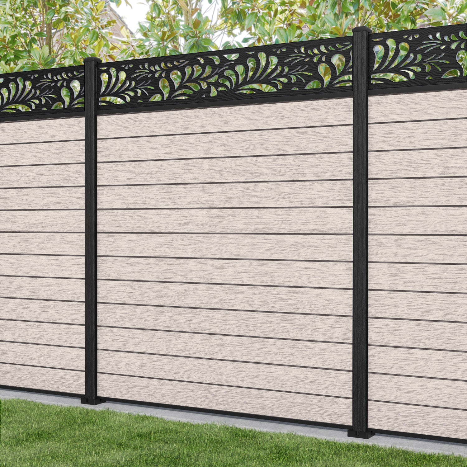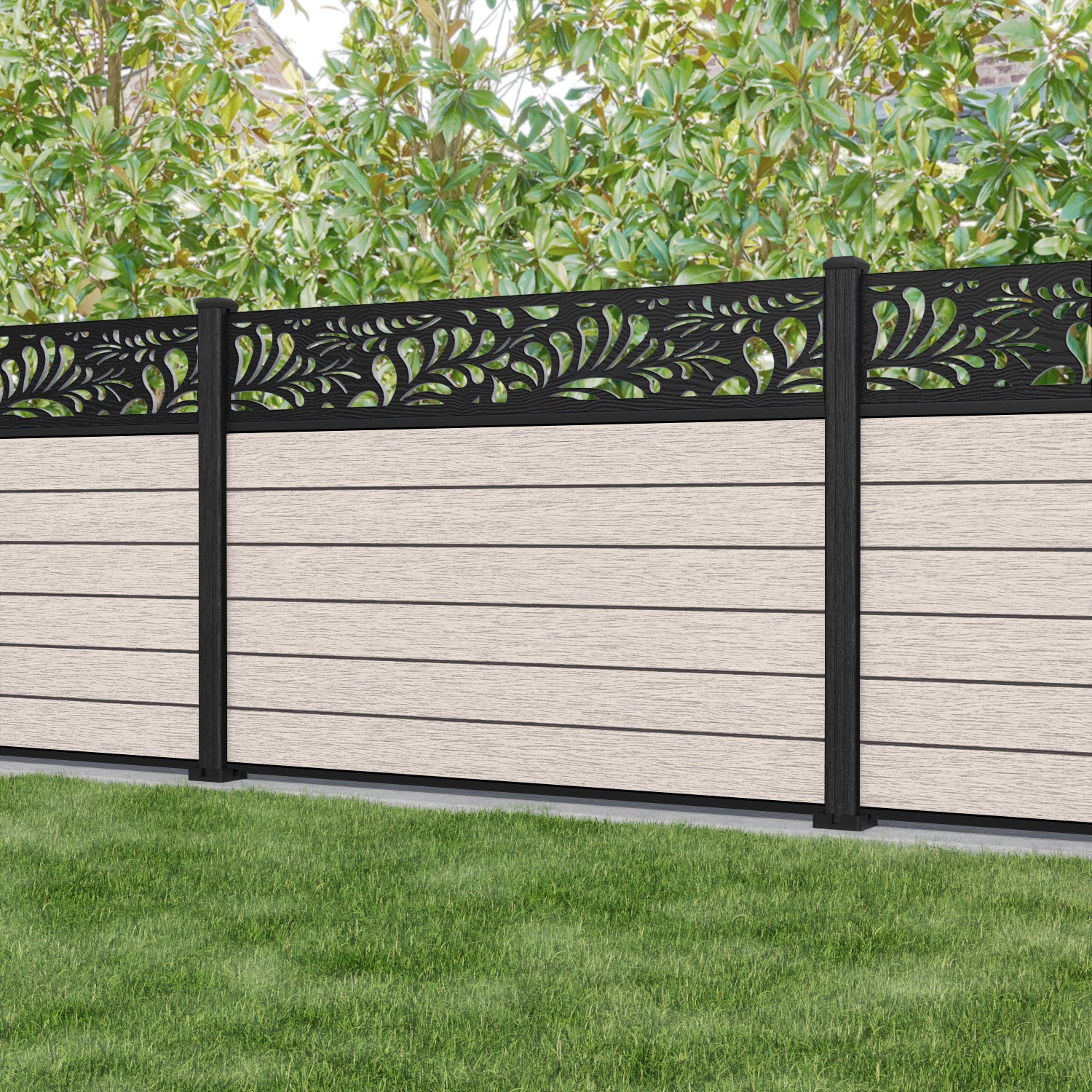 Fusion Petal Fence Panel Mid Stone - with our composite posts