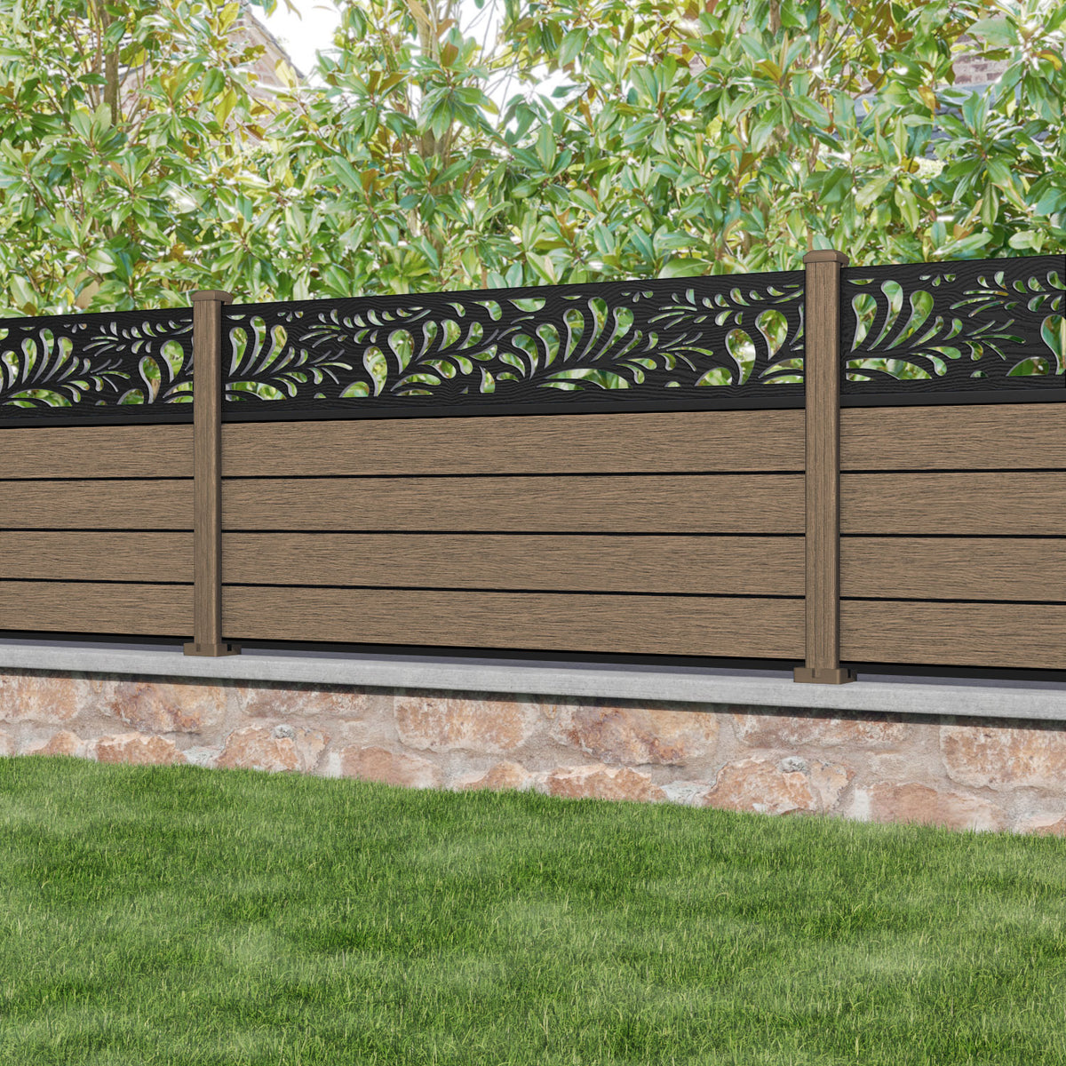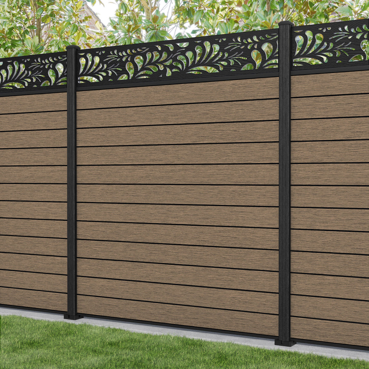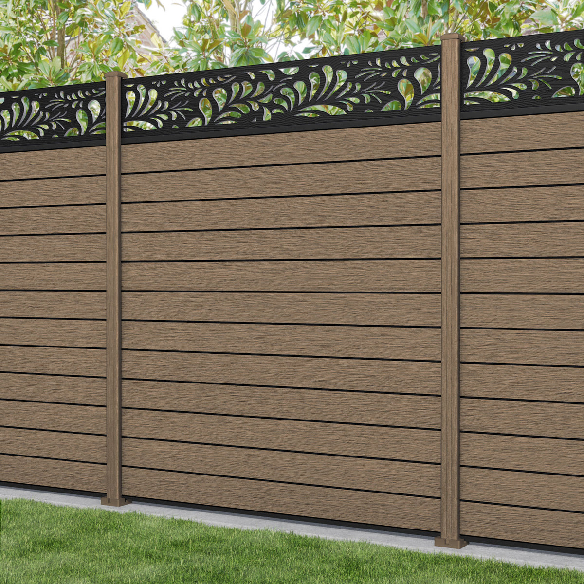 Fusion Petal Fence Panel Teak - with our composite posts