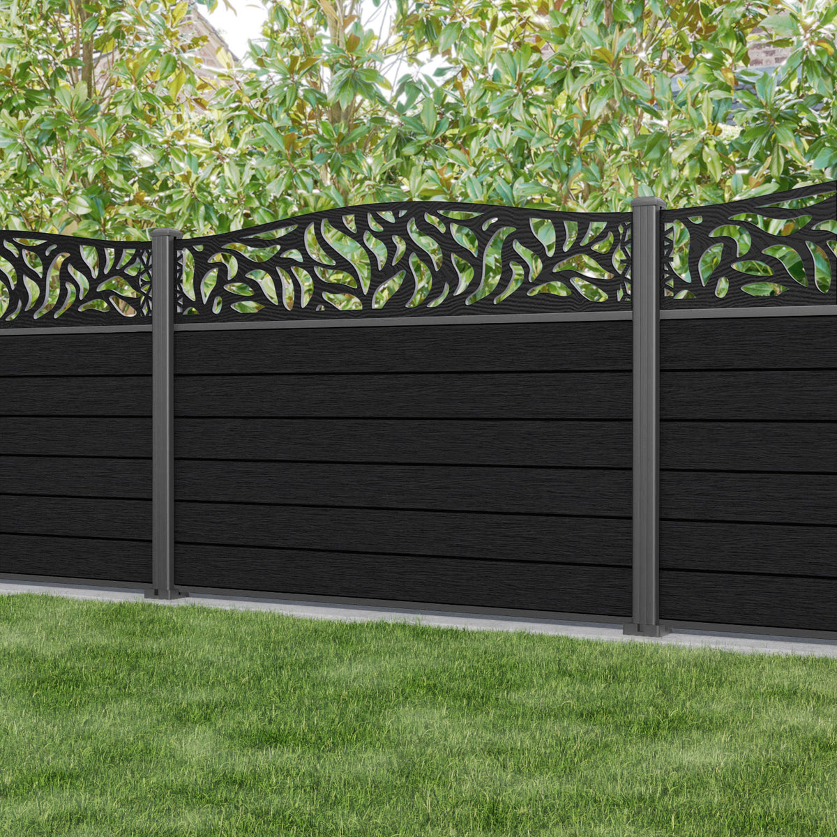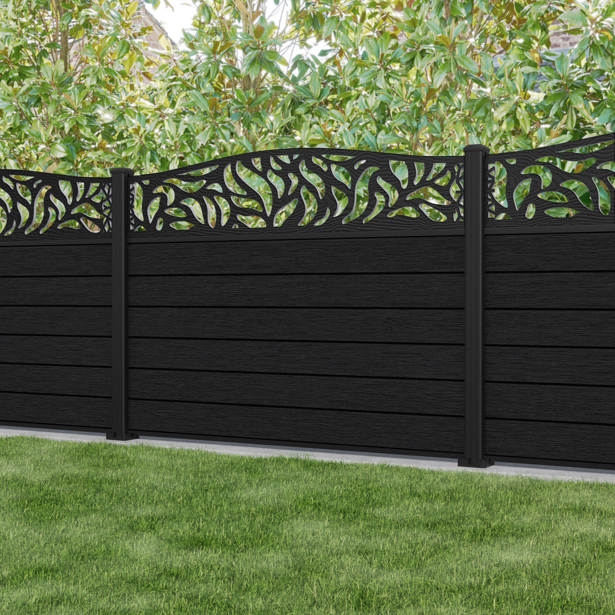 Fusion Plume Curved Top Fence Panel Black - with our aluminium posts