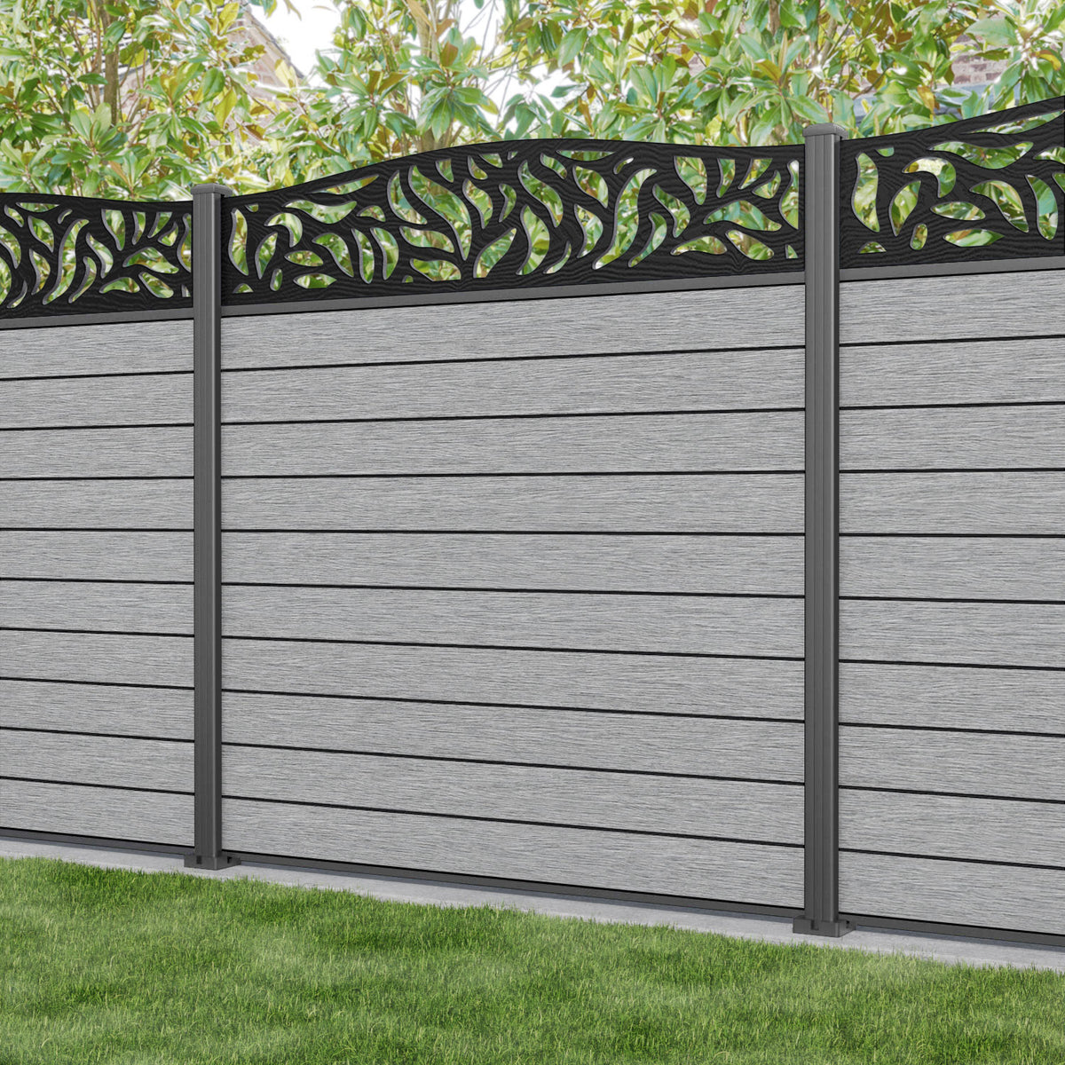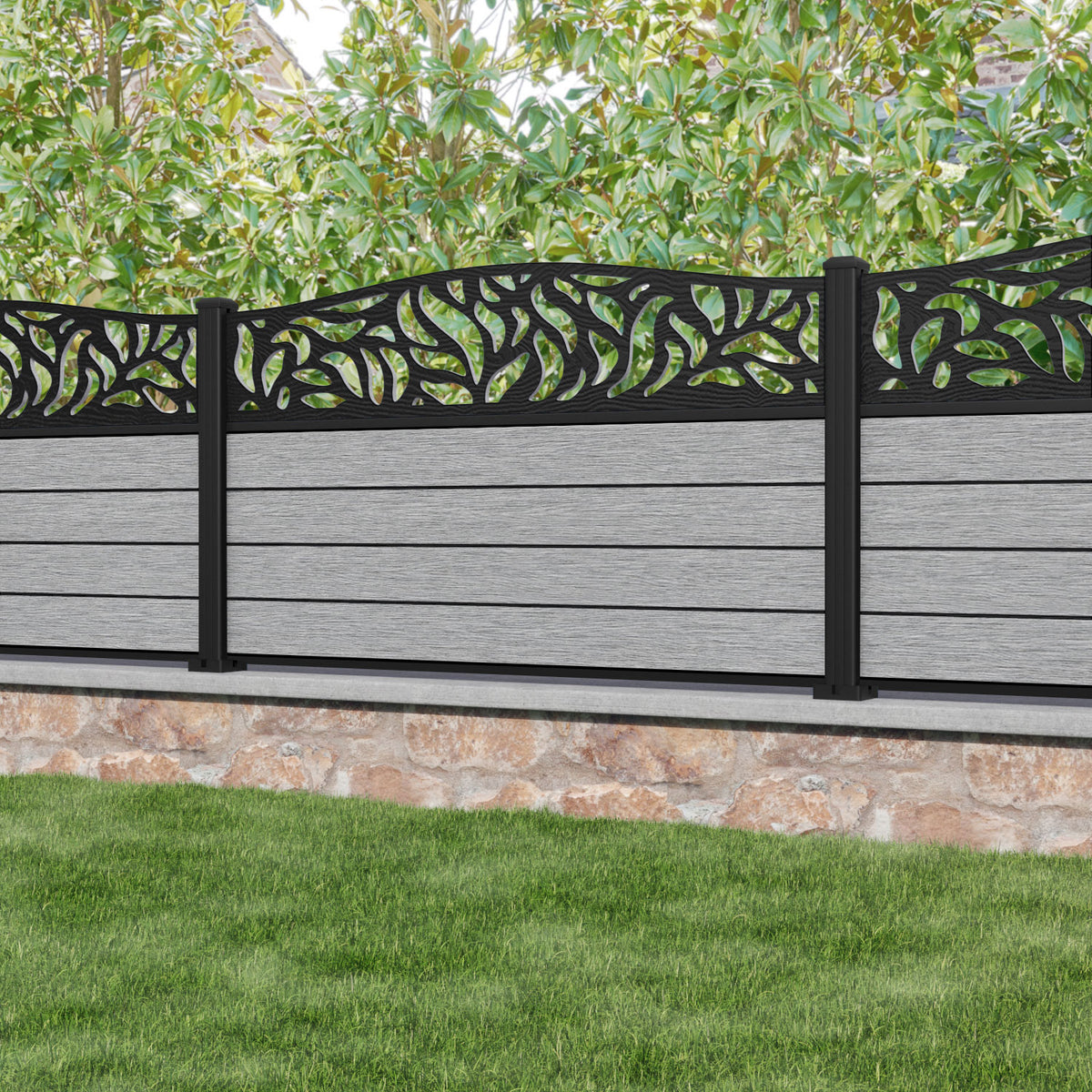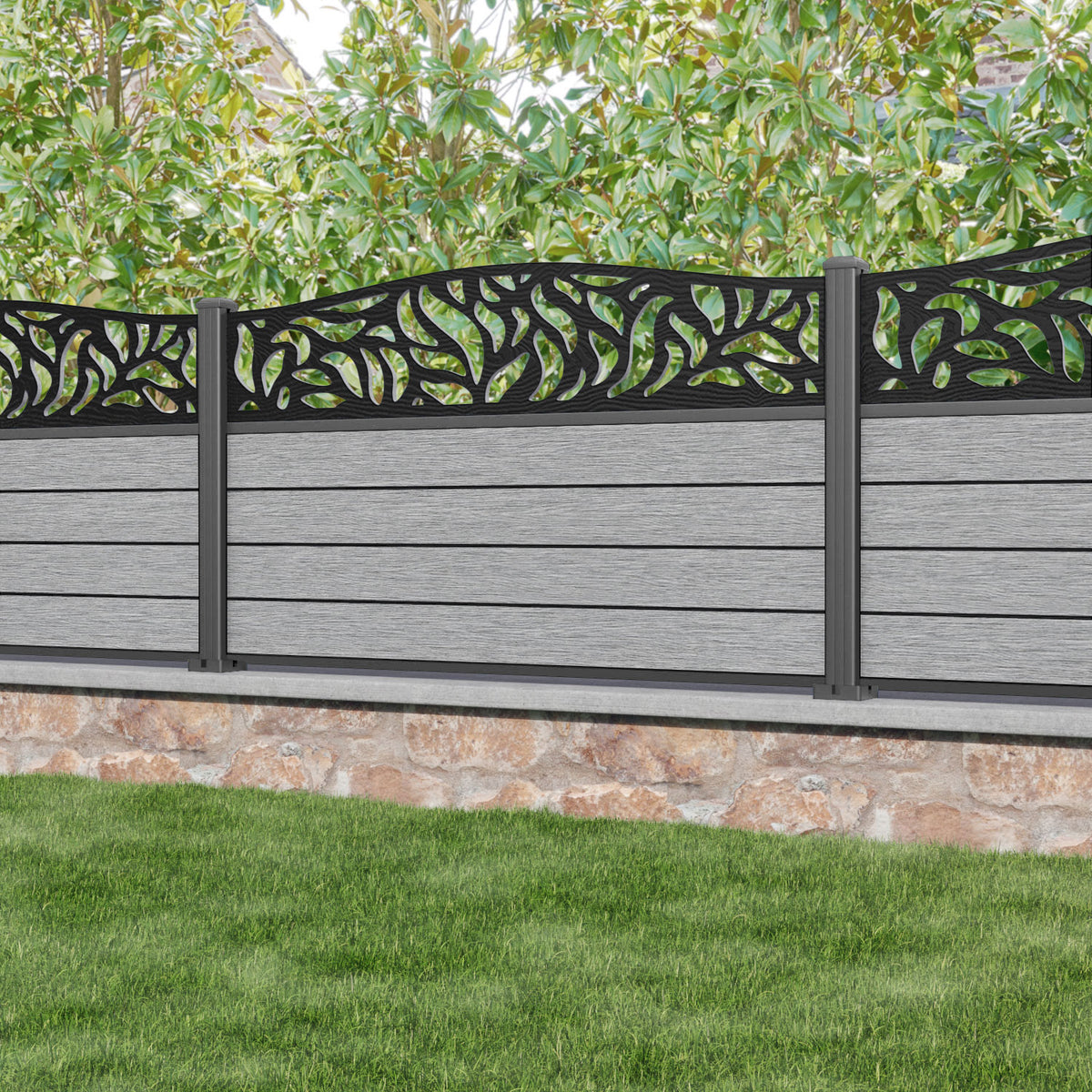 Fusion Plume Curved Top Fence Panel Light Grey - with our aluminium posts
