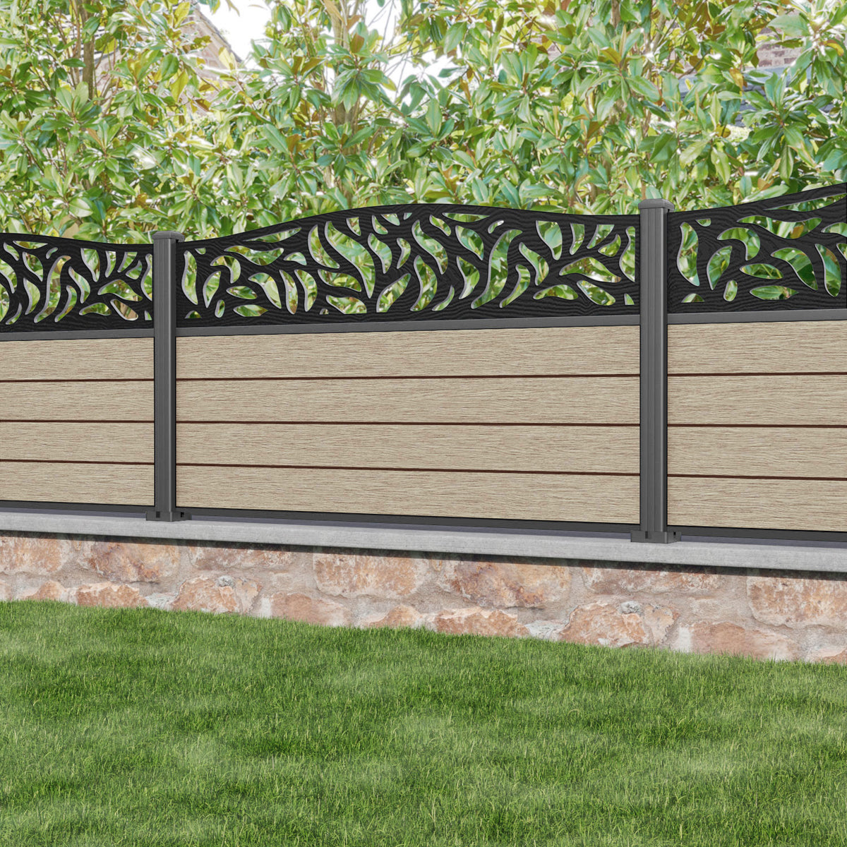Fusion Plume Curved Top Fence Panel Light Oak - with our aluminium posts