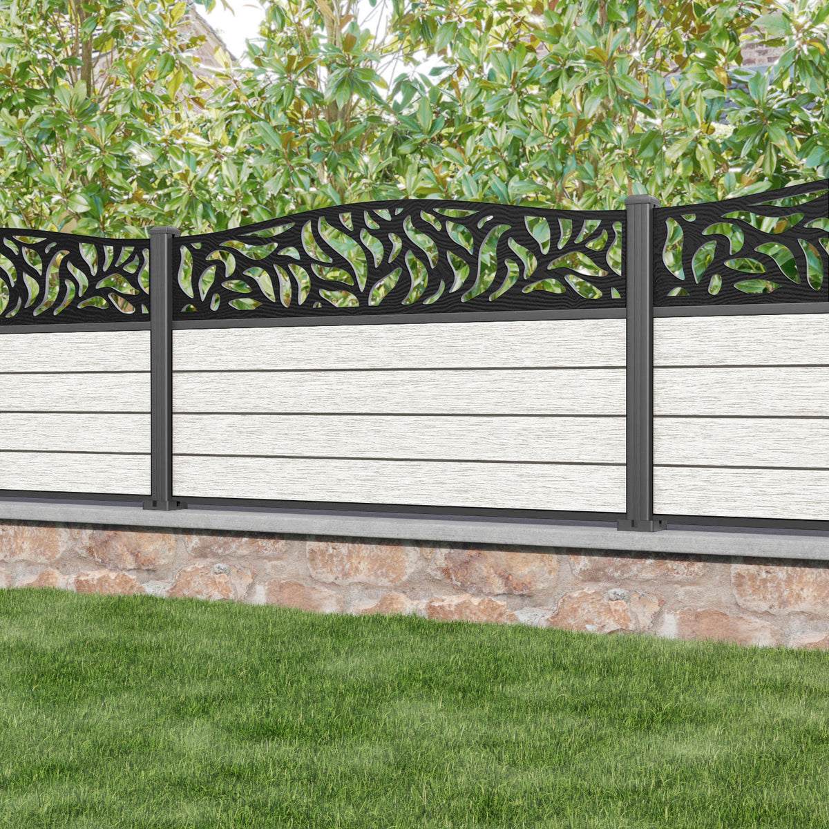 Fusion Plume Curved Top Fence Panel Light Stone - with our aluminium posts