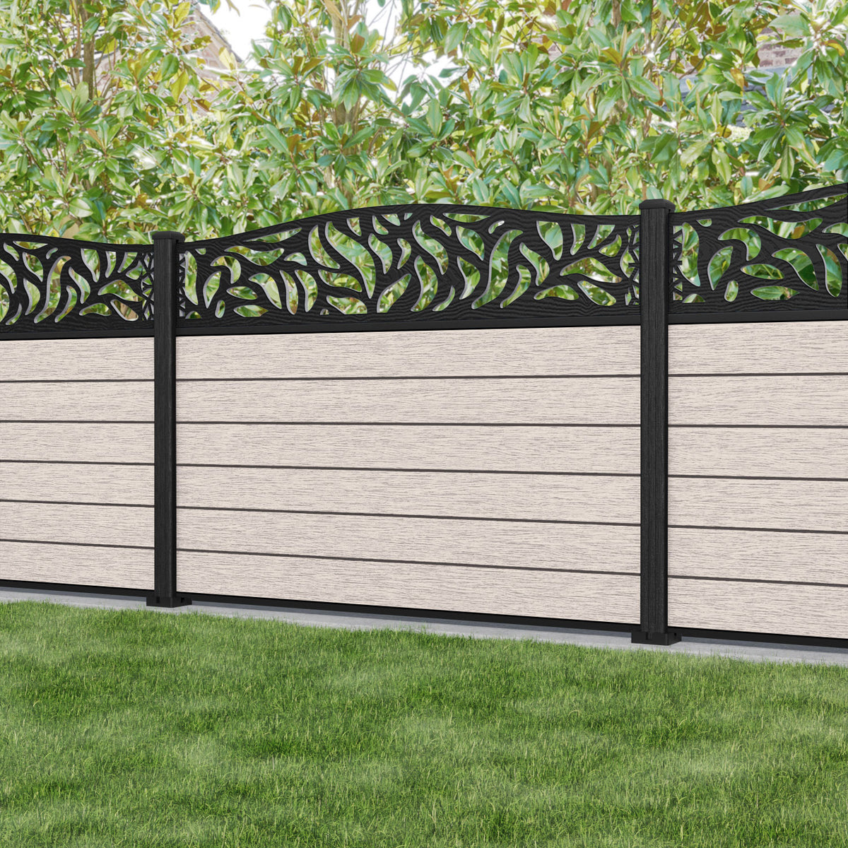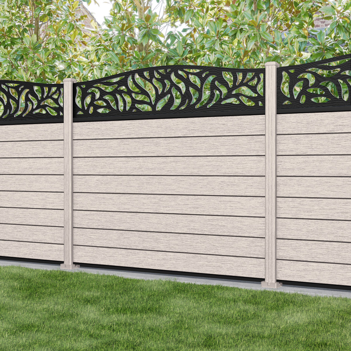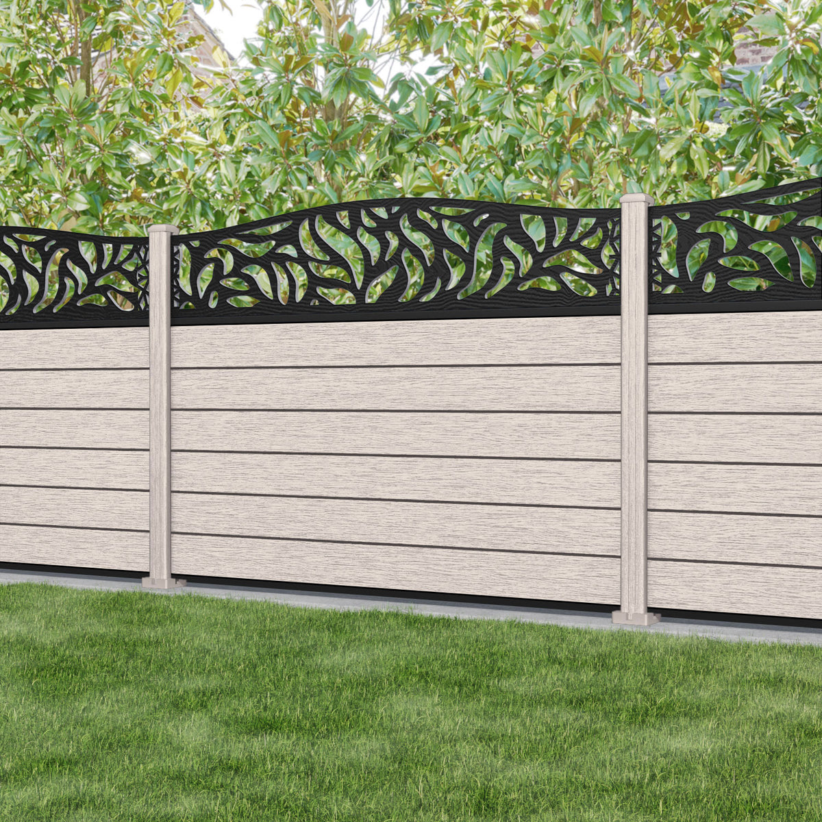 Fusion Plume Curved Top Fence Panel Mid Stone - with our composite posts