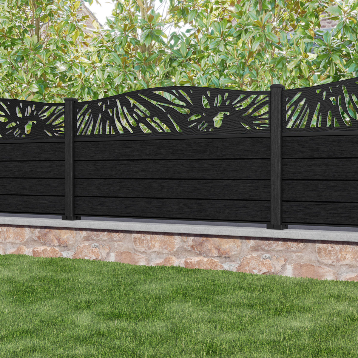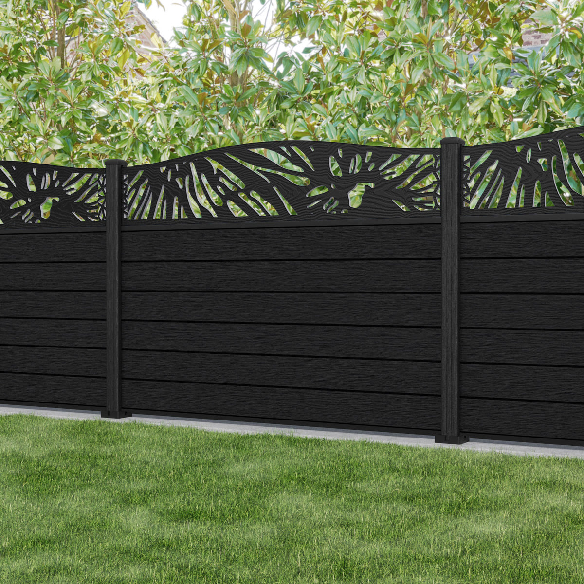 Fusion Poppy Curved Top Fence Panel Black - with our composite posts