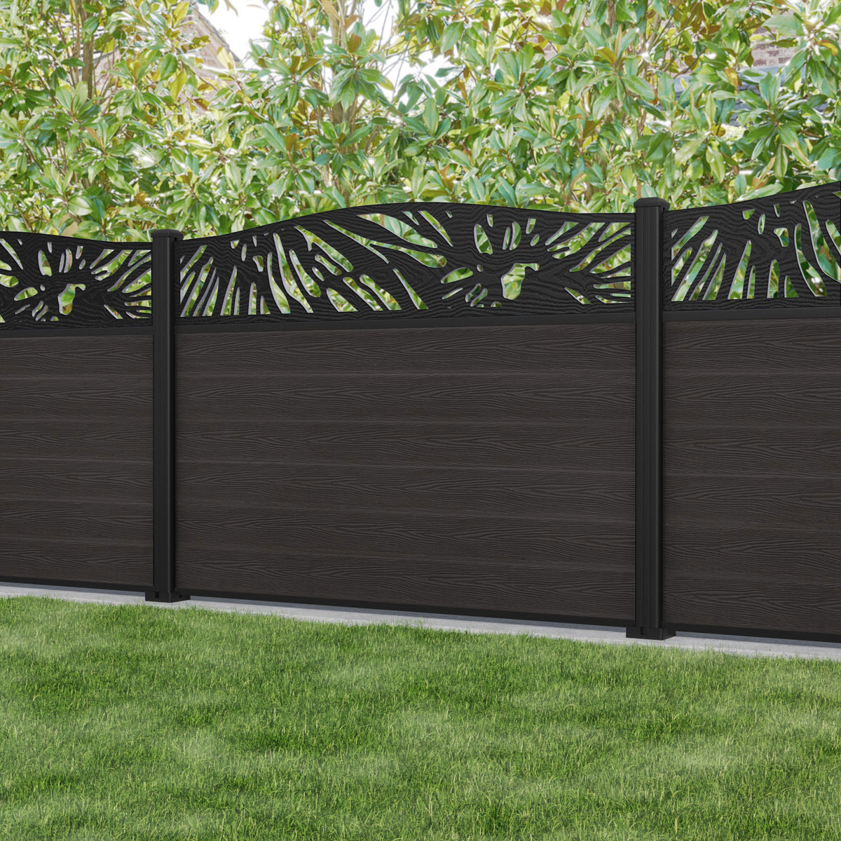 Fusion Poppy Curved Top Fence Panel Dark Oak - with our aluminium posts