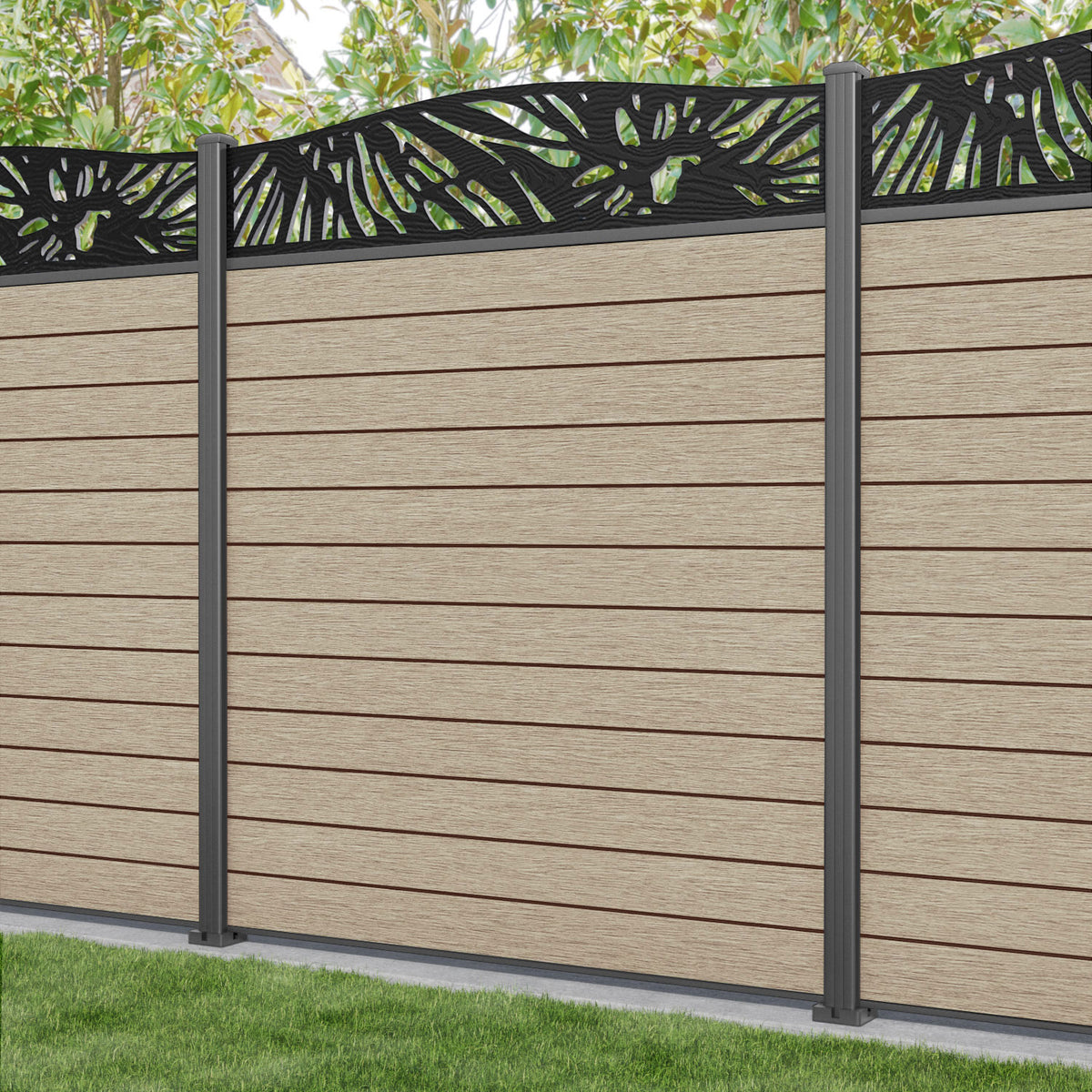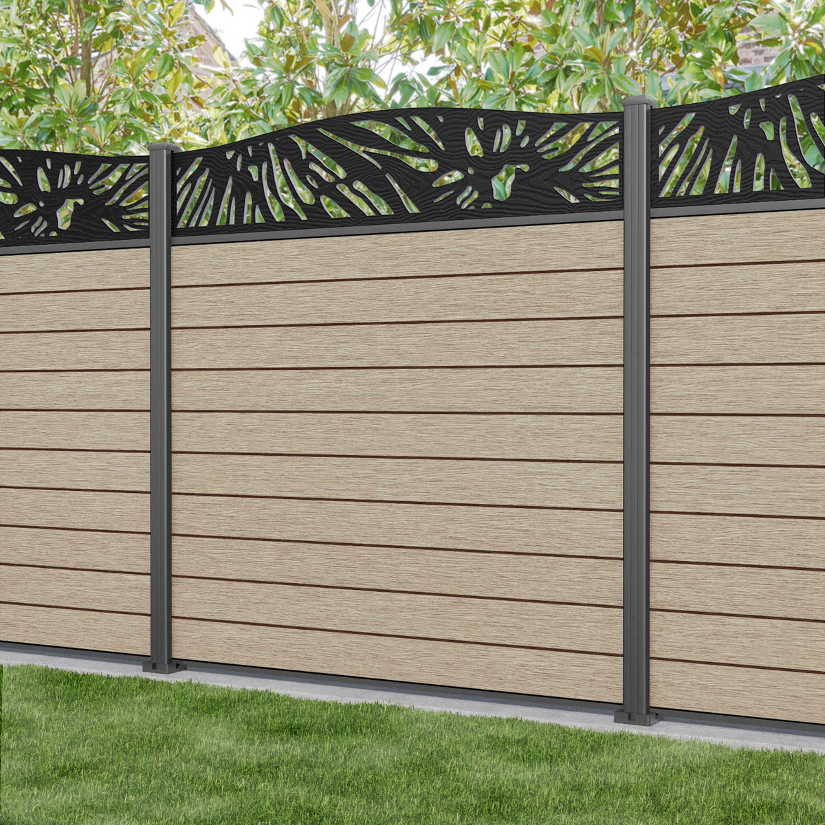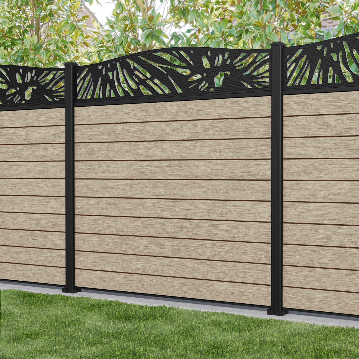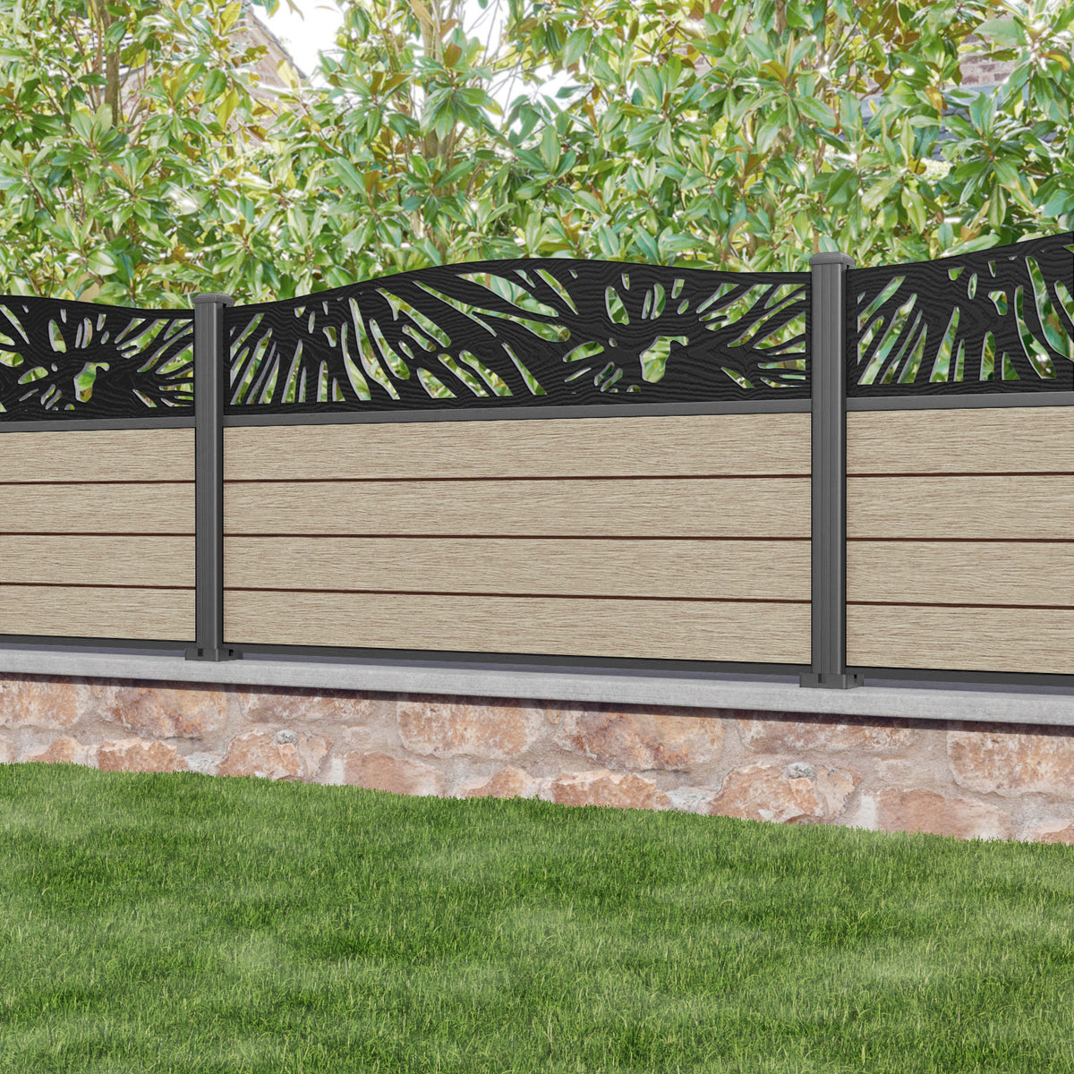 Fusion Poppy Curved Top Fence Panel Light Oak - with our aluminium posts