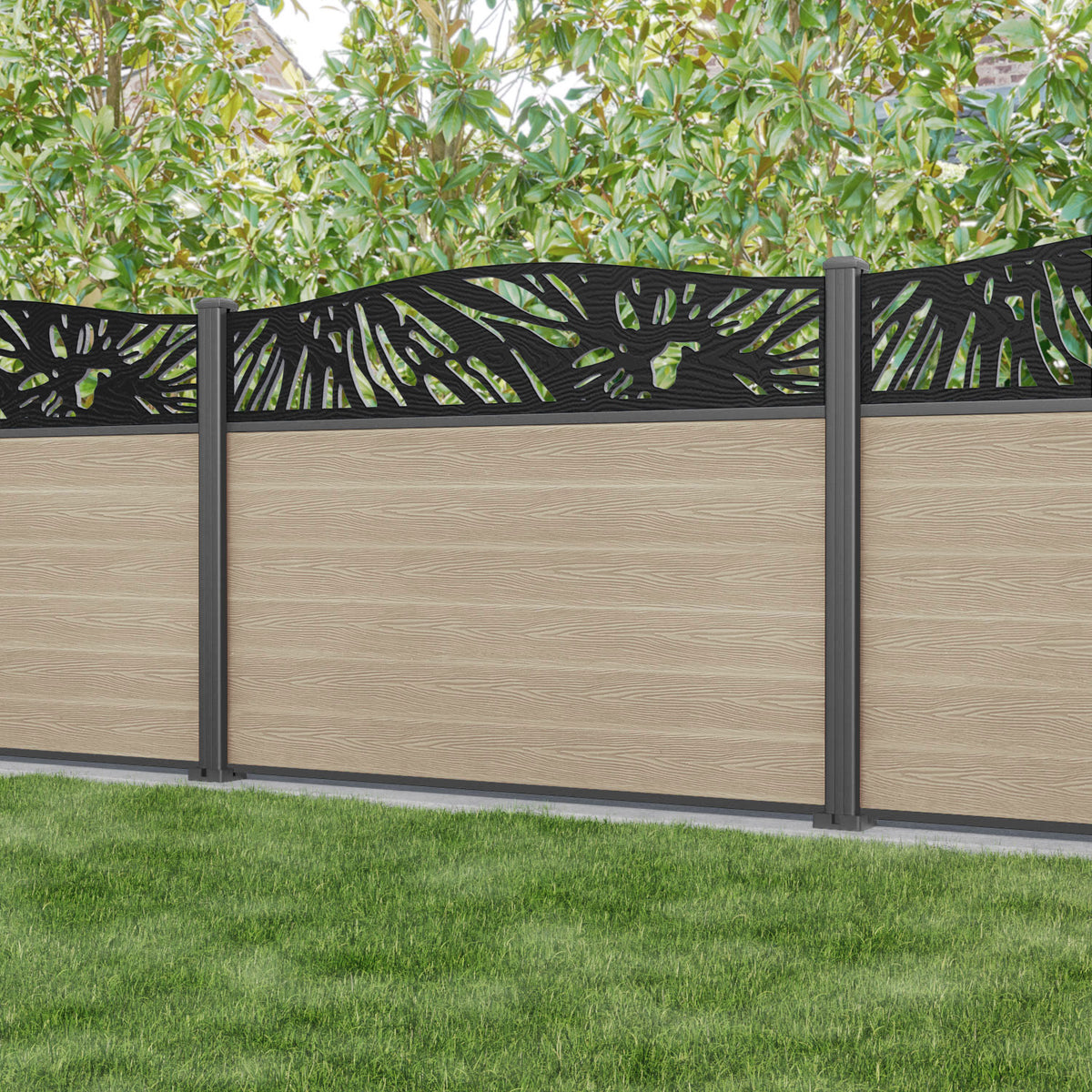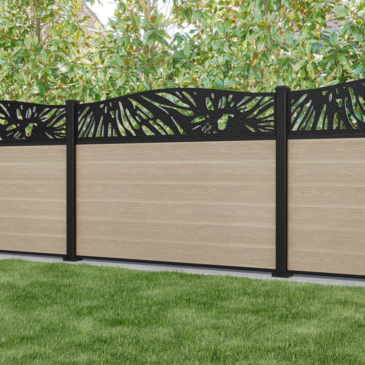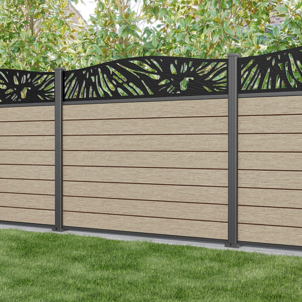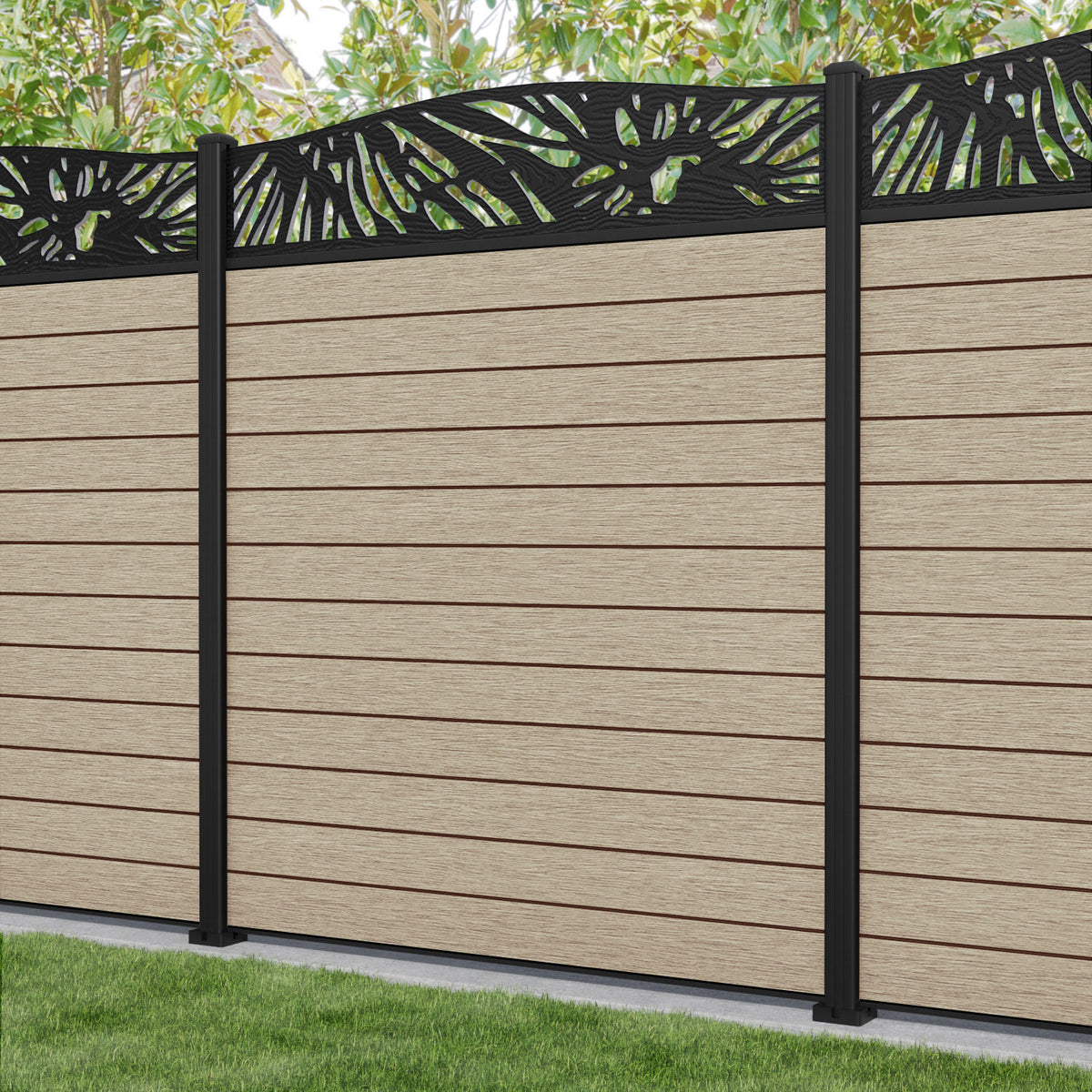 Fusion Poppy Curved Top Fence Panel Light Oak - with our aluminium posts