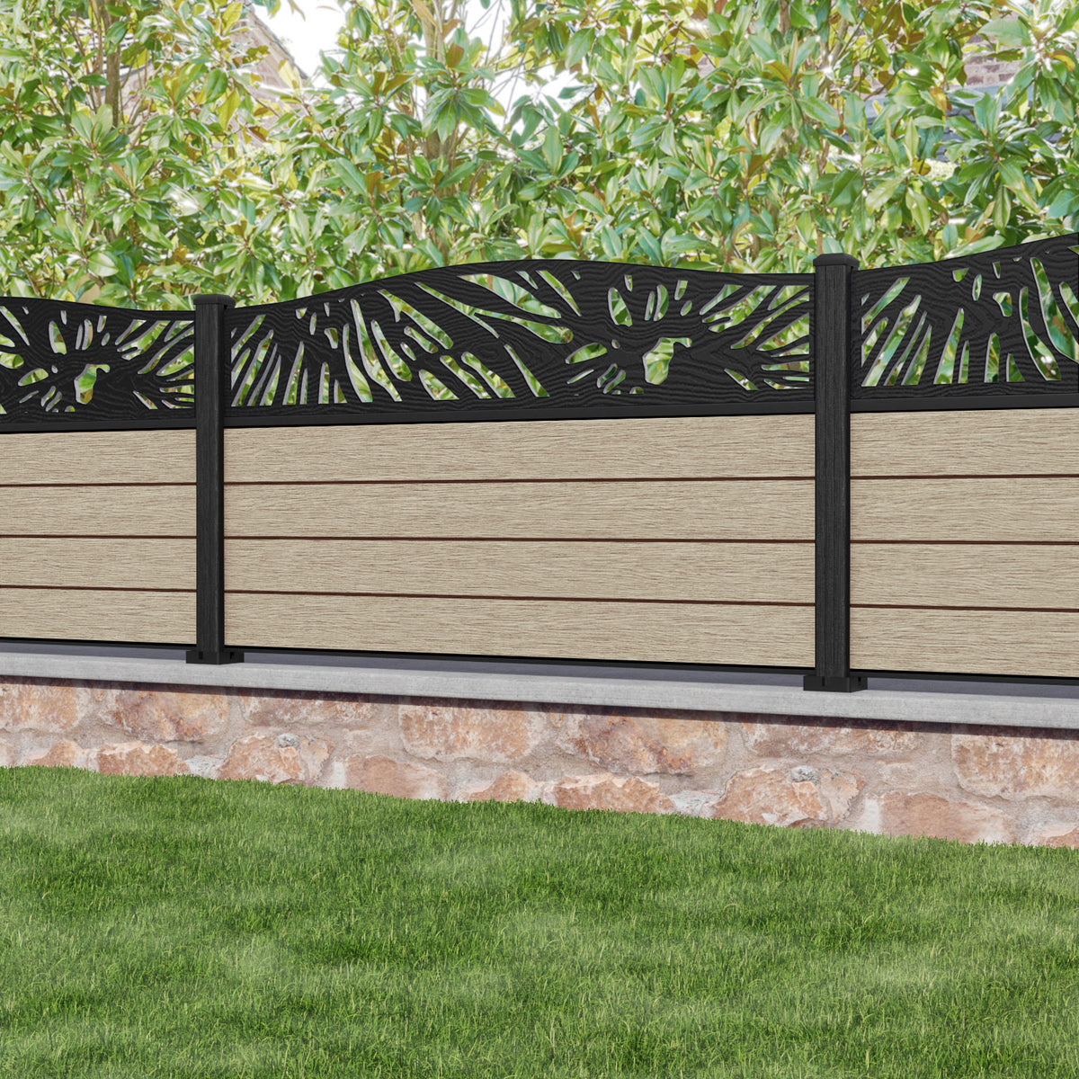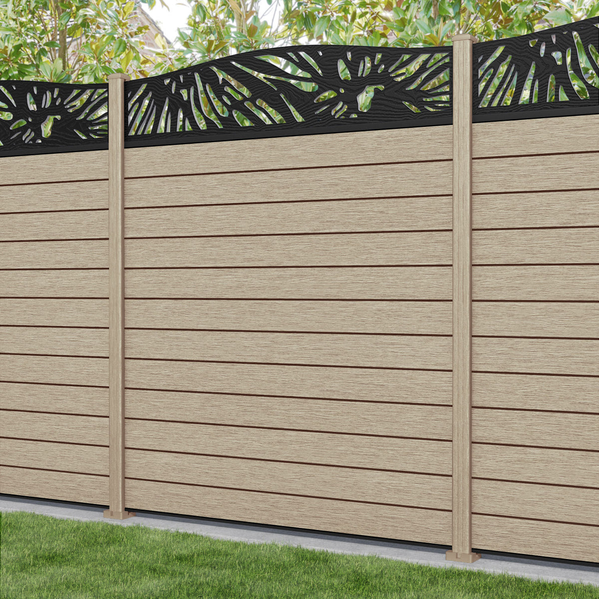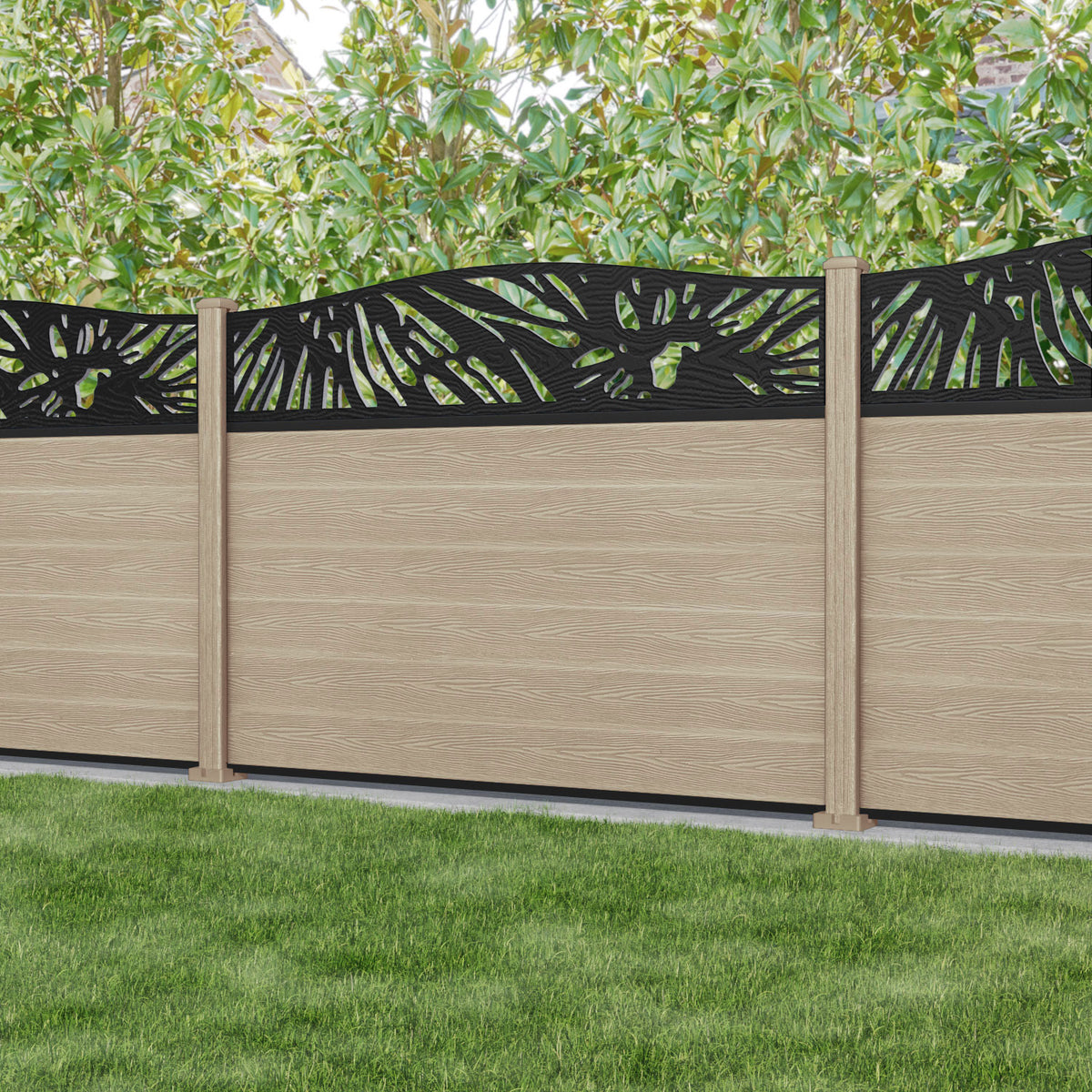Fusion Poppy Curved Top Fence Panel Light Oak - with our composite posts