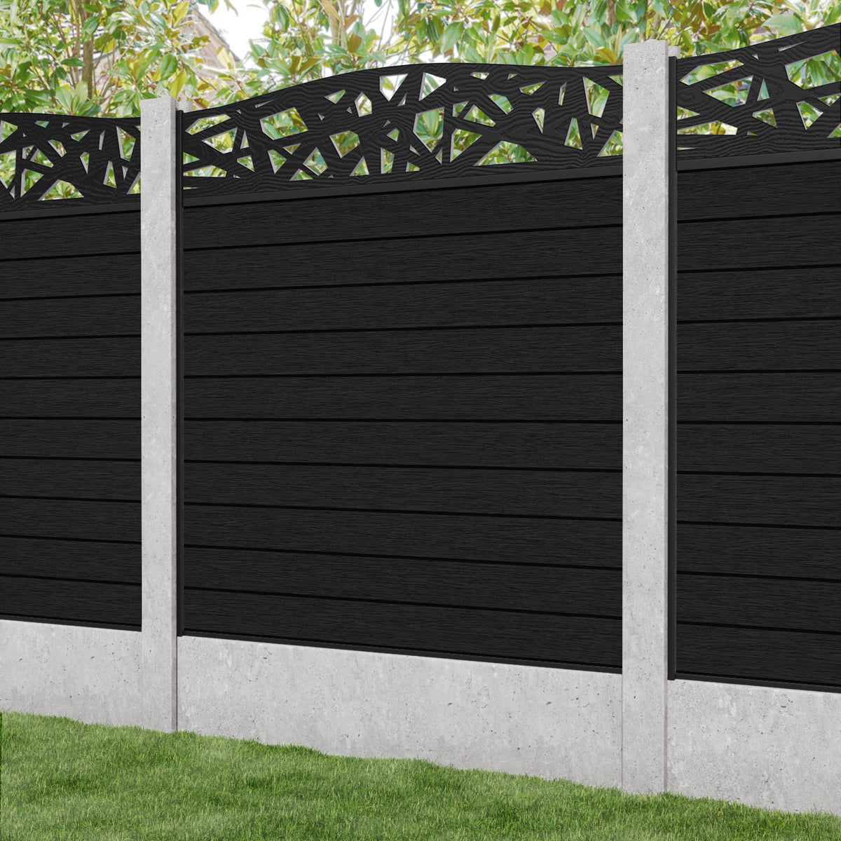 Fusion Prism Curved Top Fence Panel Black - for existing concrete posts