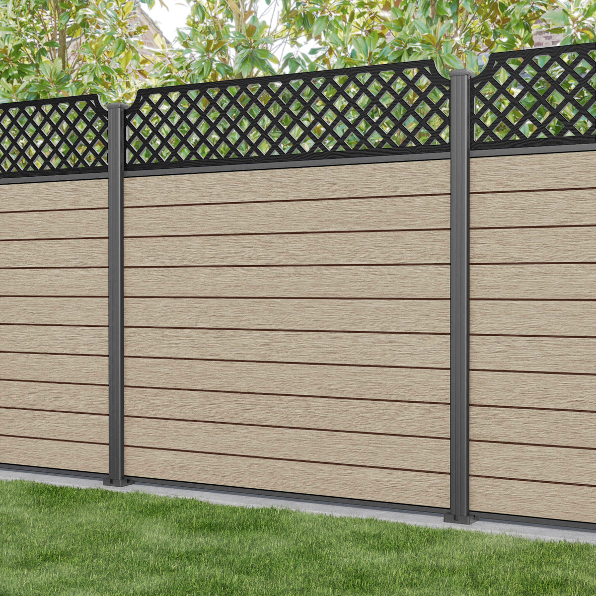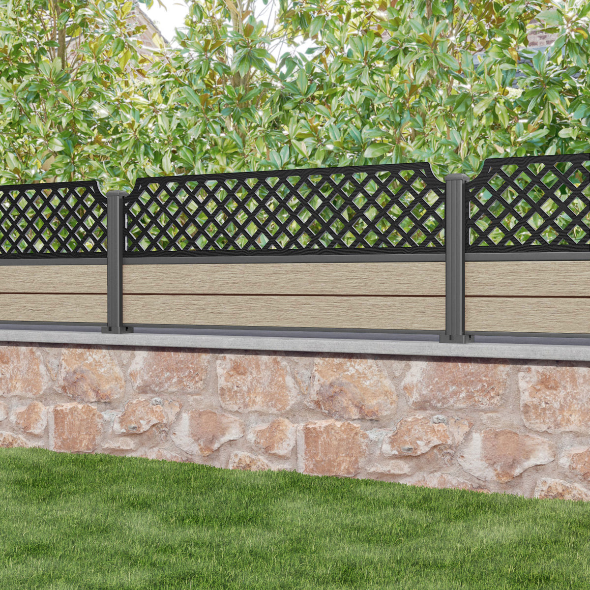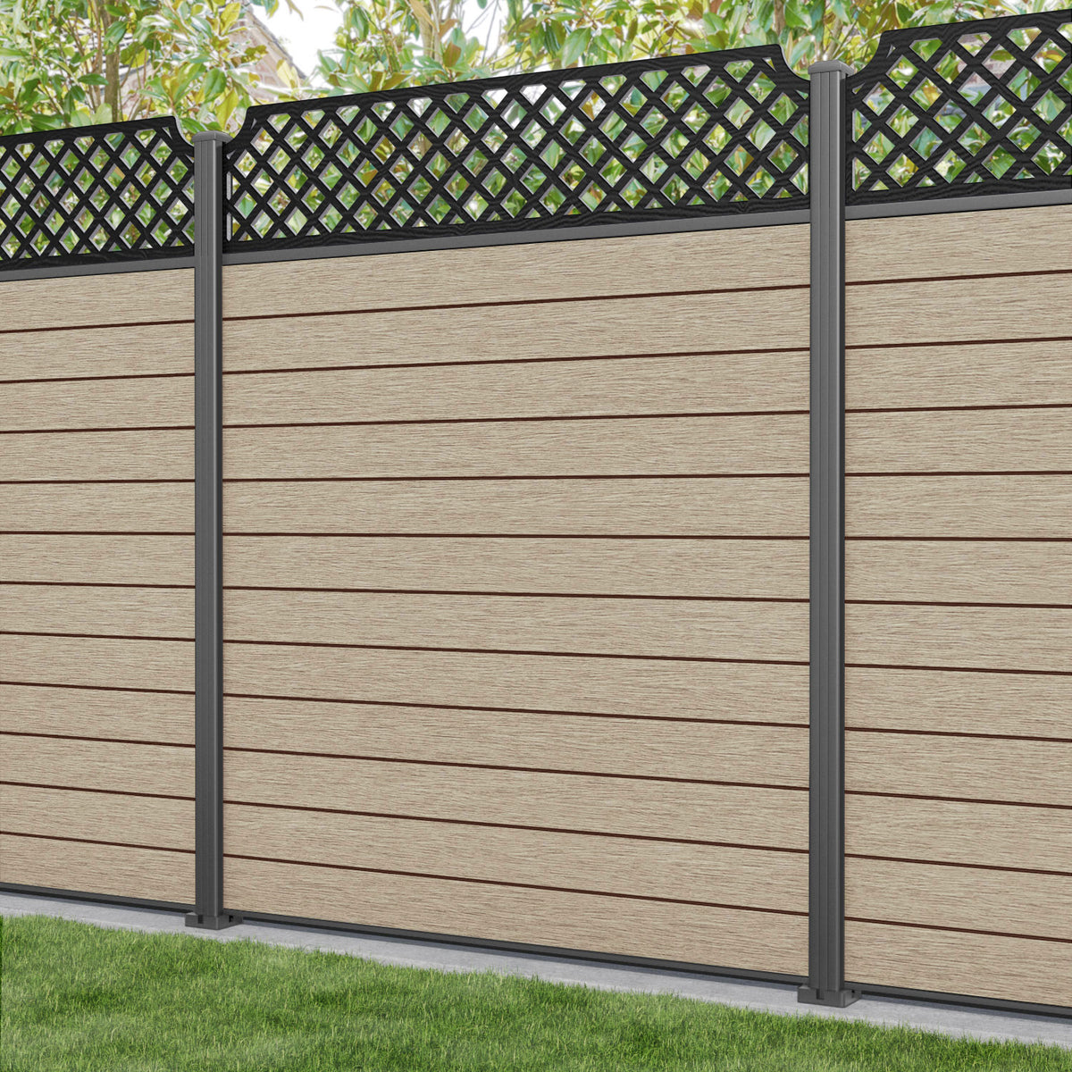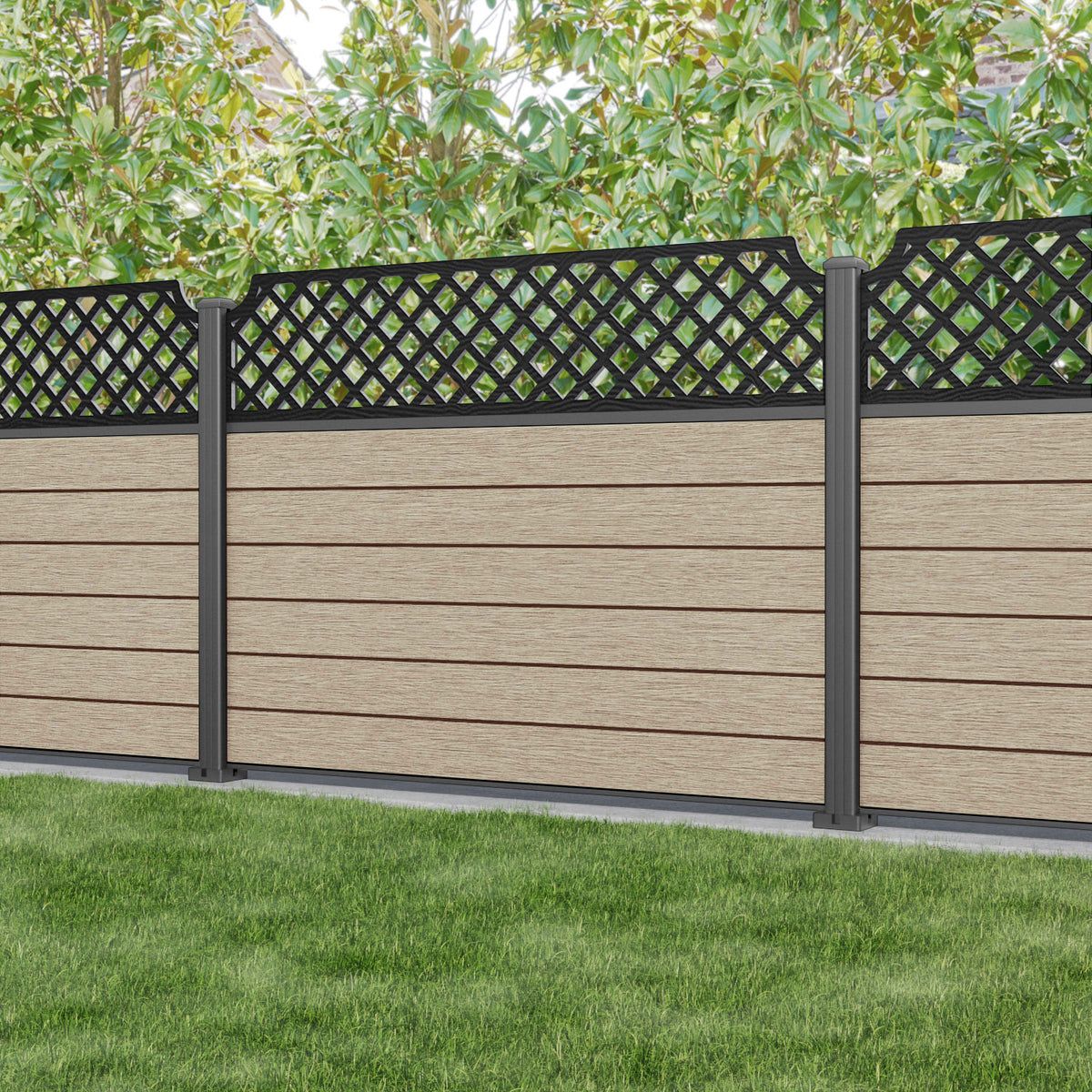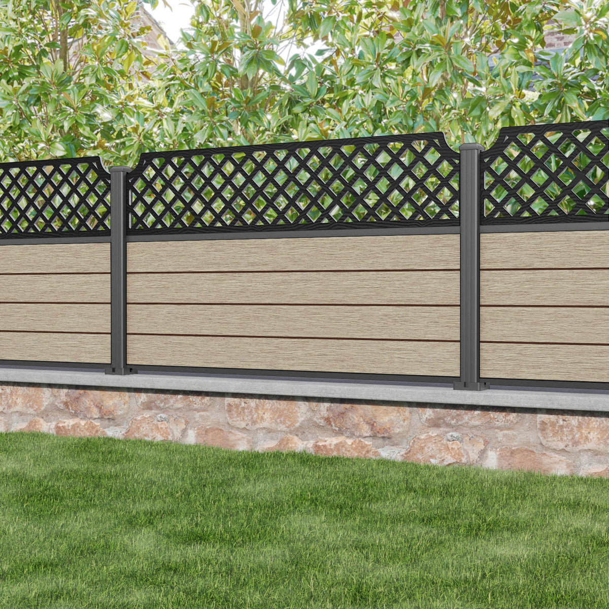 Fusion Regal Hive Fence Panel Light Oak - with our aluminium posts