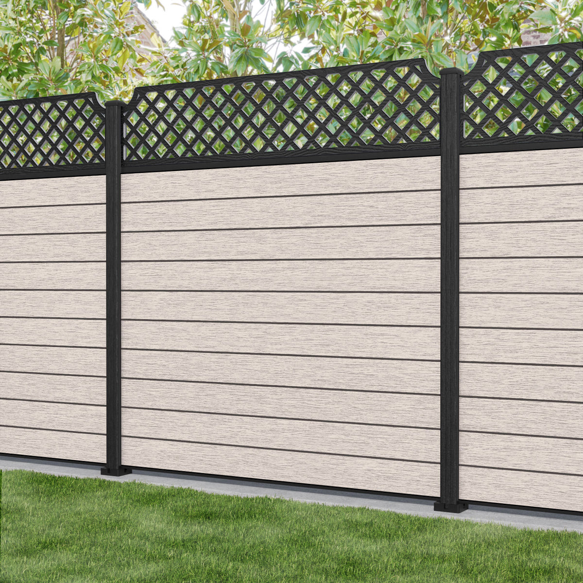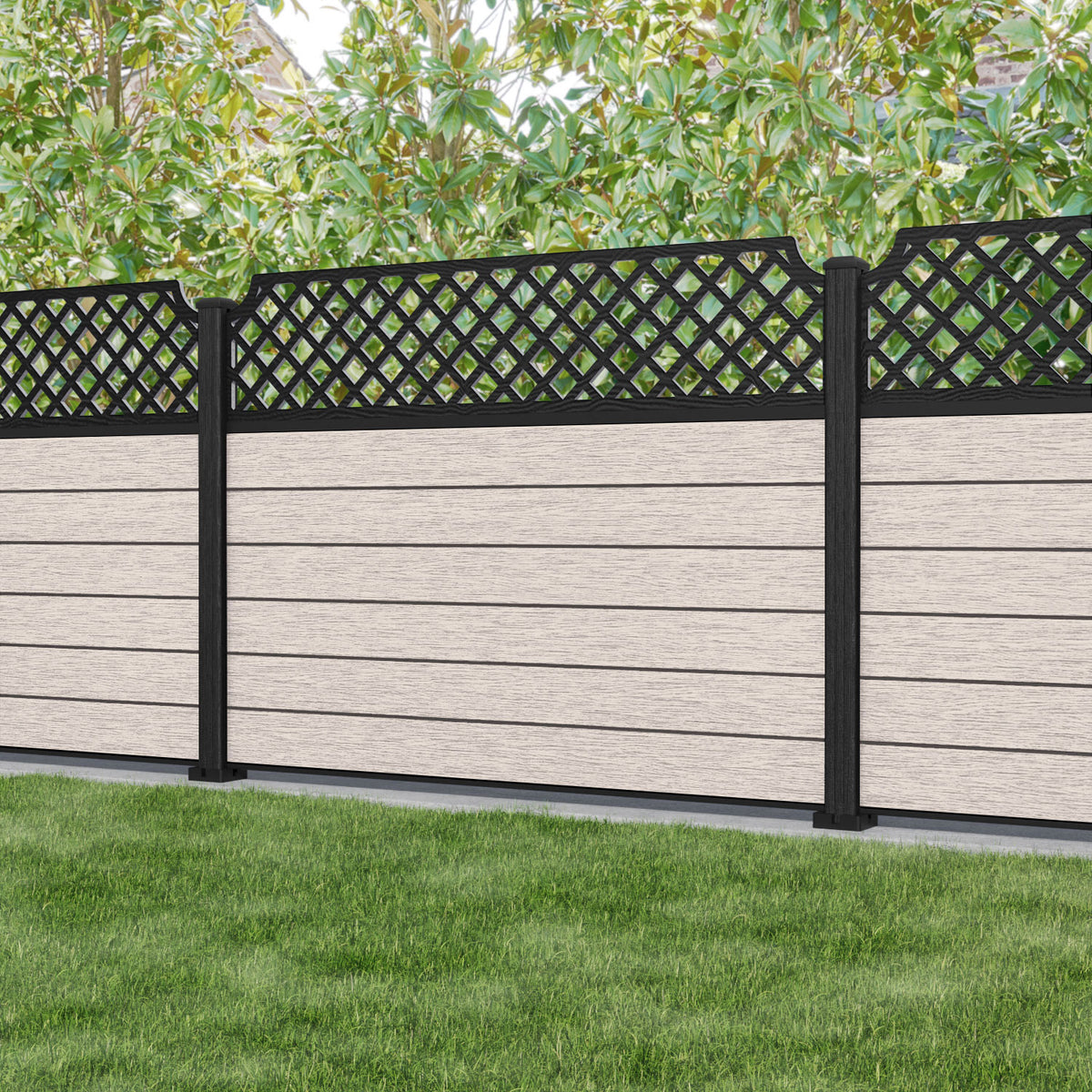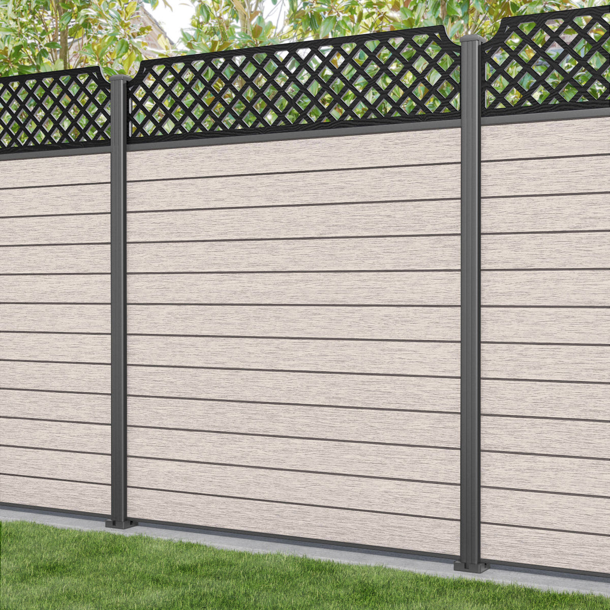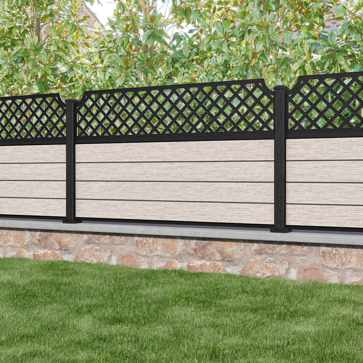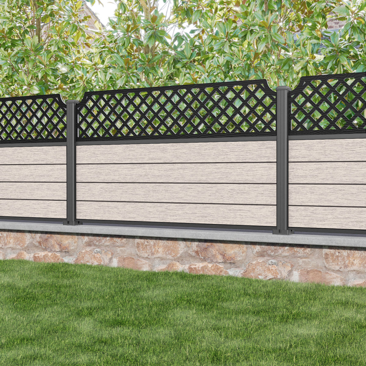 Fusion Regal Hive Fence Panel Mid Stone - with our aluminium posts