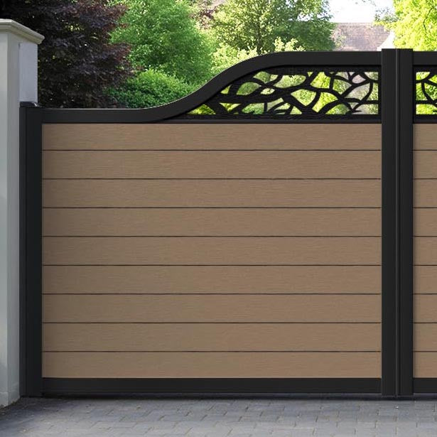 Fusion Twilight Curved Top Driveway Gate Teak - Top Screen
