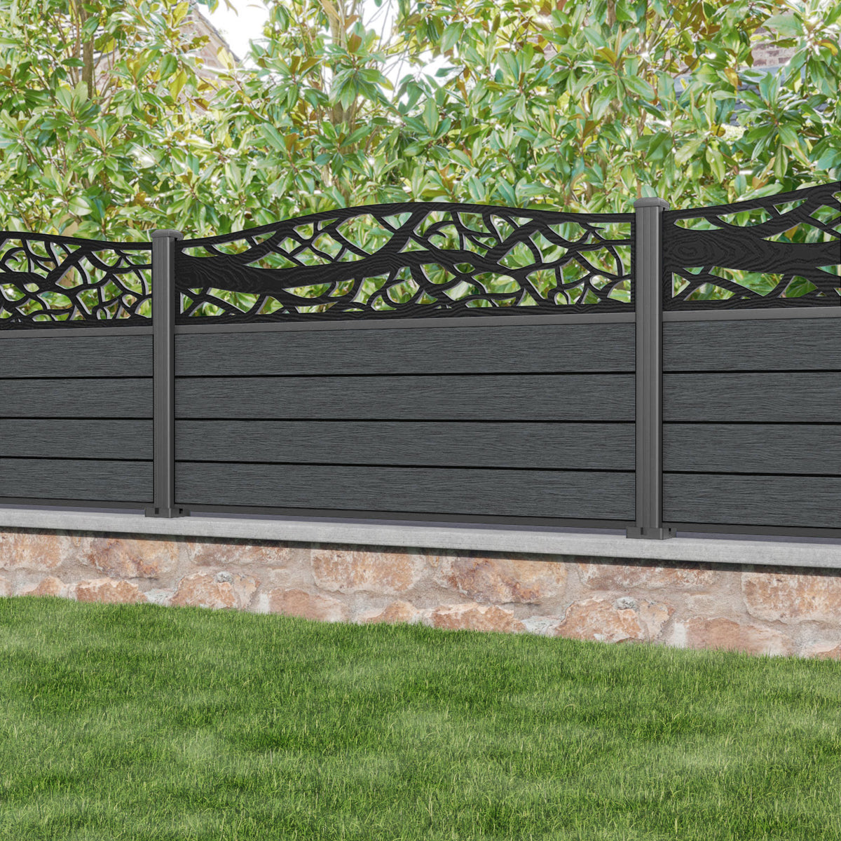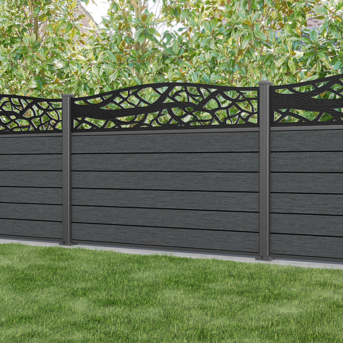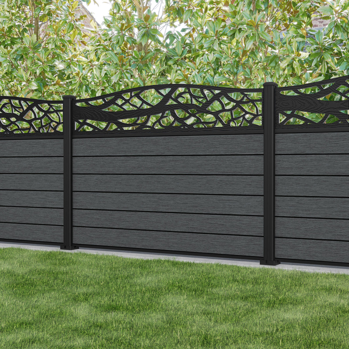 Fusion Twilight Curved Top Fence Panel Dark Grey - with our aluminium posts