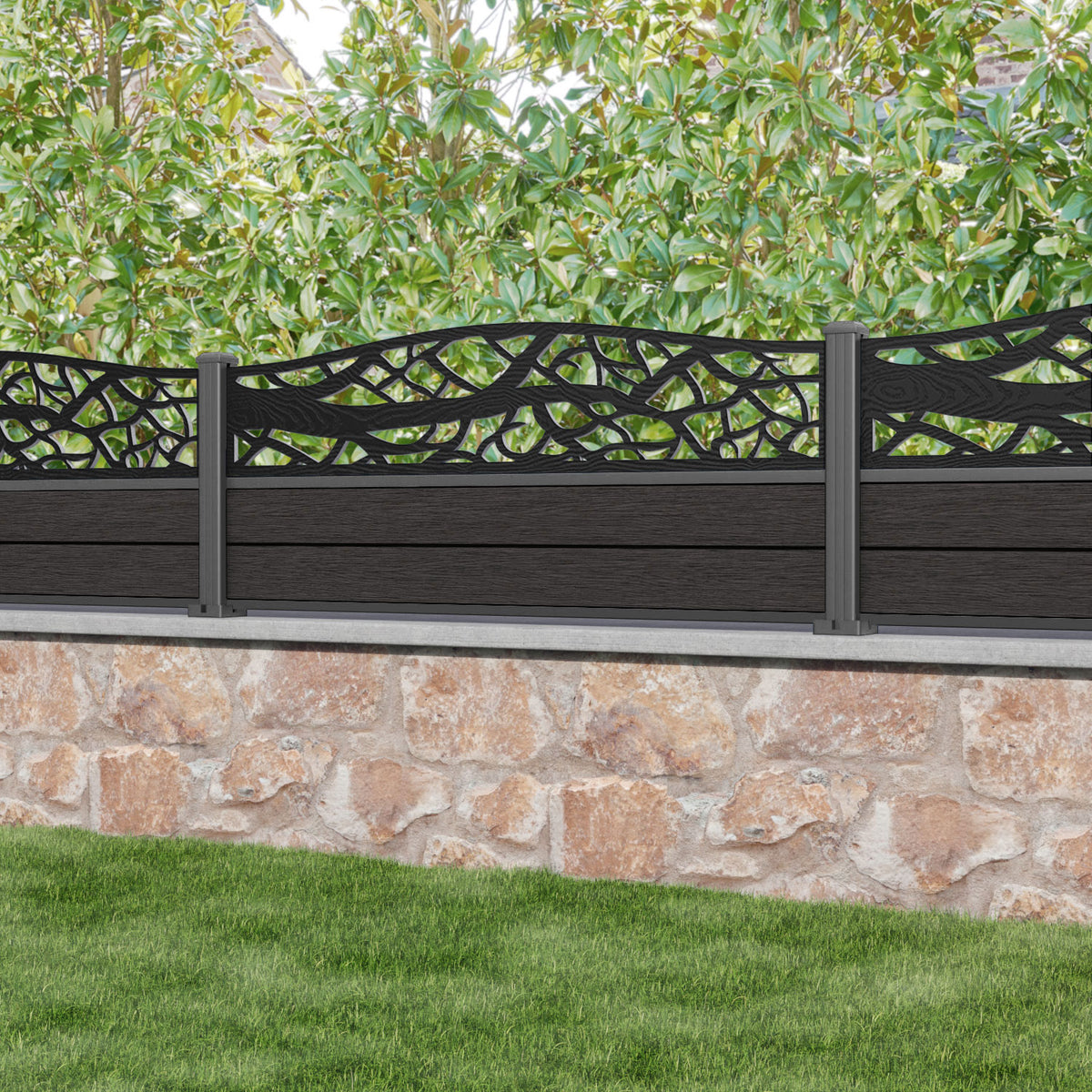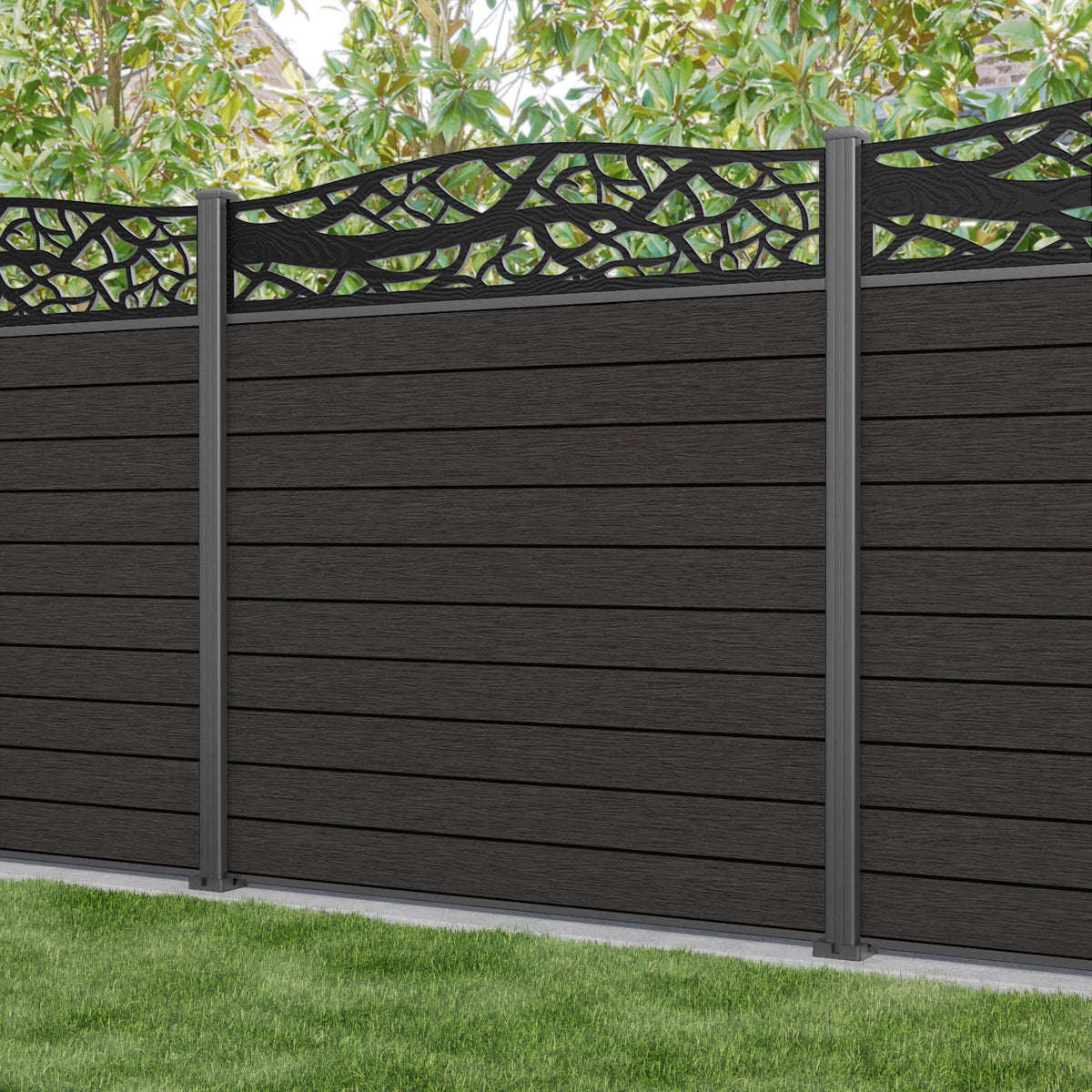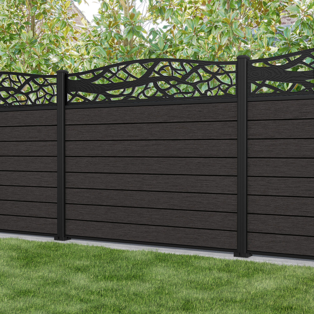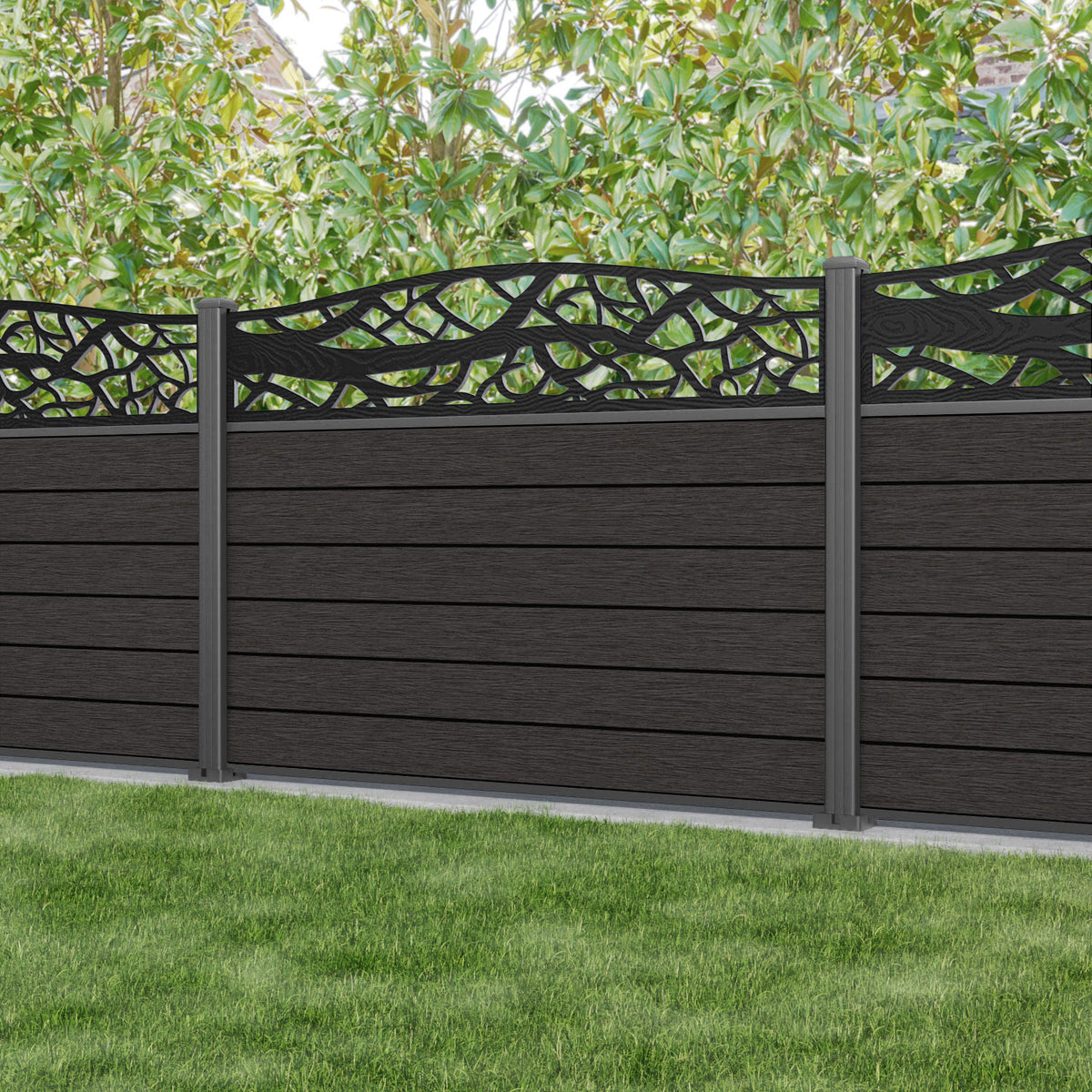 Fusion Twilight Curved Top Fence Panel Dark Oak - with our aluminium posts