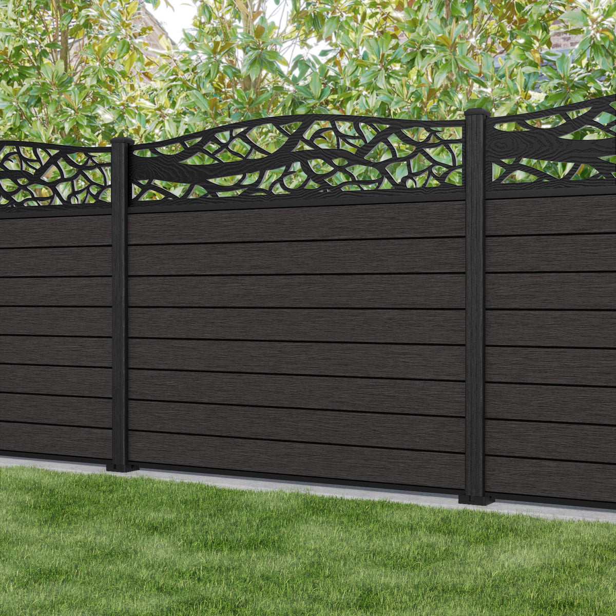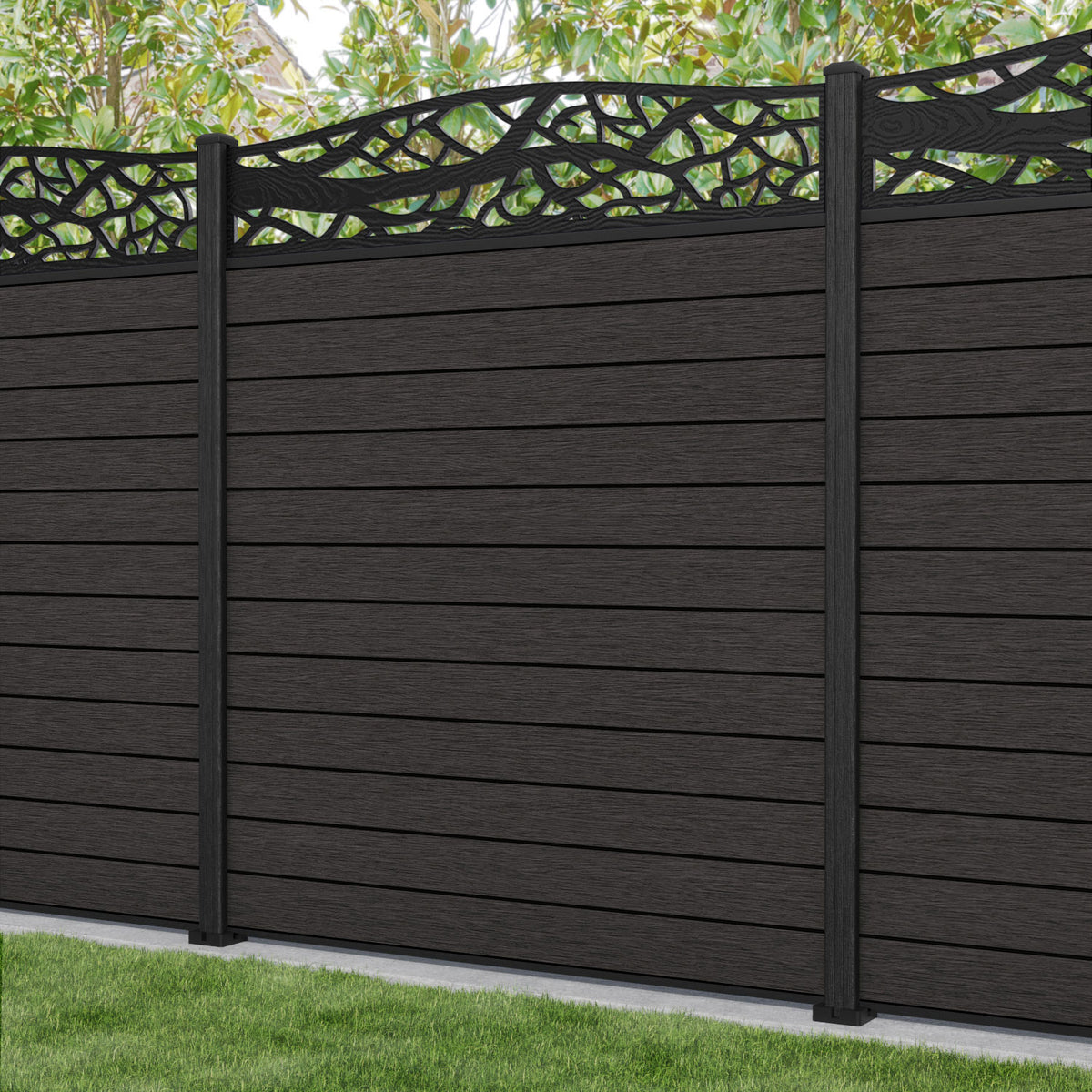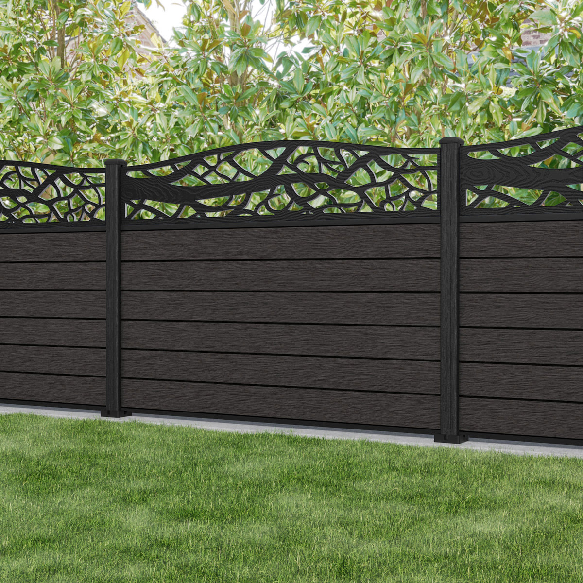 Fusion Twilight Curved Top Fence Panel Dark Oak - with our composite posts