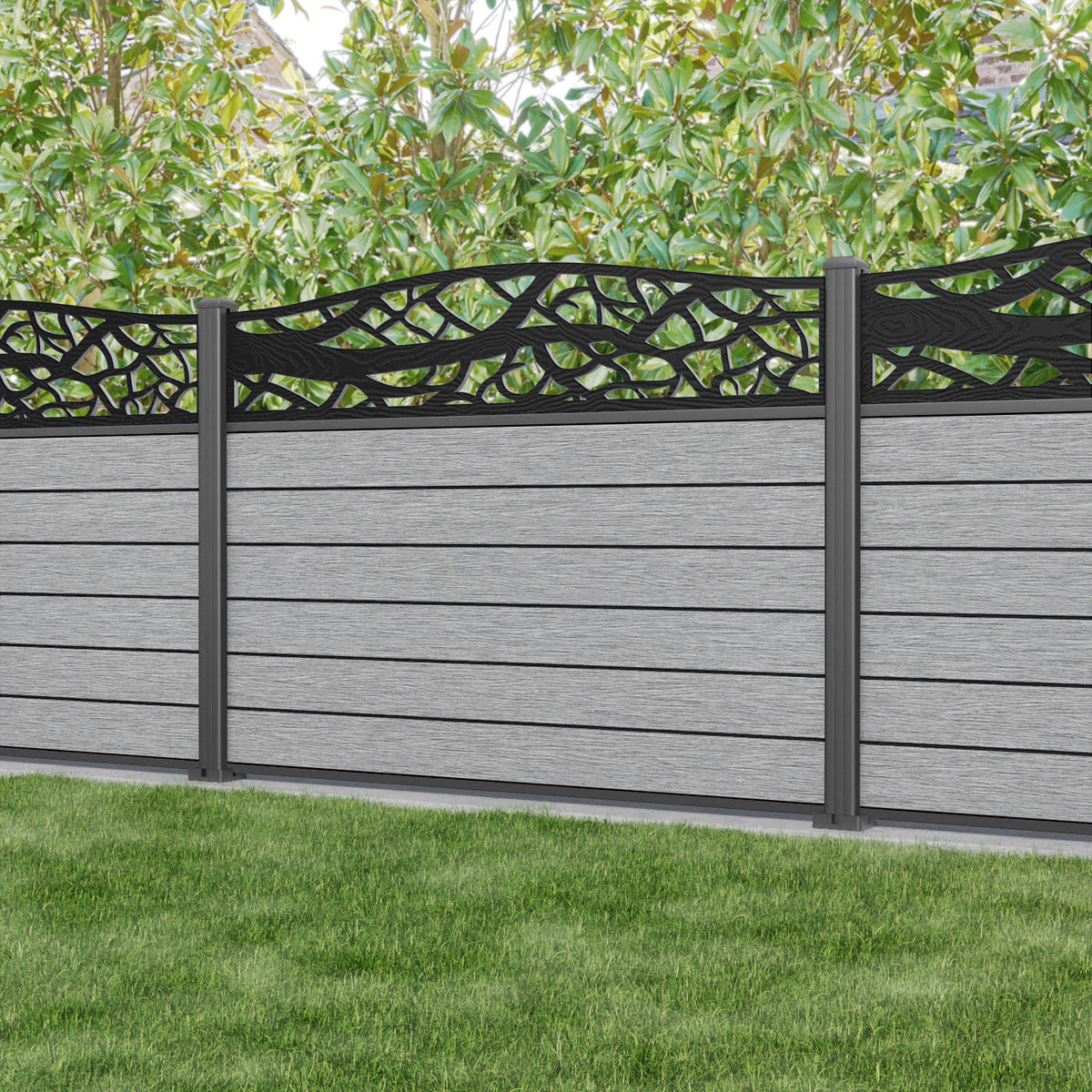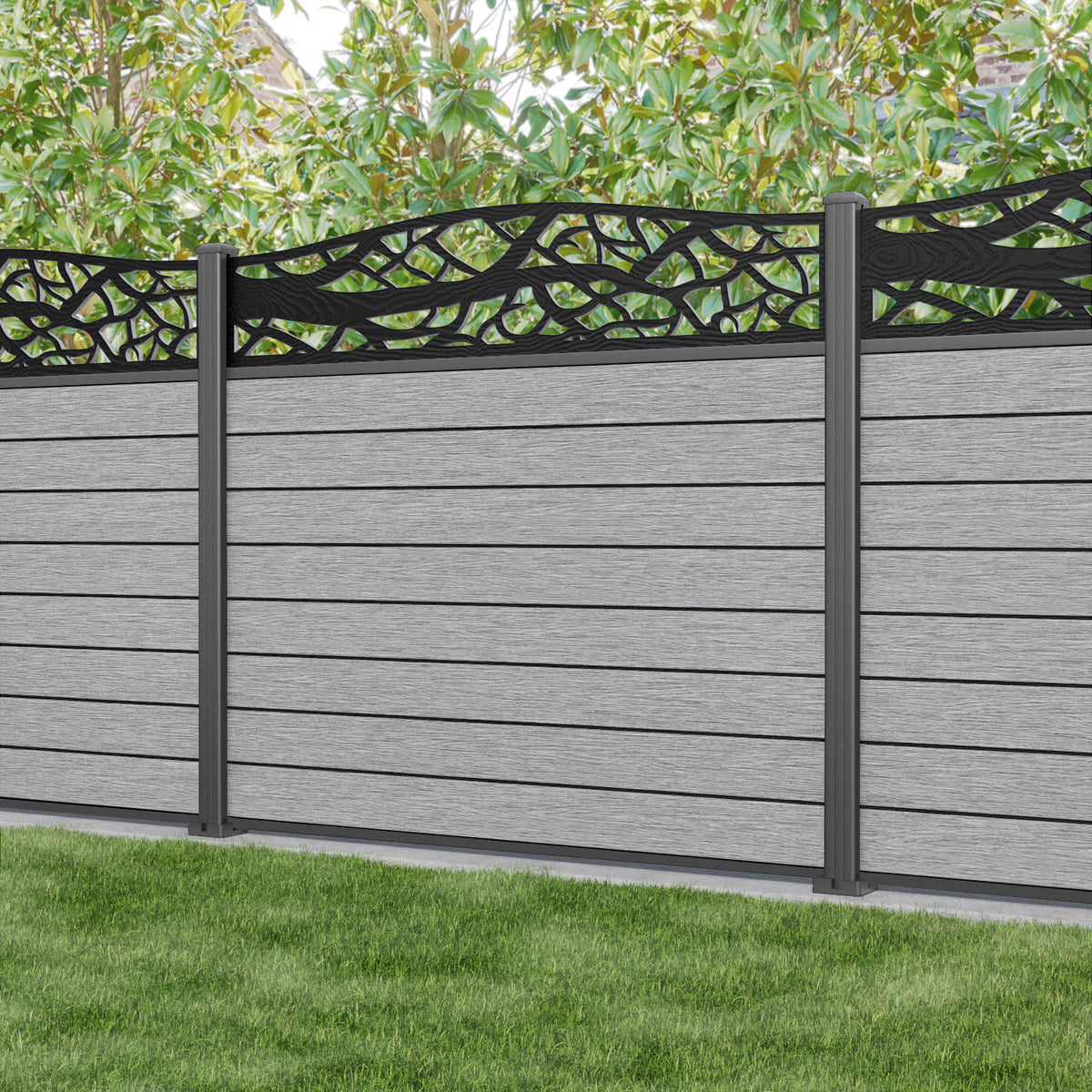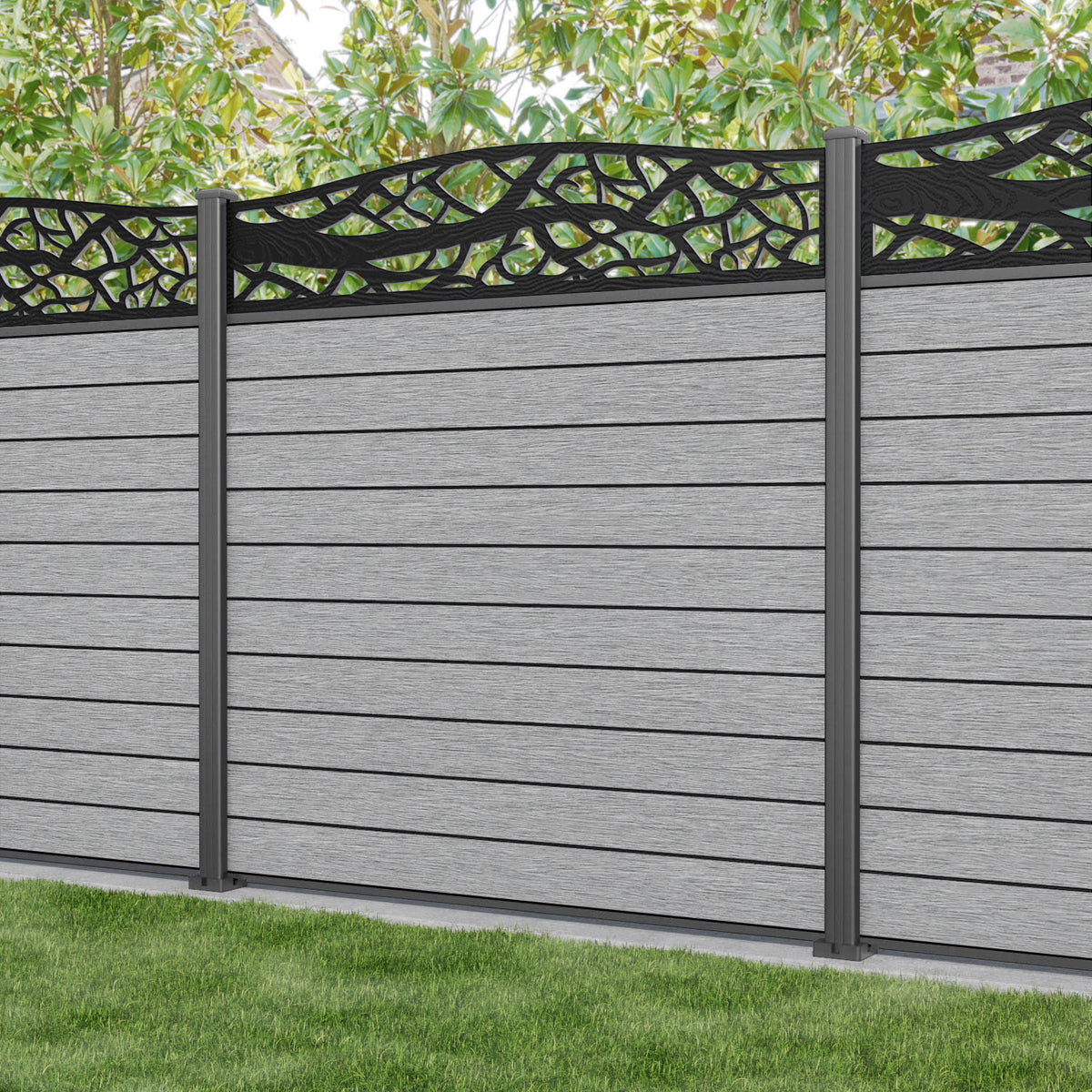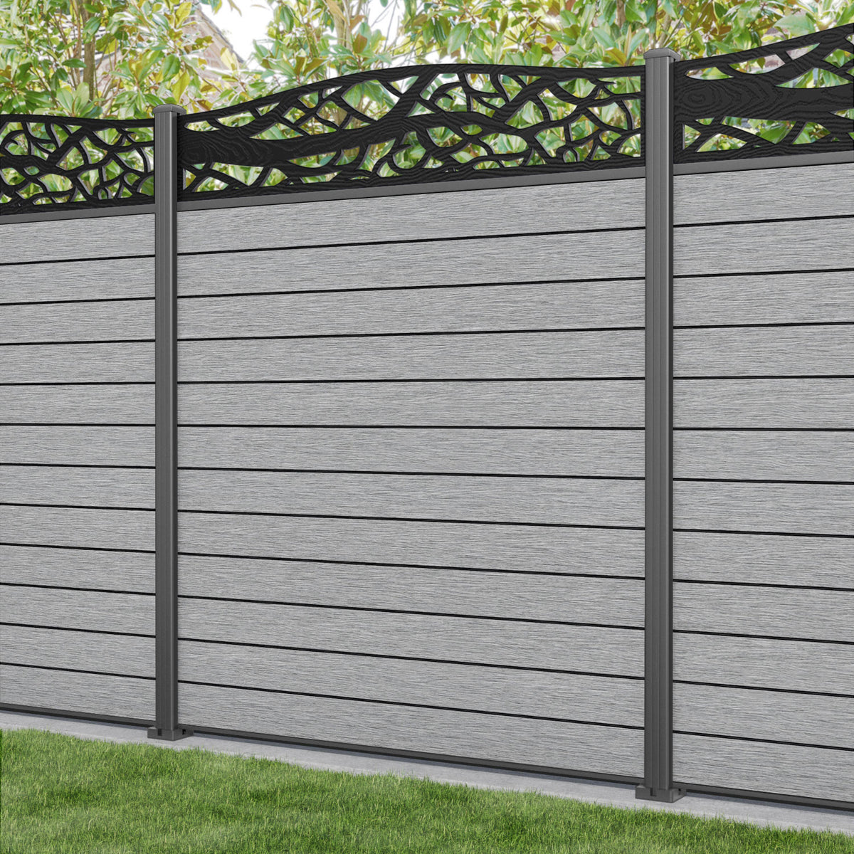 Fusion Twilight Curved Top Fence Panel Light Grey - with our aluminium posts