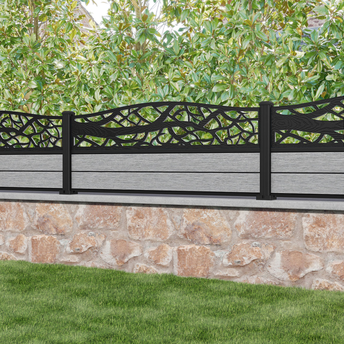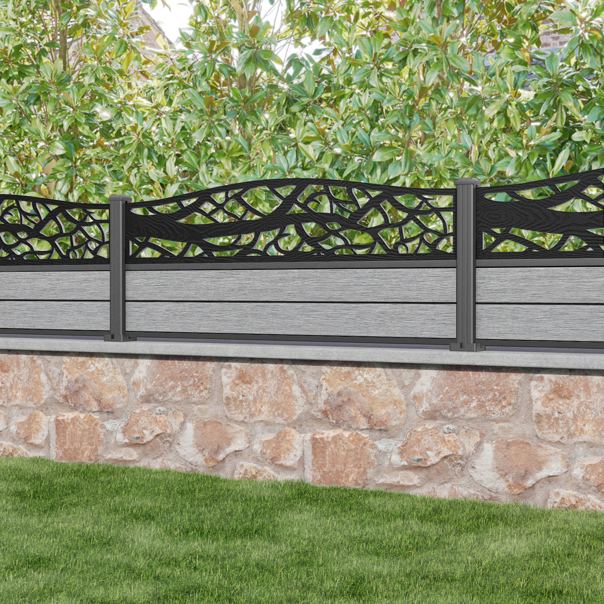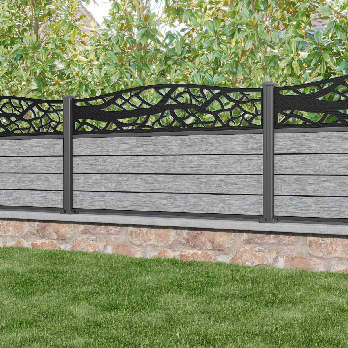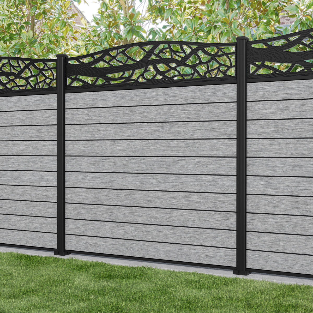 Fusion Twilight Curved Top Fence Panel Light Grey - with our aluminium posts