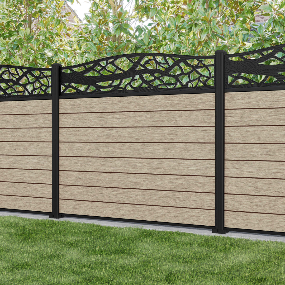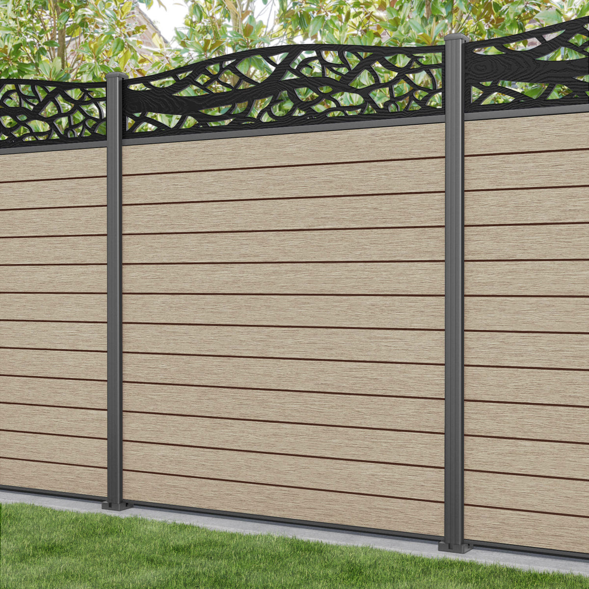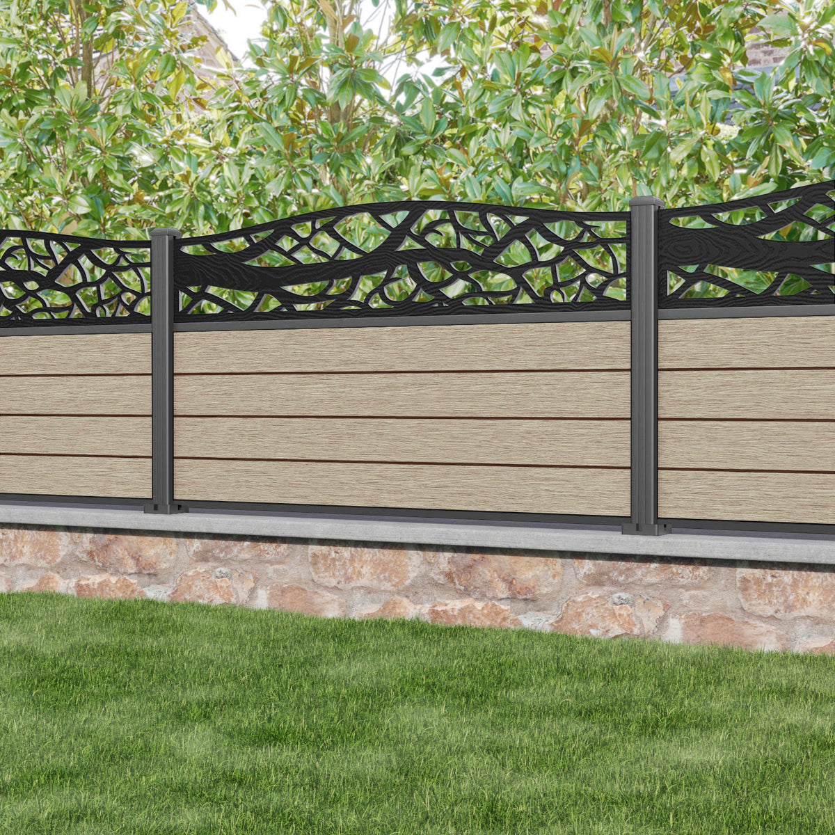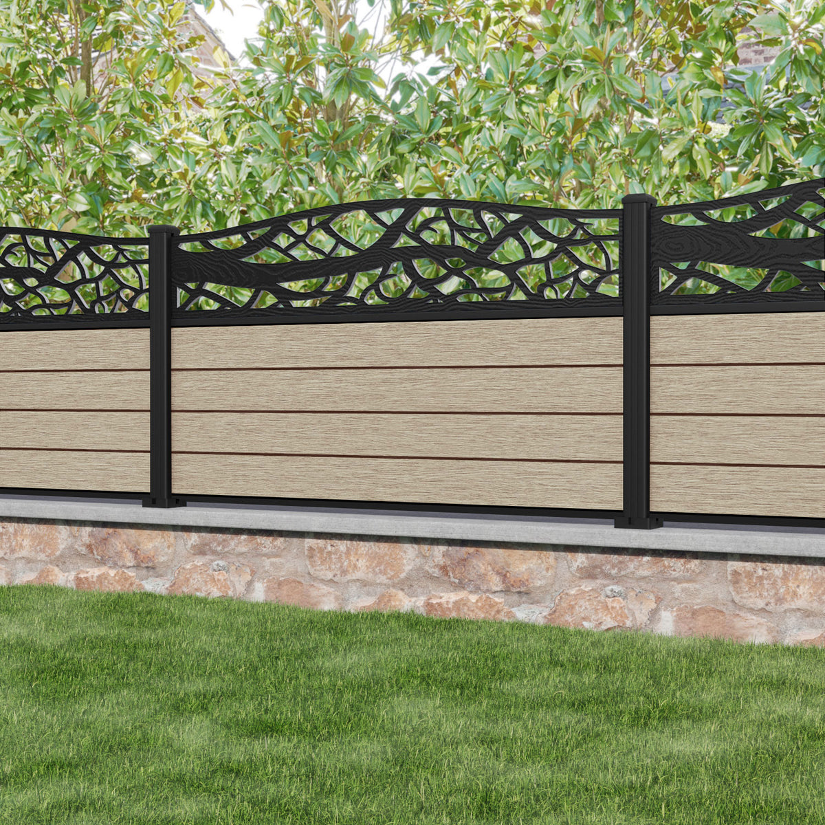 Fusion Twilight Curved Top Fence Panel Light Oak - with our aluminium posts