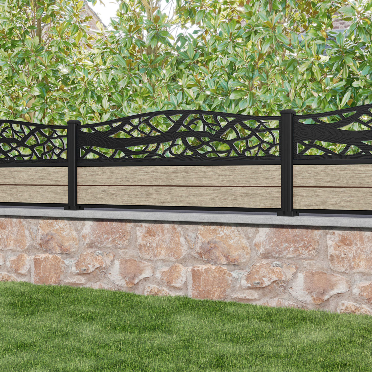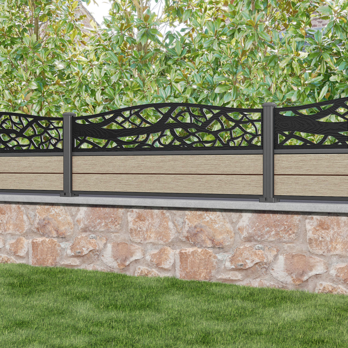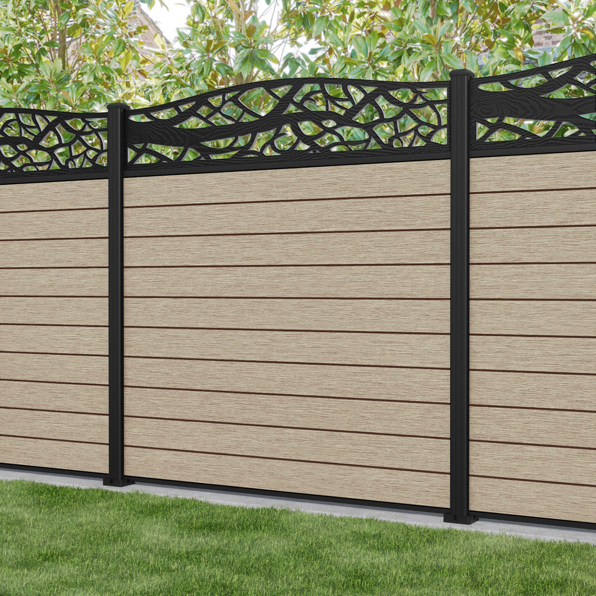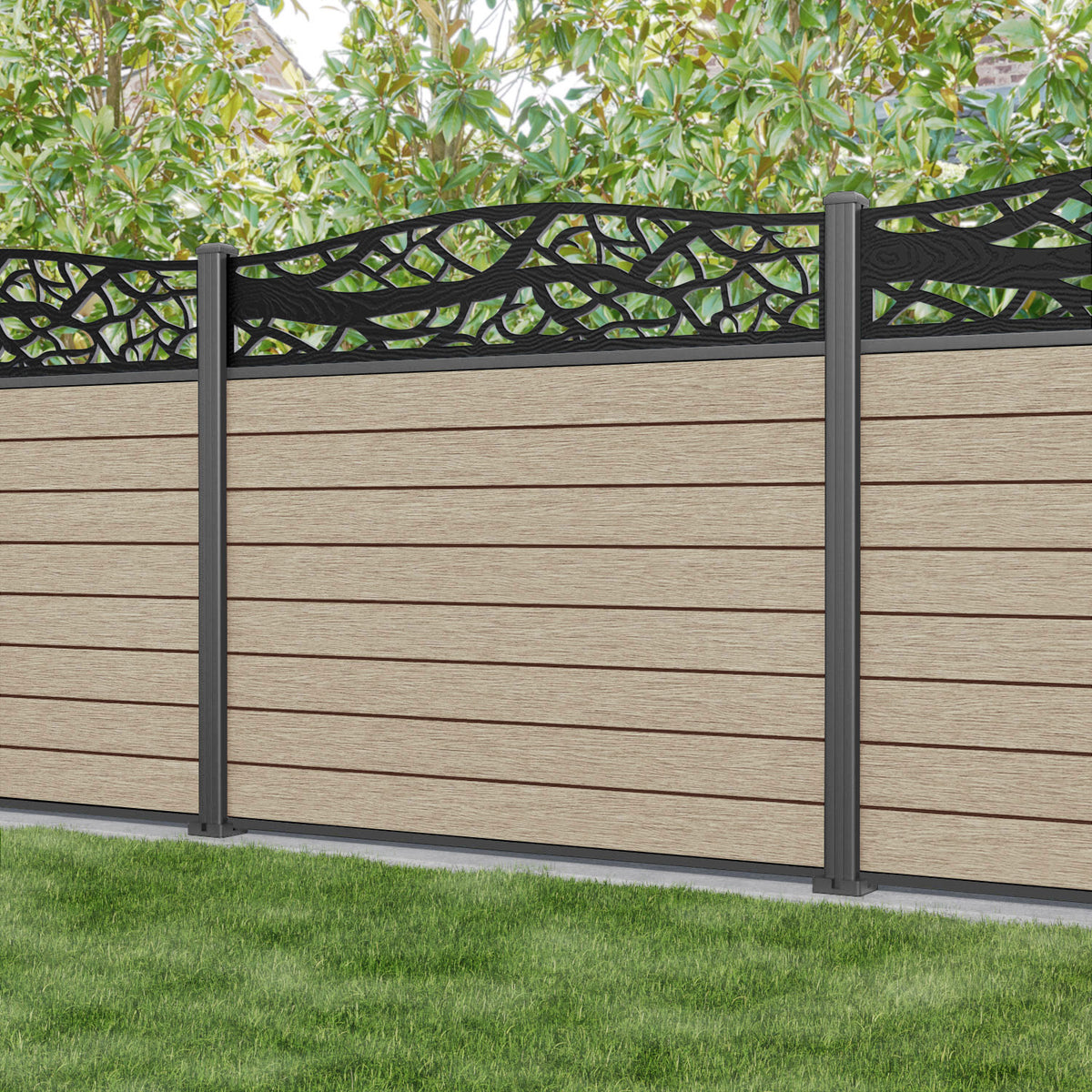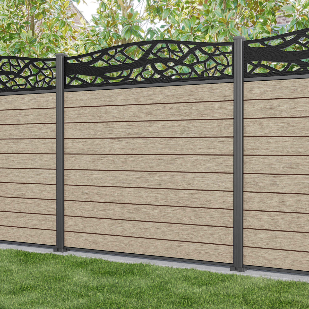 Fusion Twilight Curved Top Fence Panel Light Oak - with our aluminium posts
