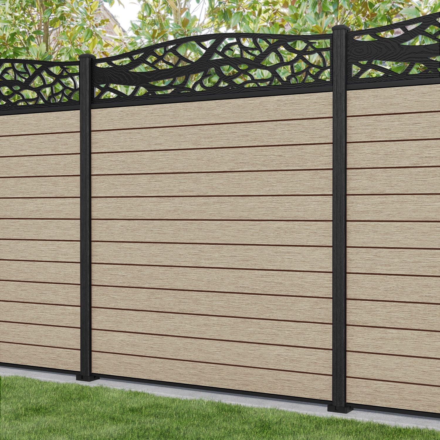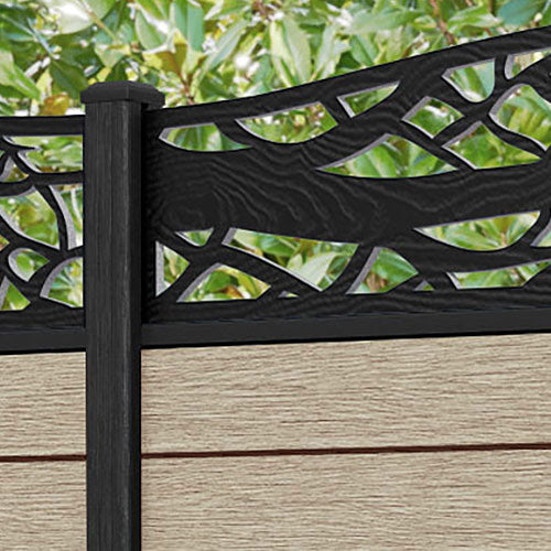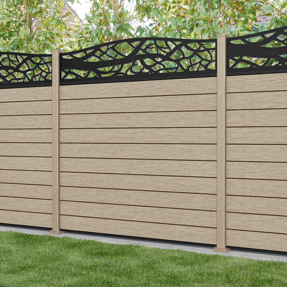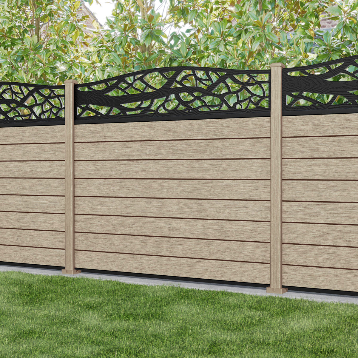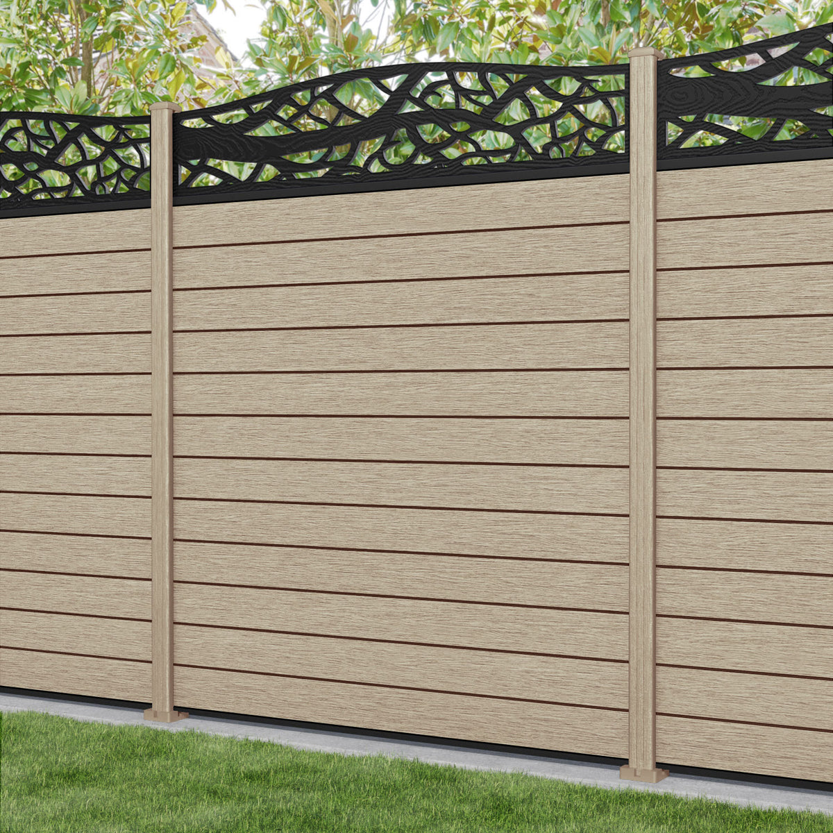 Fusion Twilight Curved Top Fence Panel Light Oak - with our composite posts