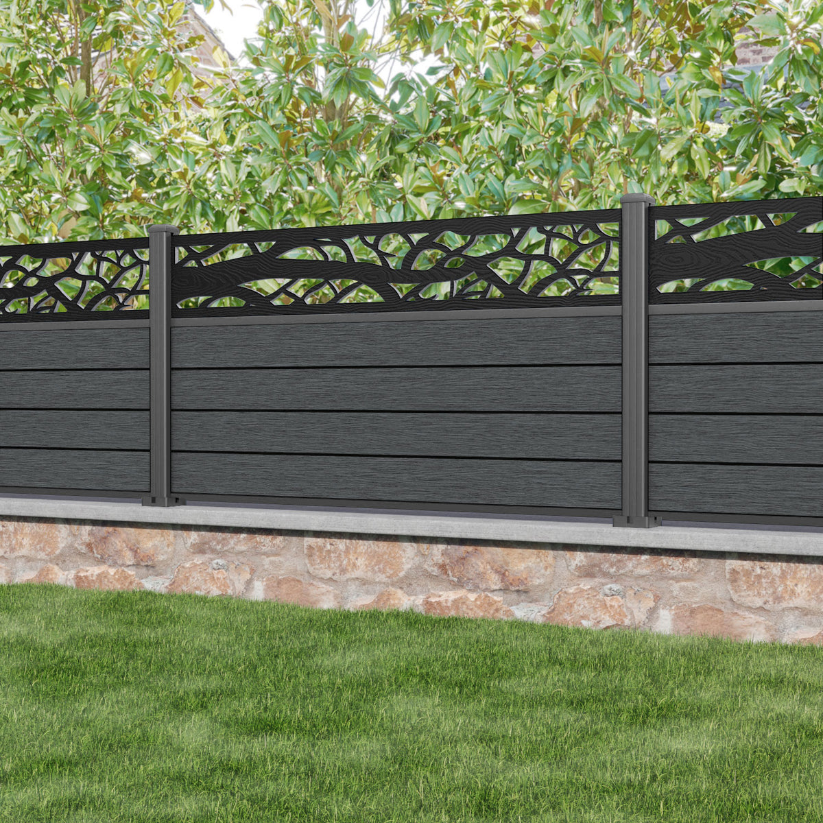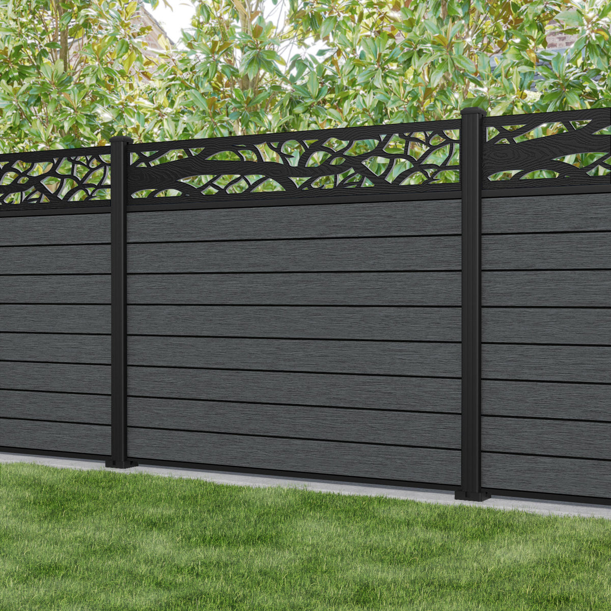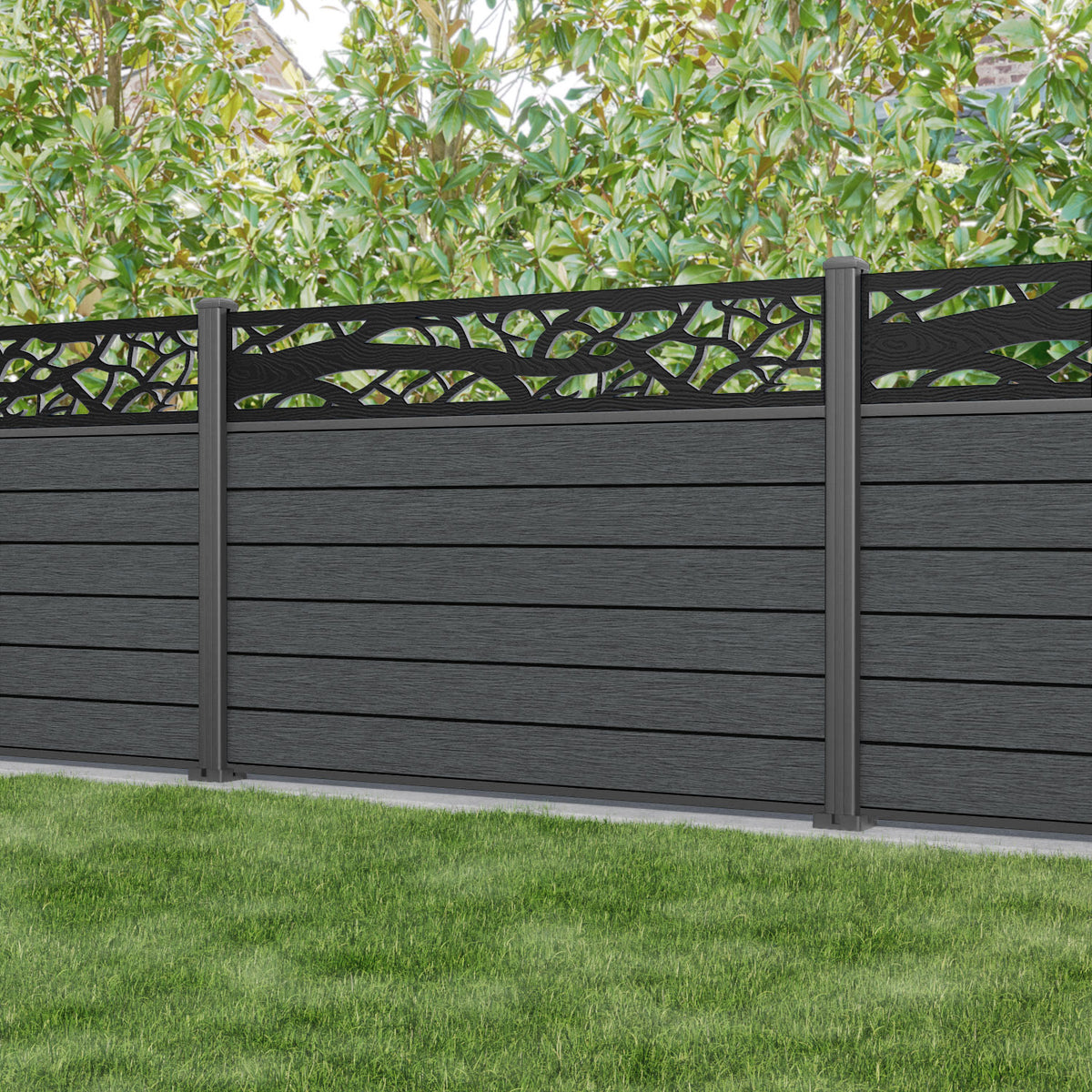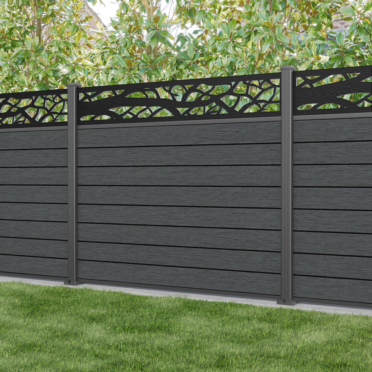 Fusion Twilight Fence Panel Dark Grey - with our aluminium posts