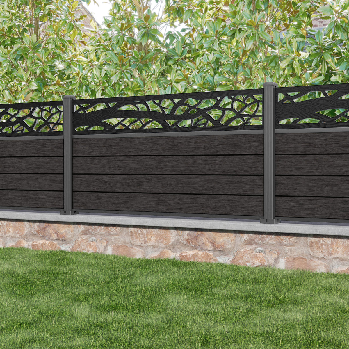 Fusion Twilight Fence Panel Dark Oak - with our aluminium posts