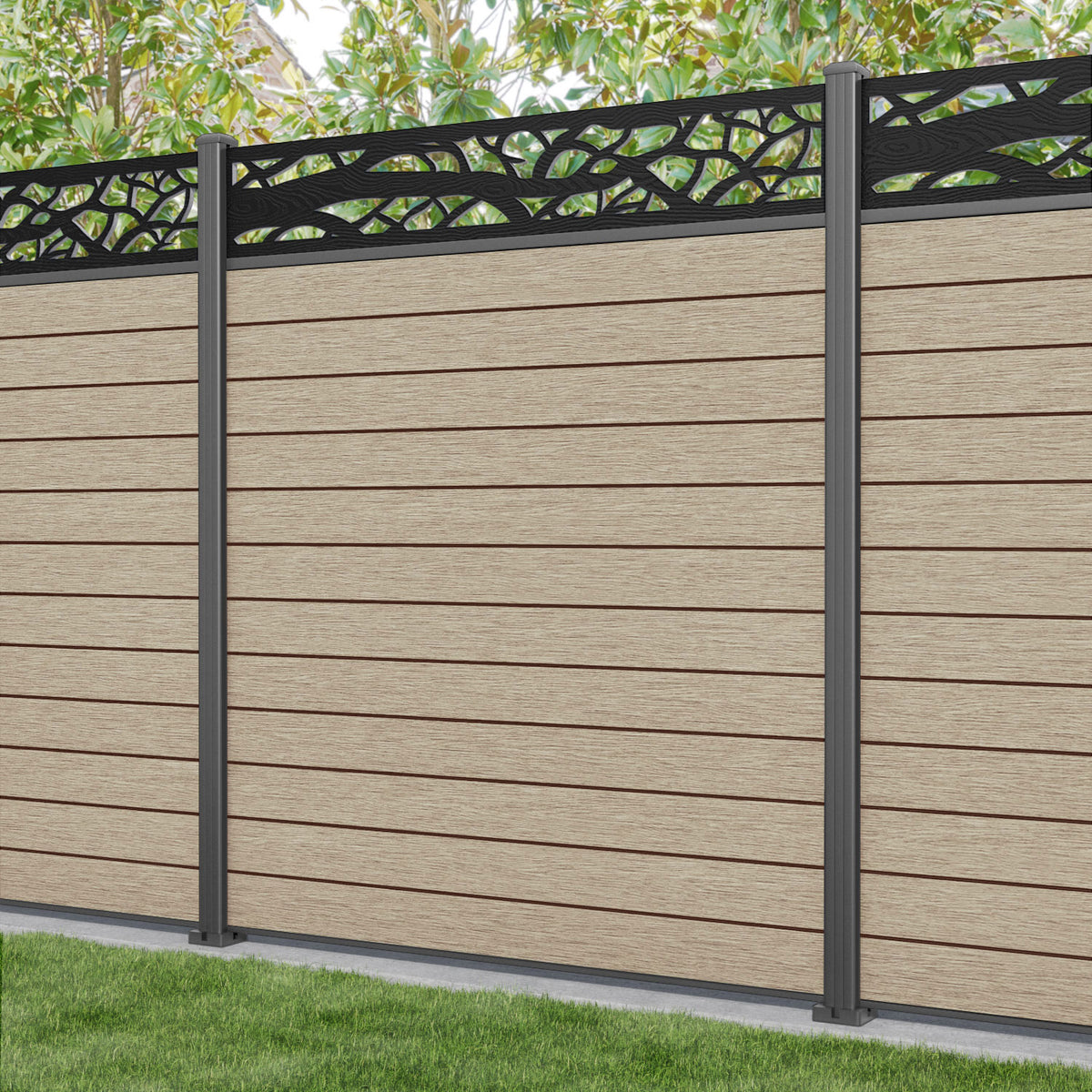 Fusion Twilight Fence Panel Light Oak - with our aluminium posts