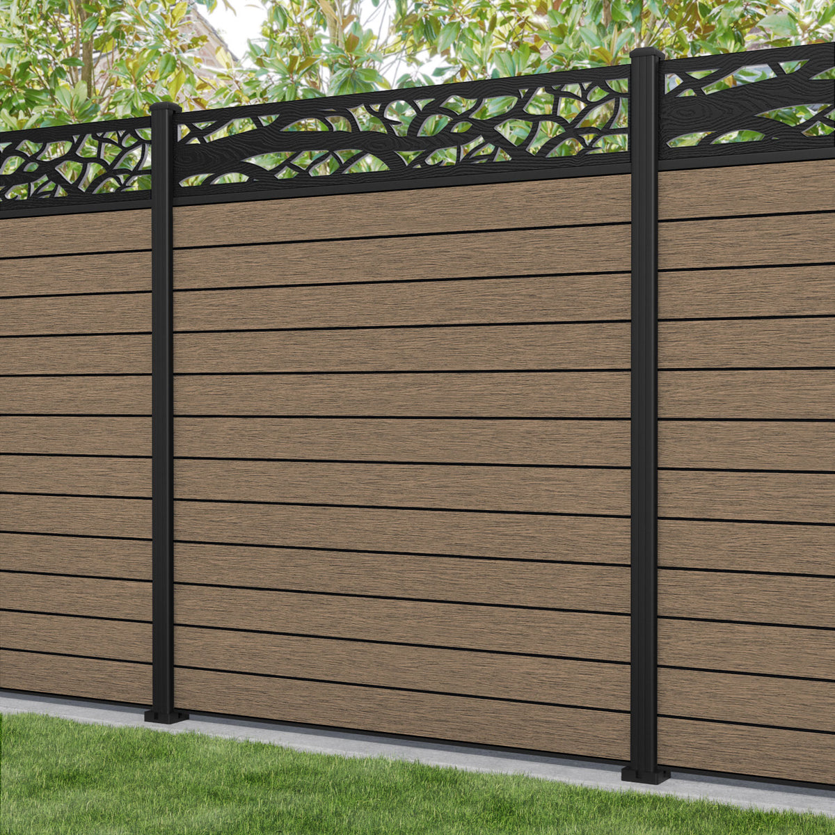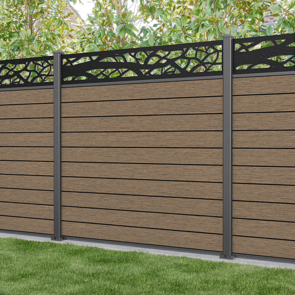 Fusion Twilight Fence Panel Teak - with our aluminium posts