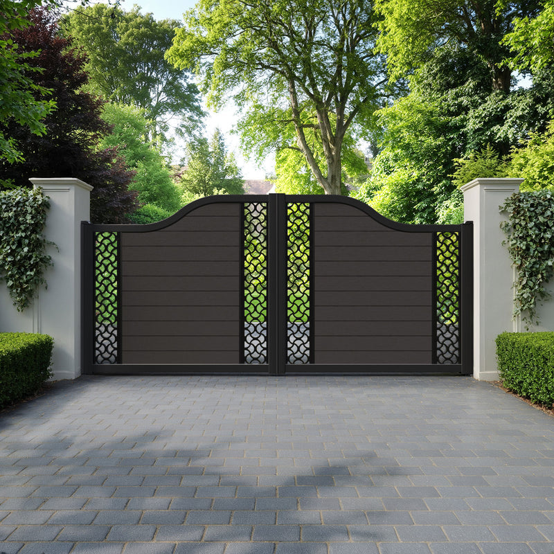 Fusion Vida Curved Top Driveway Gate Dark Oak - Middle & End Screen