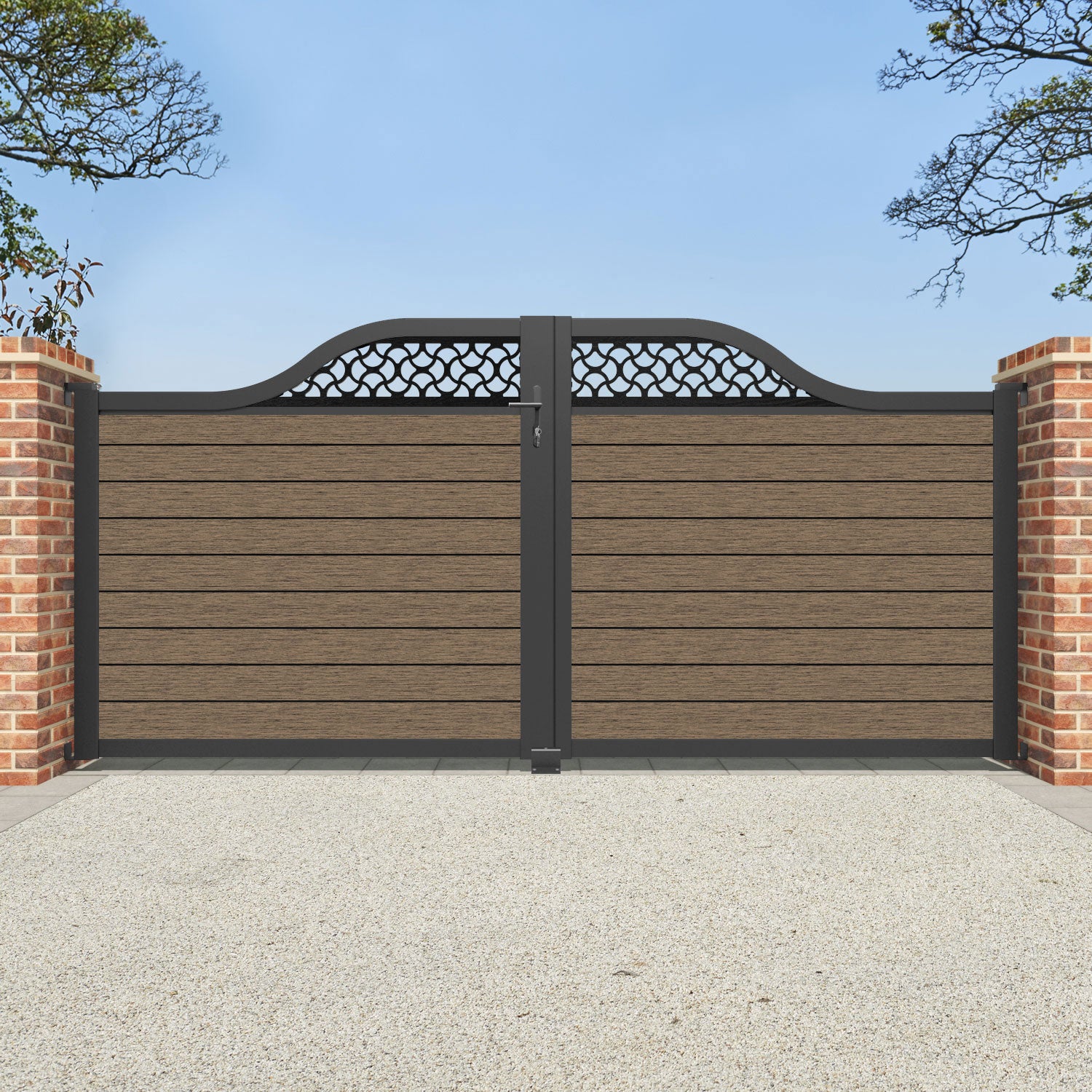 Fusion Vida Curved Top Driveway Gate Teak - Top Screen