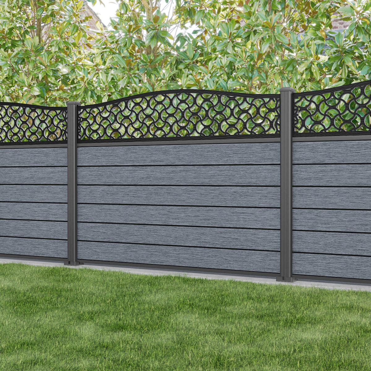 Fusion Vida Curved Top Fence Panel Anthracite - with our aluminium posts