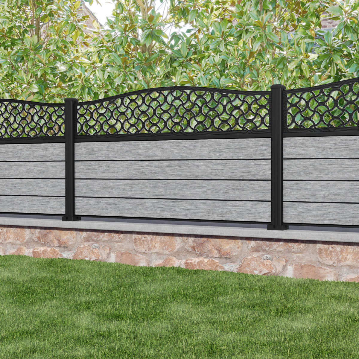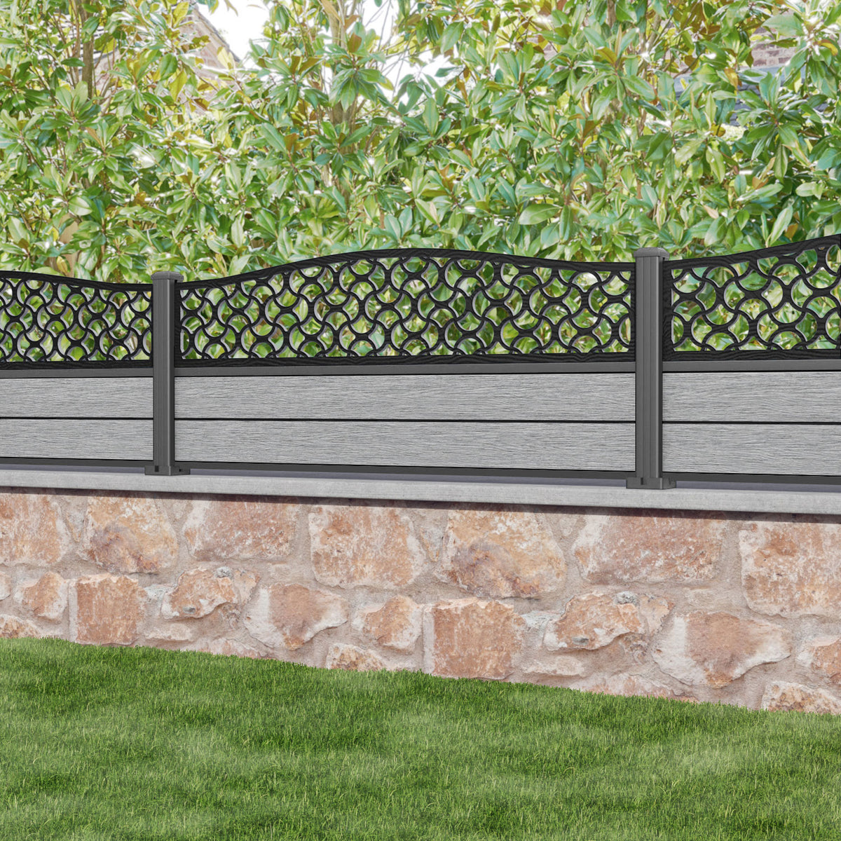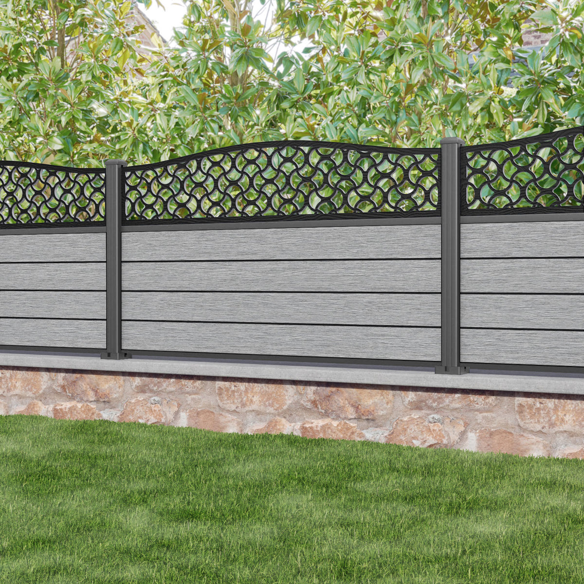 Fusion Vida Curved Top Fence Panel Light Grey - with our aluminium posts