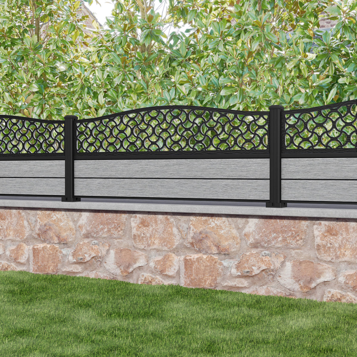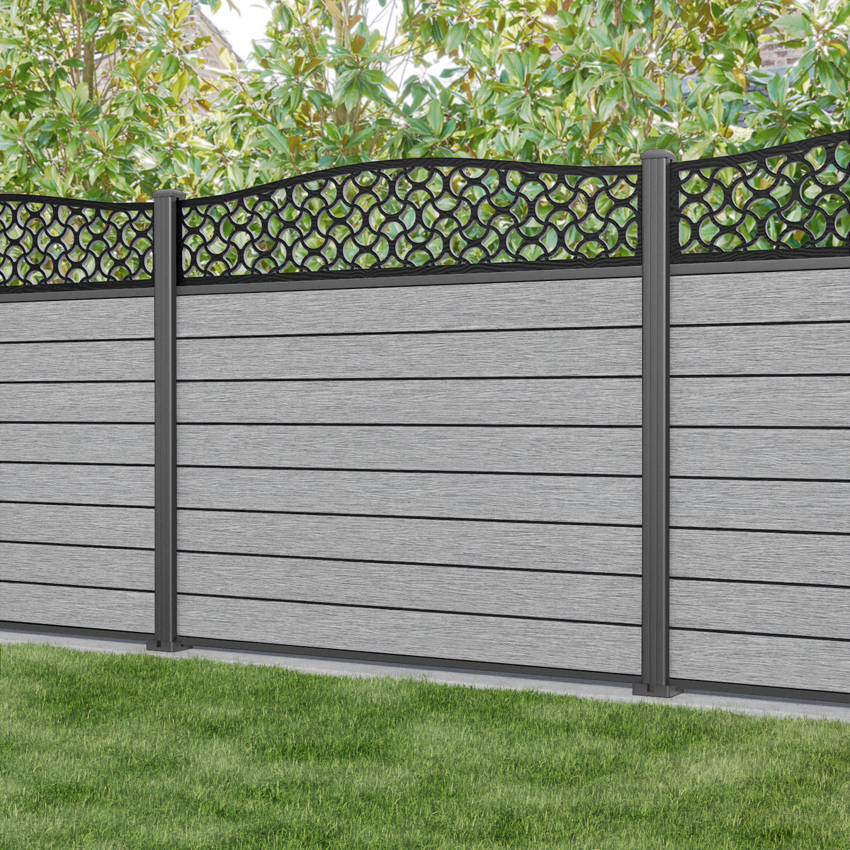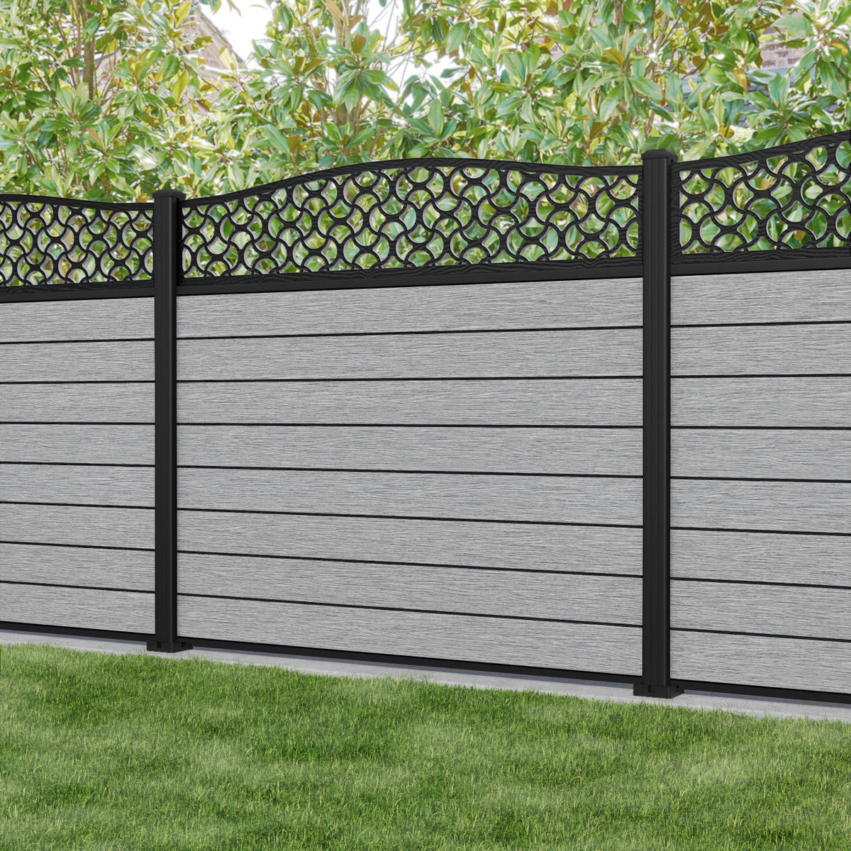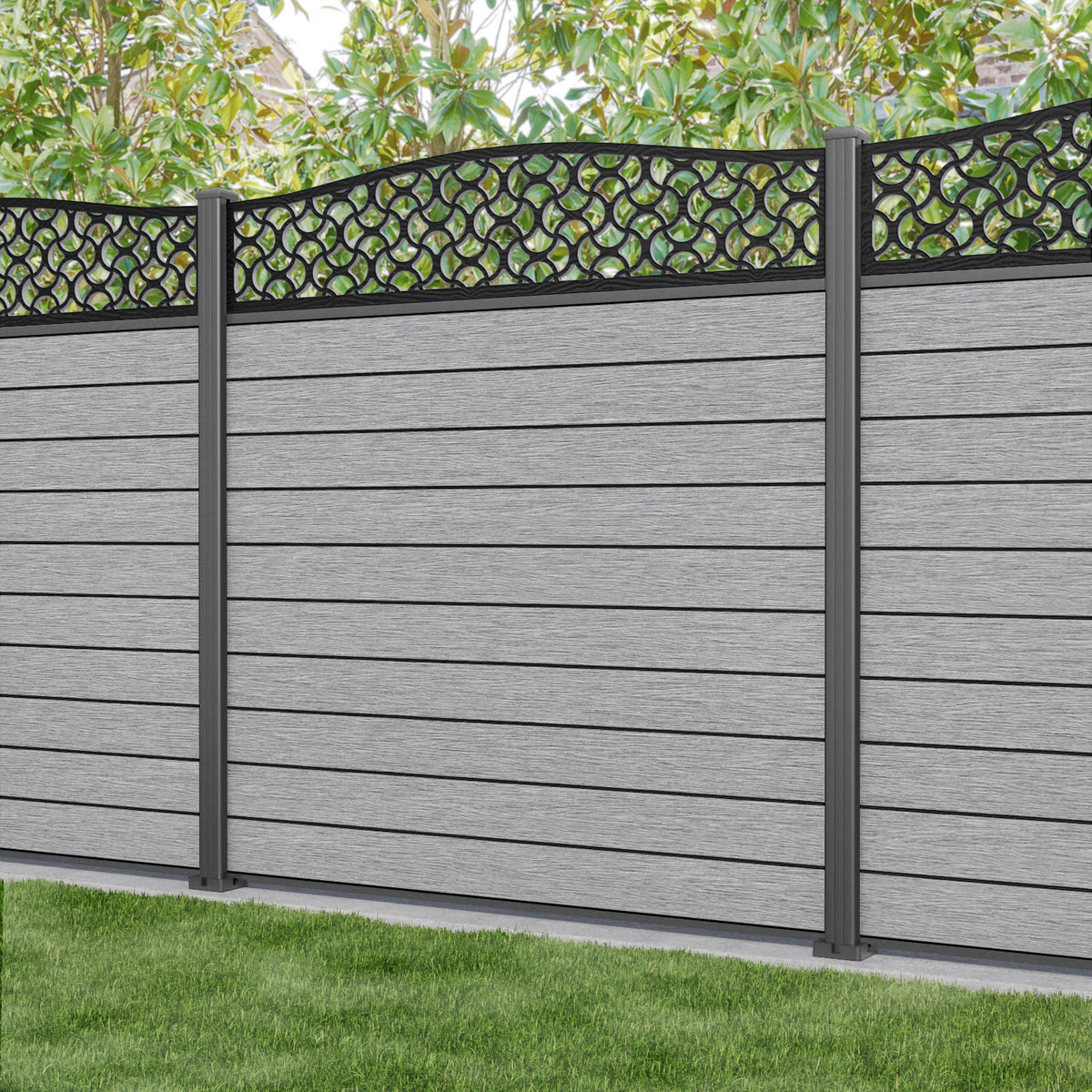 Fusion Vida Curved Top Fence Panel Light Grey - with our aluminium posts