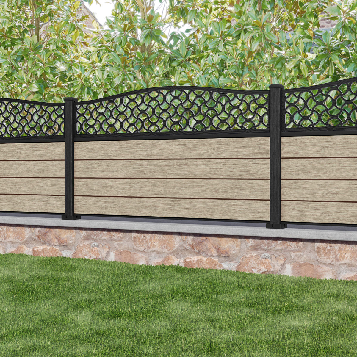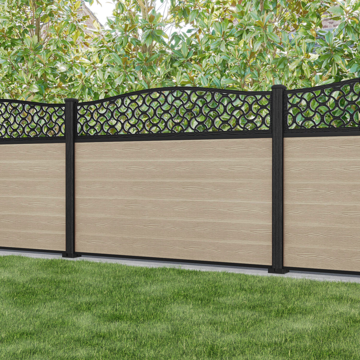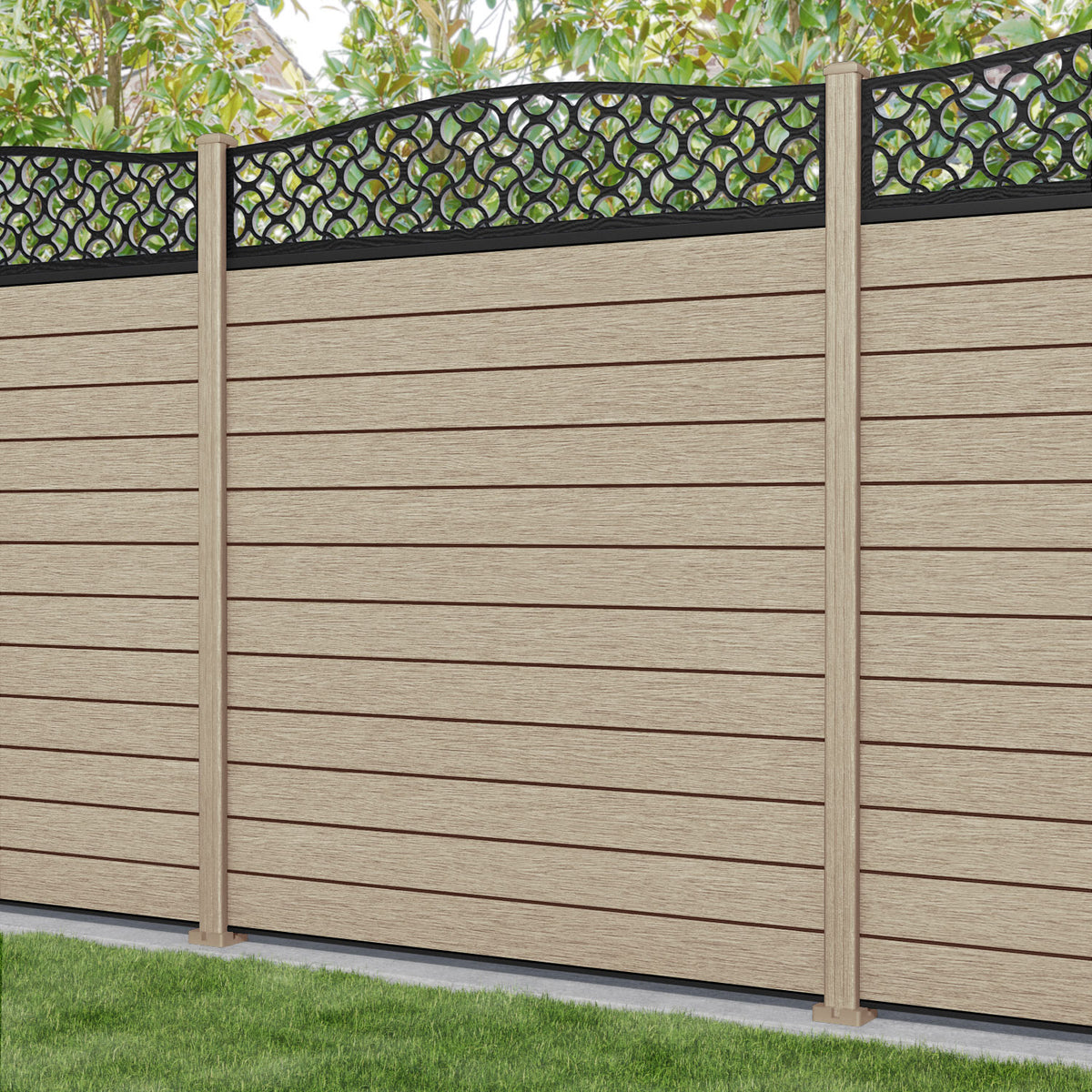Fusion Vida Curved Top Fence Panel Light Oak - with our composite posts