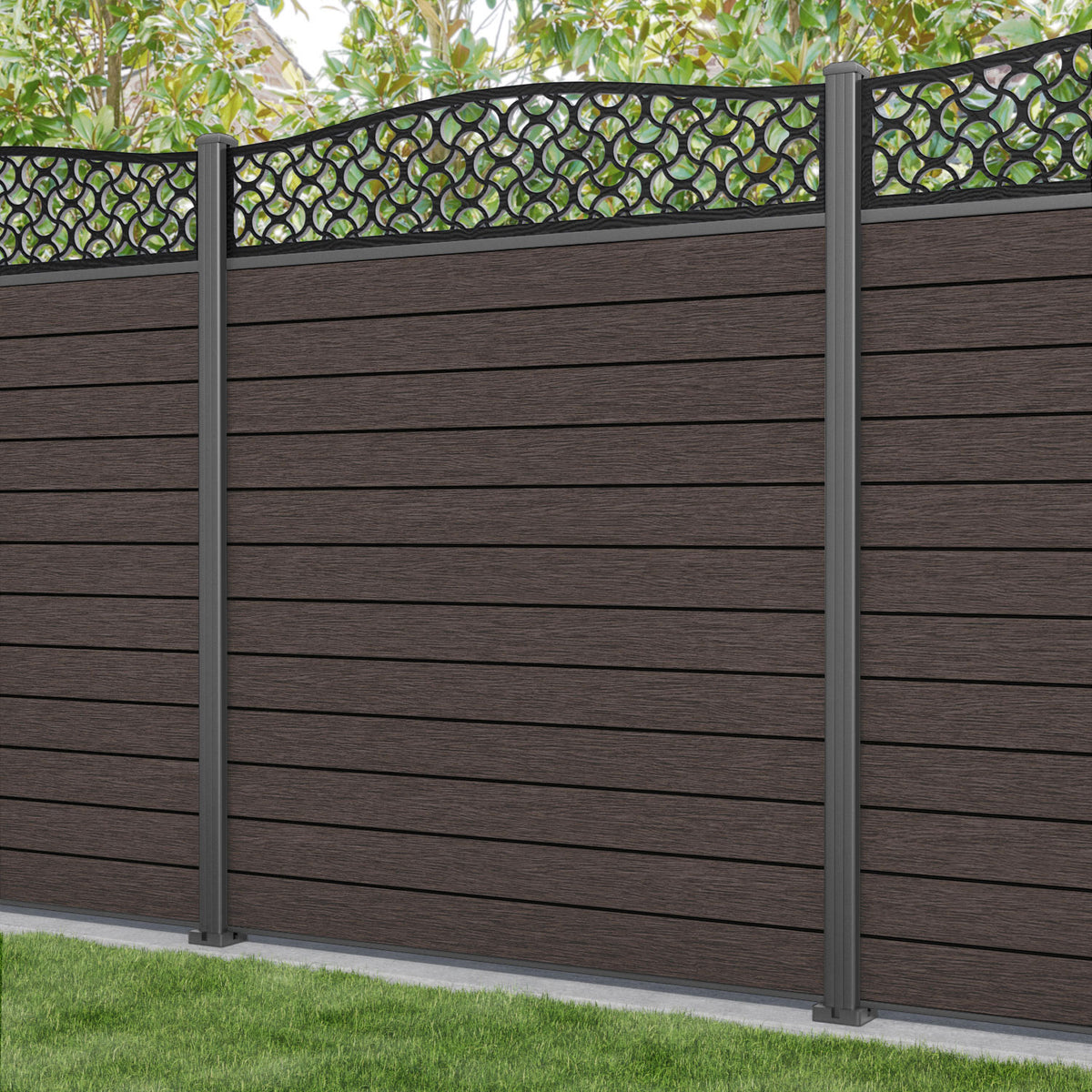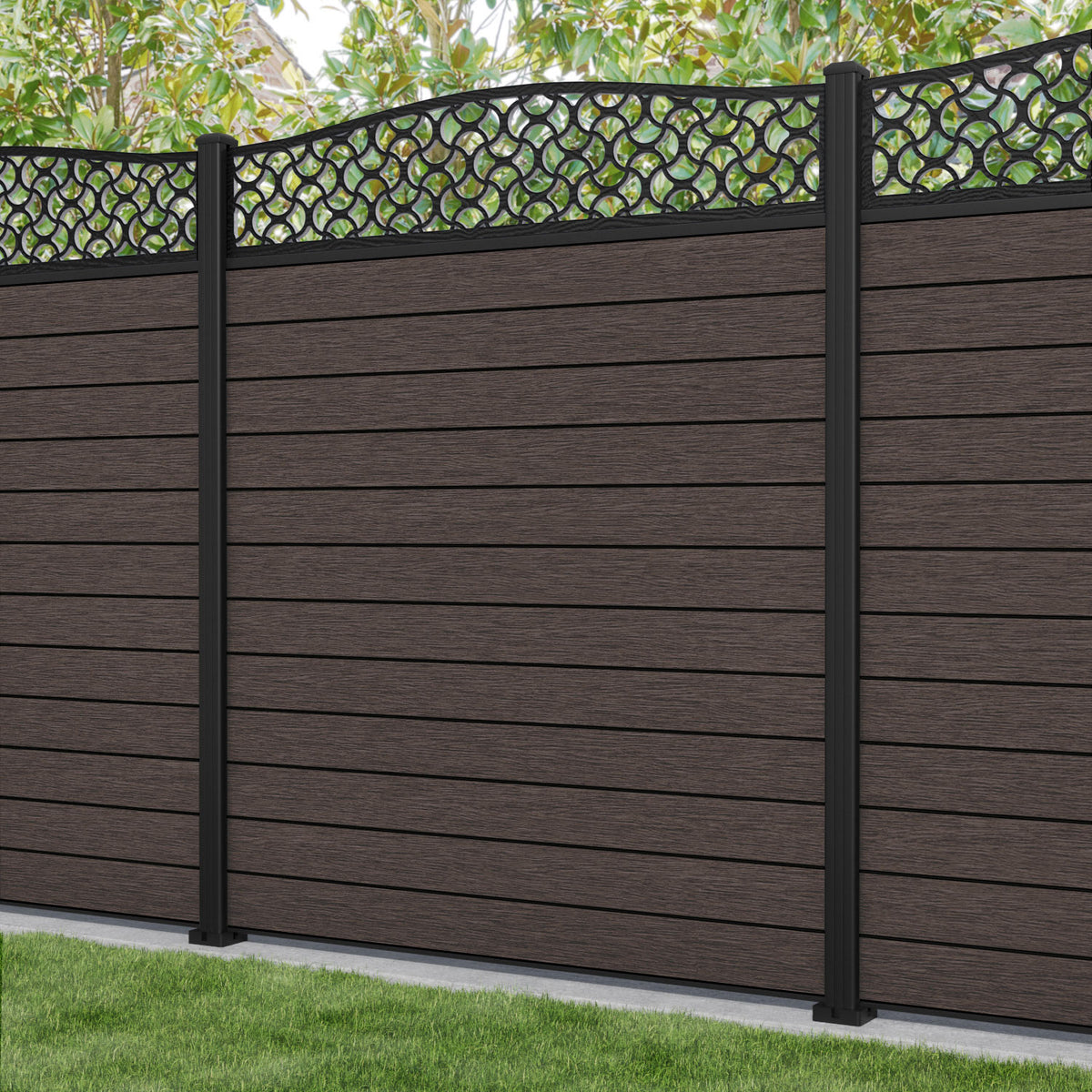 Fusion Vida Curved Top Fence Panel Mid Brown - with our aluminium posts