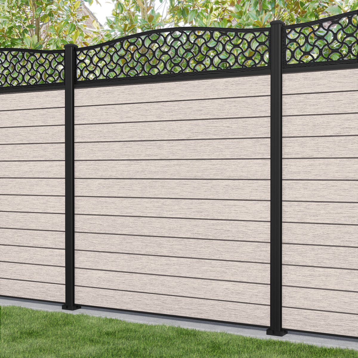 Fusion Vida Curved Top Fence Panel Mid Stone - with our aluminium posts