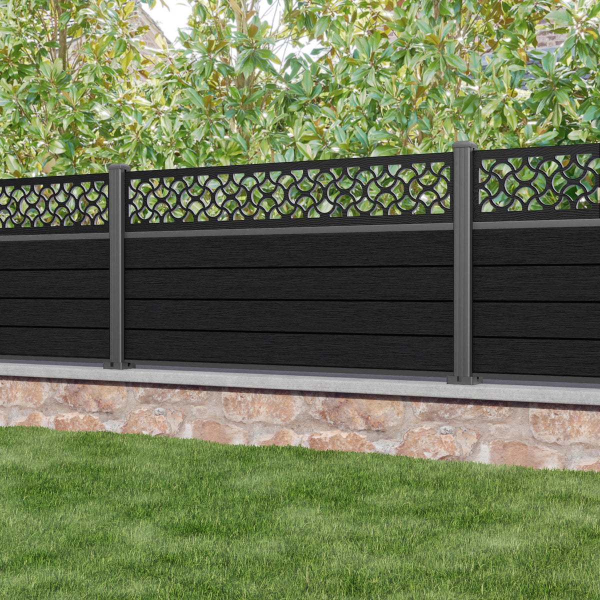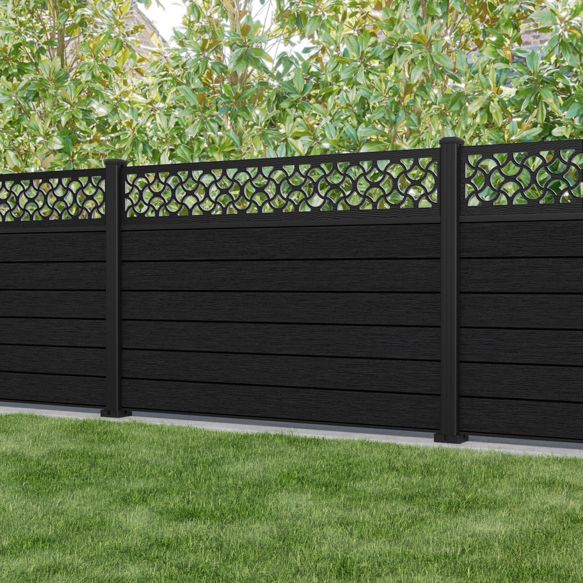 Fusion Vida Fence Panel Black - with our aluminium posts