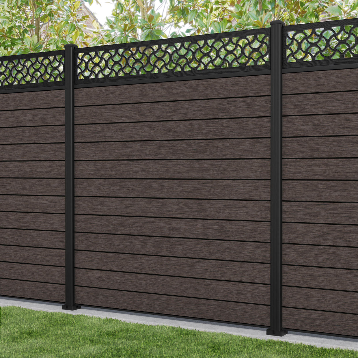 Fusion Vida Fence Panel Mid Brown - with our aluminium posts