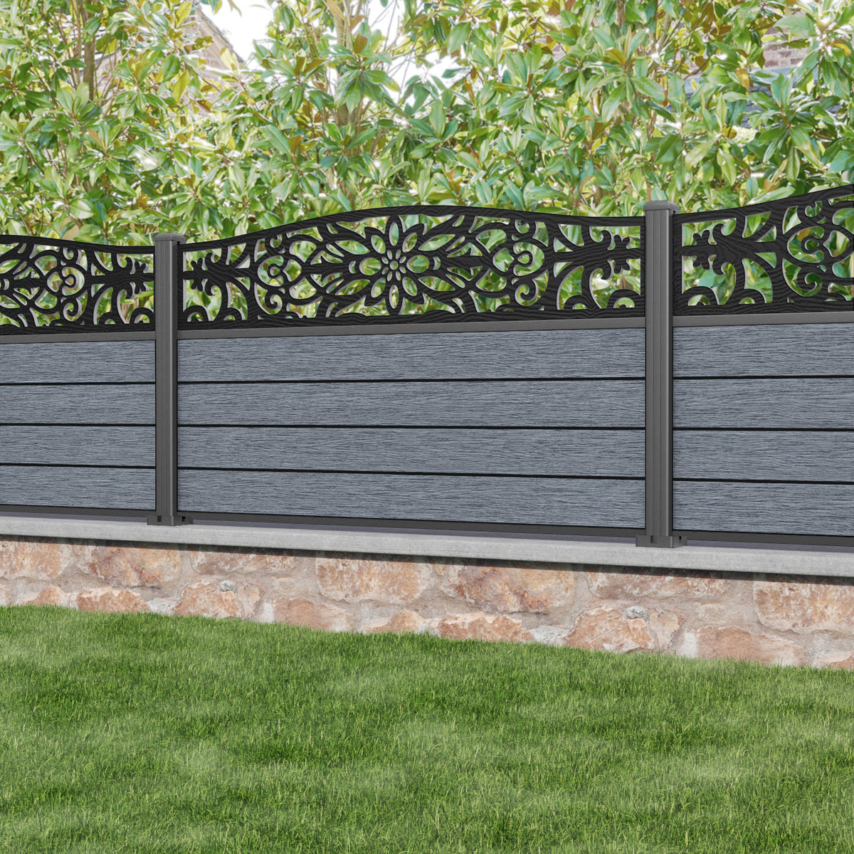 Fusion Windsor Curved Top Fence Panel Anthracite - with our aluminium posts