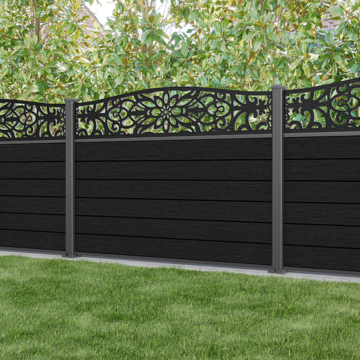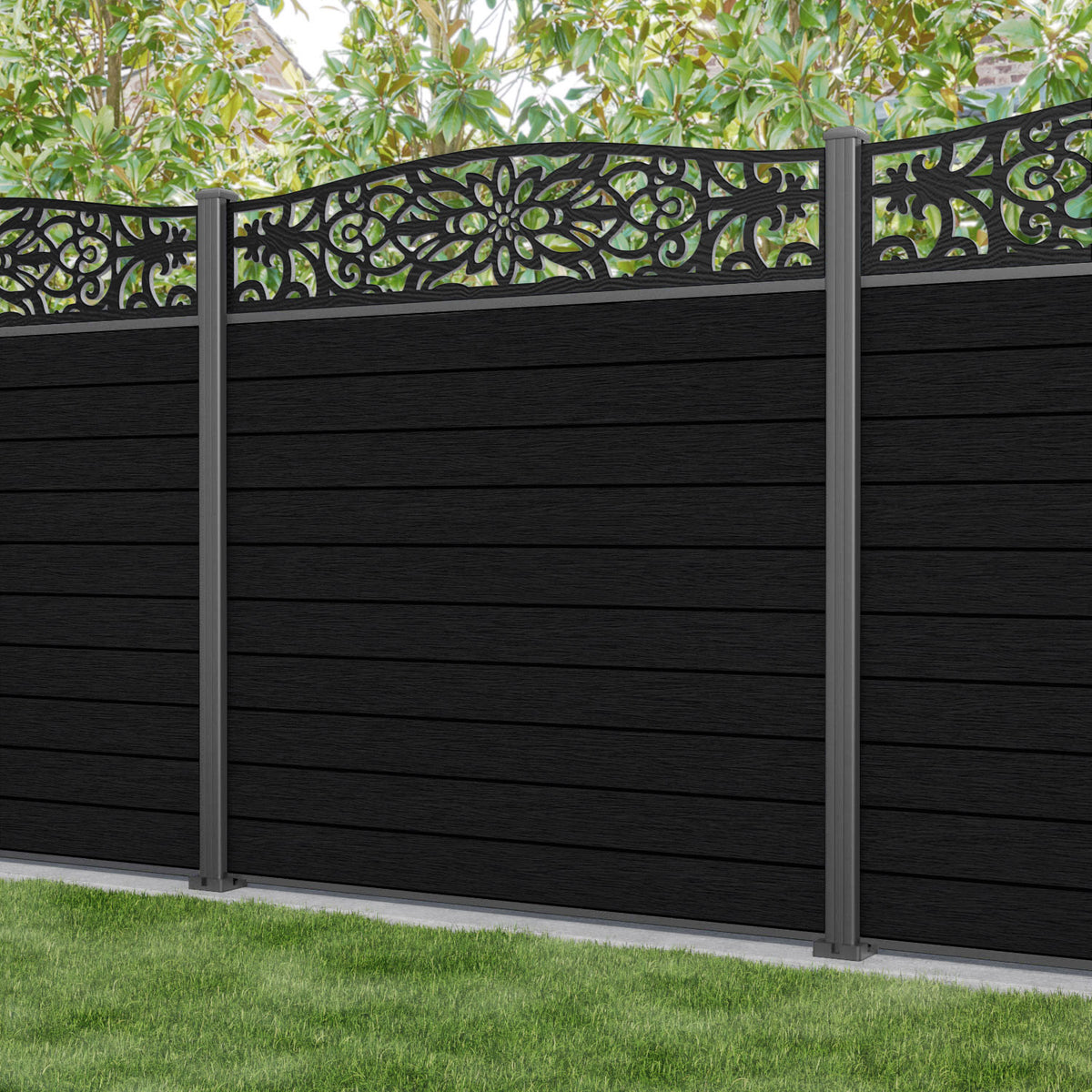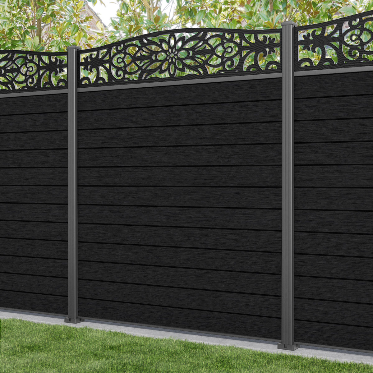 Fusion Windsor Curved Top Fence Panel Black - with our aluminium posts